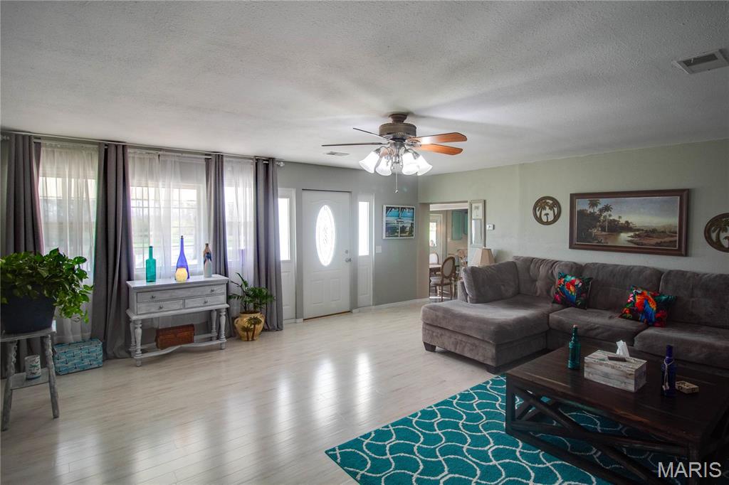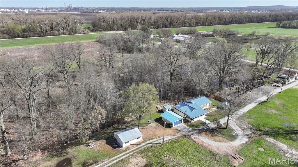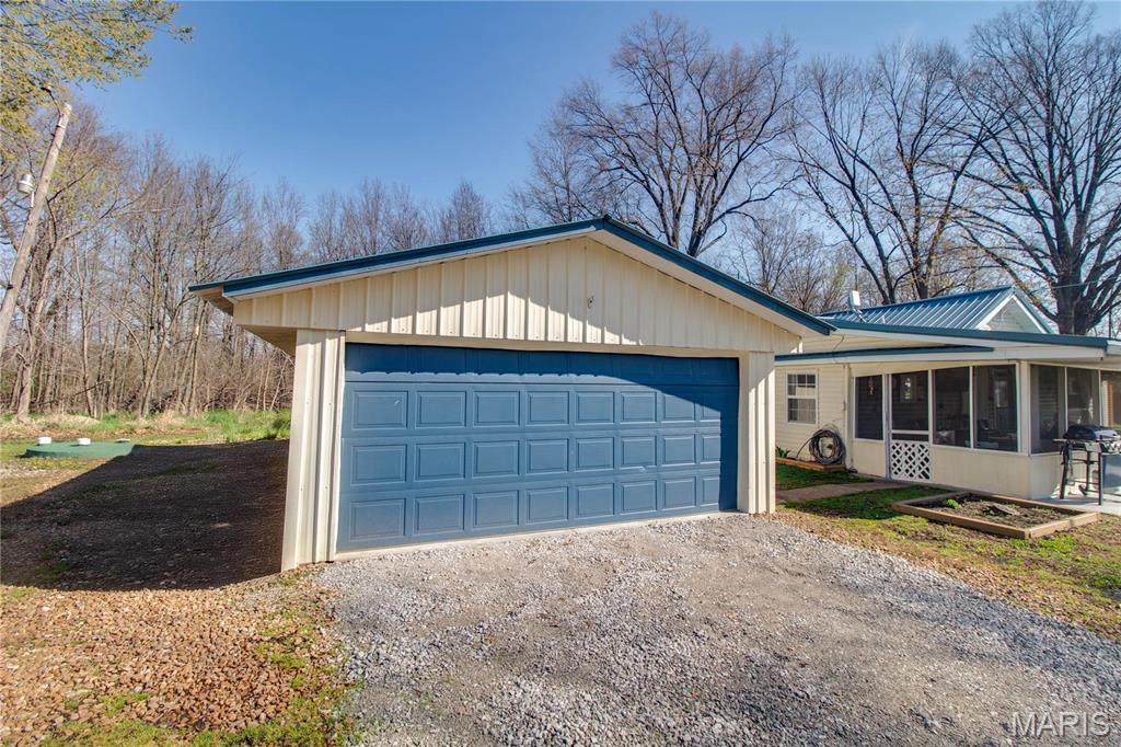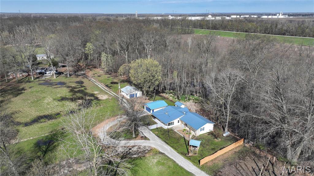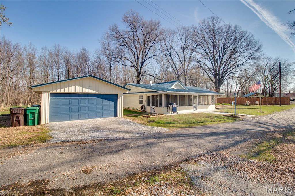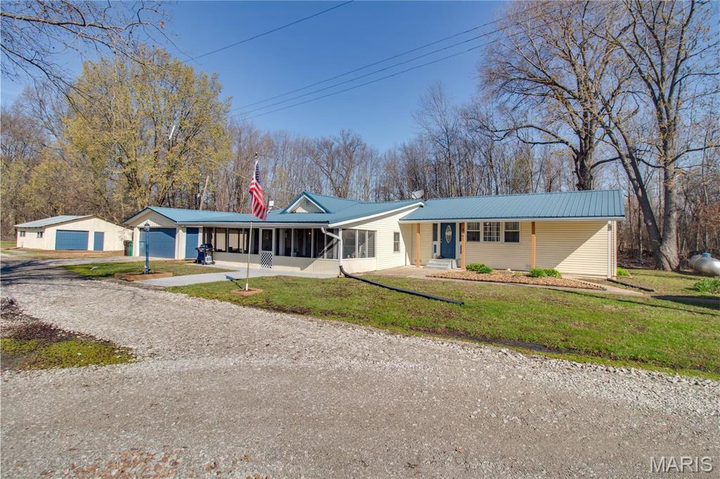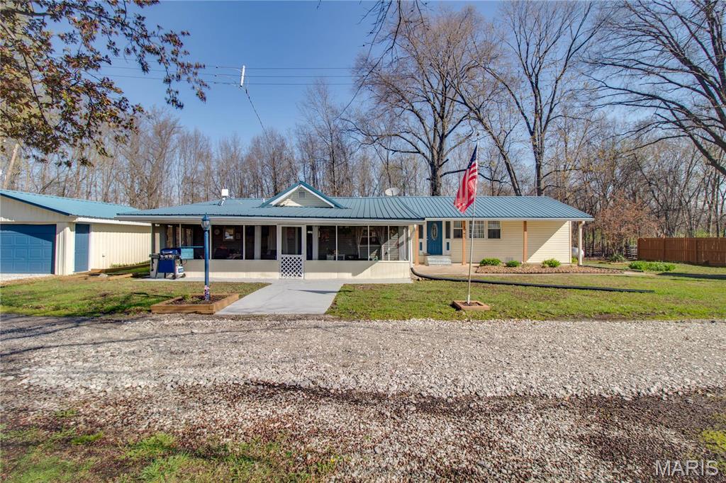 Charming 3-bed, 1.5-bath home on 2.54 serene acres in unincorporated Hartford, IL! This clean, single-level home boasts tasteful finishes and a low-maintenance metal roof. Enjoy ample storage with a detached 2-car garage plus an additional outbuilding. Conveniently located near I-255 for easy commuting. Don't miss this move-in-ready gem offering space, style, and convenience!