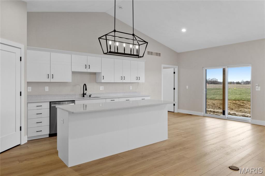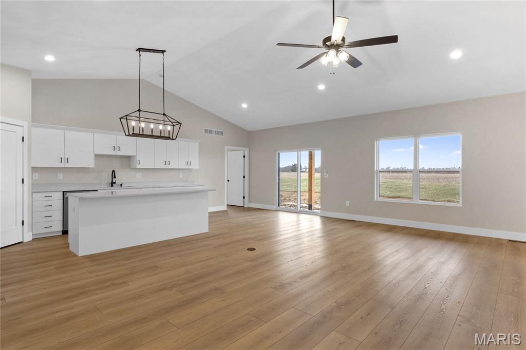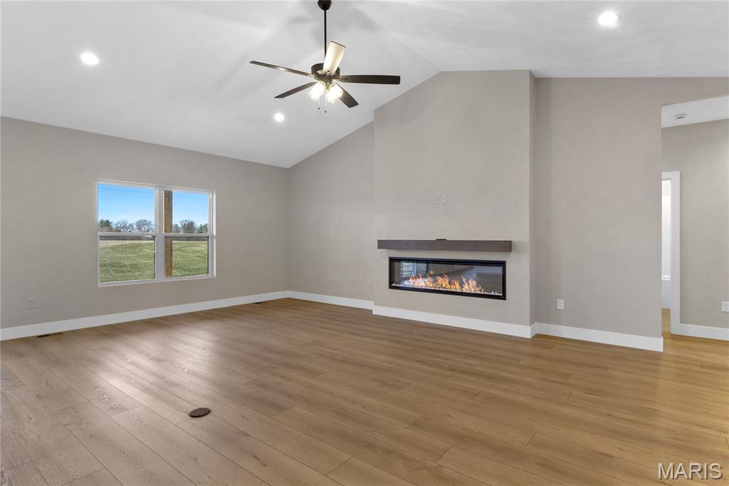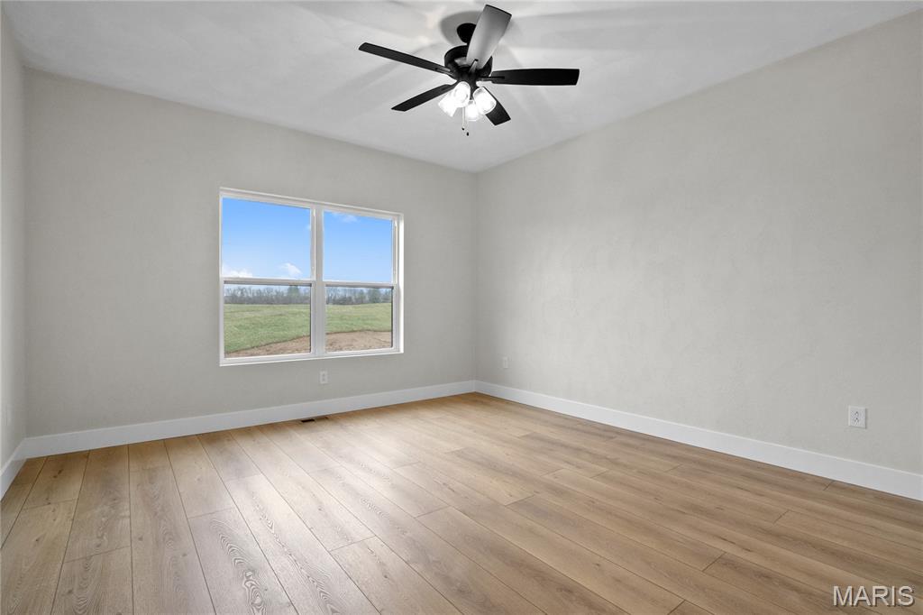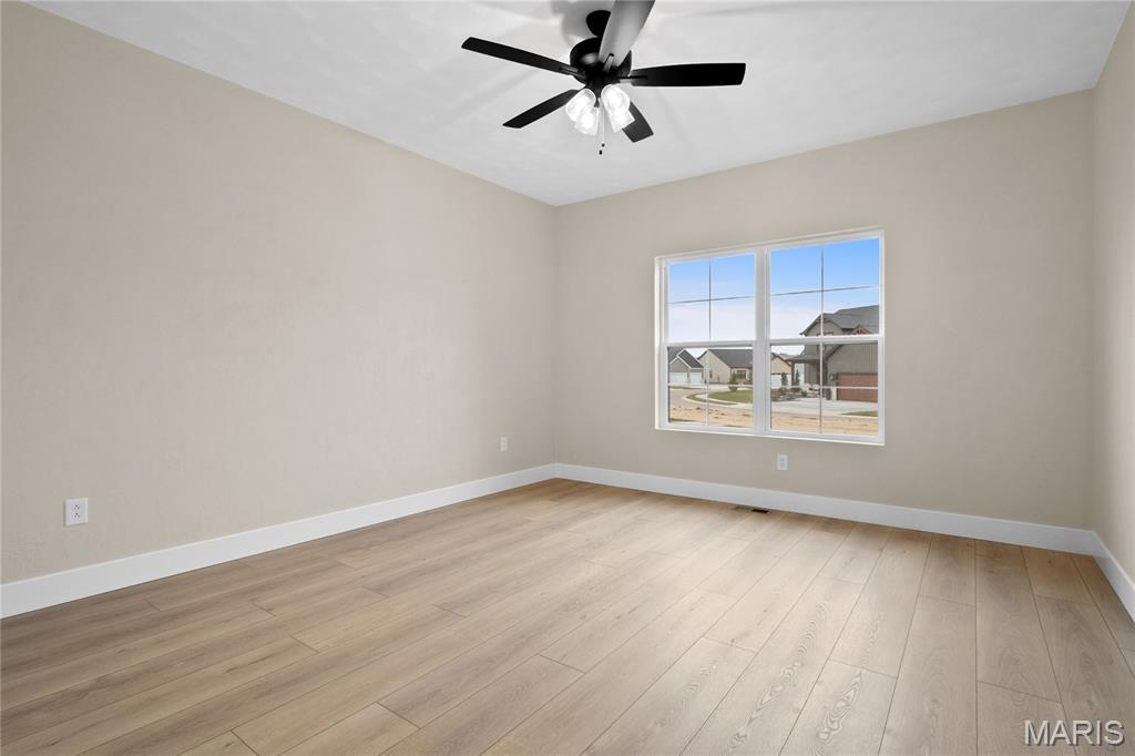 This stunning custom home, built by MJ Holland, combines exceptional craftsmanship with high-end finishes throughout. The spacious split master suite features vaulted ceilings and a luxurious ensuite with an oversized shower and stack linen. The open kitchen flows seamlessly into the large family room, creating an ideal space for entertaining. A breakfast nook leads to an extended covered patio and fenced yard. The main level also includes a large laundry room, 2 guest bedrooms, a full bath, and a 2+ car garage. The full, unfinished basement offers 9-ft ceilings, rough-in plumbing, and an egress window, allowing for future expansion. Standard features include commercial-grade windows, high-efficiency HVAC, luxury vinyl plank flooring, 8lb carpet pad, solid-core doors, and sound insulation in bedrooms and baths. Located in a desirable neighborhood with a community pool, sports field, and lake, and top-rated O'Fallon Schools (Dist. 90 & OTHS). Perfect for modern living and entertaining!