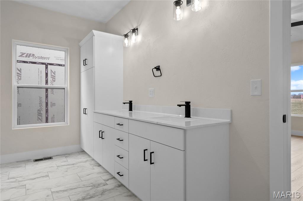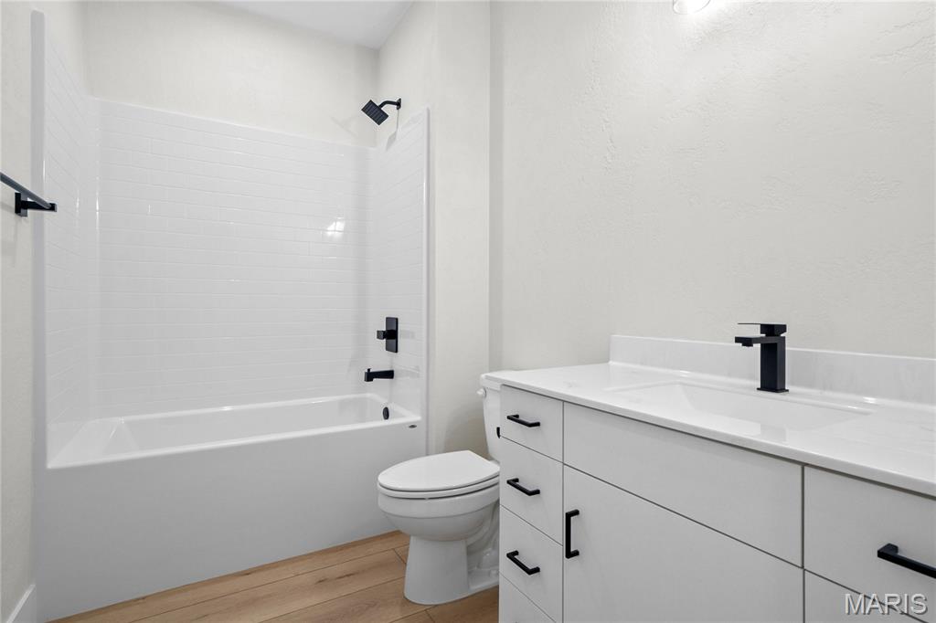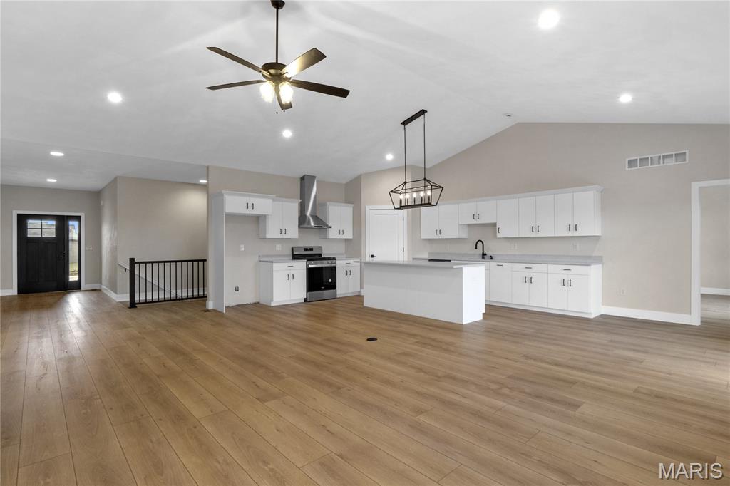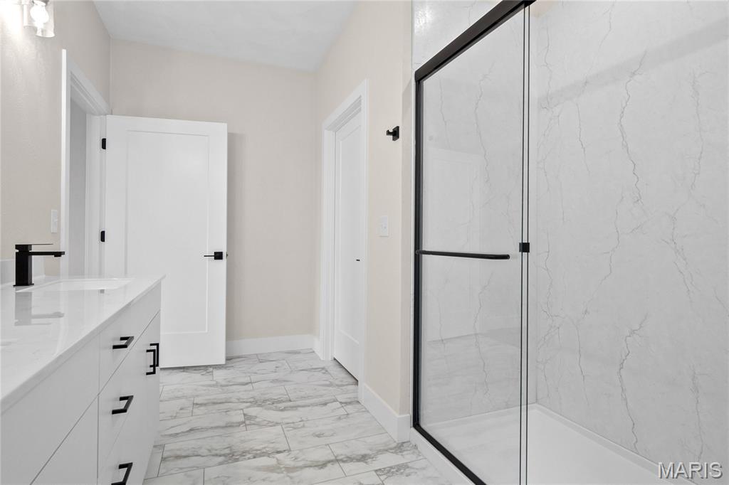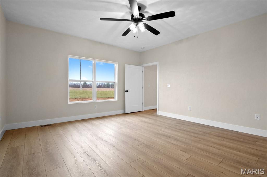 This stunning custom home, built by MJ Holland, combines exceptional craftsmanship with high-end finishes throughout. The spacious split master suite features vaulted ceilings and a luxurious ensuite with an oversized shower and stack linen. The open kitchen flows seamlessly into the large family room, creating an ideal space for entertaining. A breakfast nook leads to an extended covered patio and fenced yard. The main level also includes a large laundry room, 2 guest bedrooms, a full bath, and a 2+ car garage. The full, unfinished basement offers 9-ft ceilings, rough-in plumbing, and an egress window, allowing for future expansion. Standard features include commercial-grade windows, high-efficiency HVAC, luxury vinyl plank flooring, 8lb carpet pad, solid-core doors, and sound insulation in bedrooms and baths. Located in a desirable neighborhood with a community pool, sports field, and lake, and top-rated O'Fallon Schools (Dist. 90 & OTHS). Perfect for modern living and entertaining!