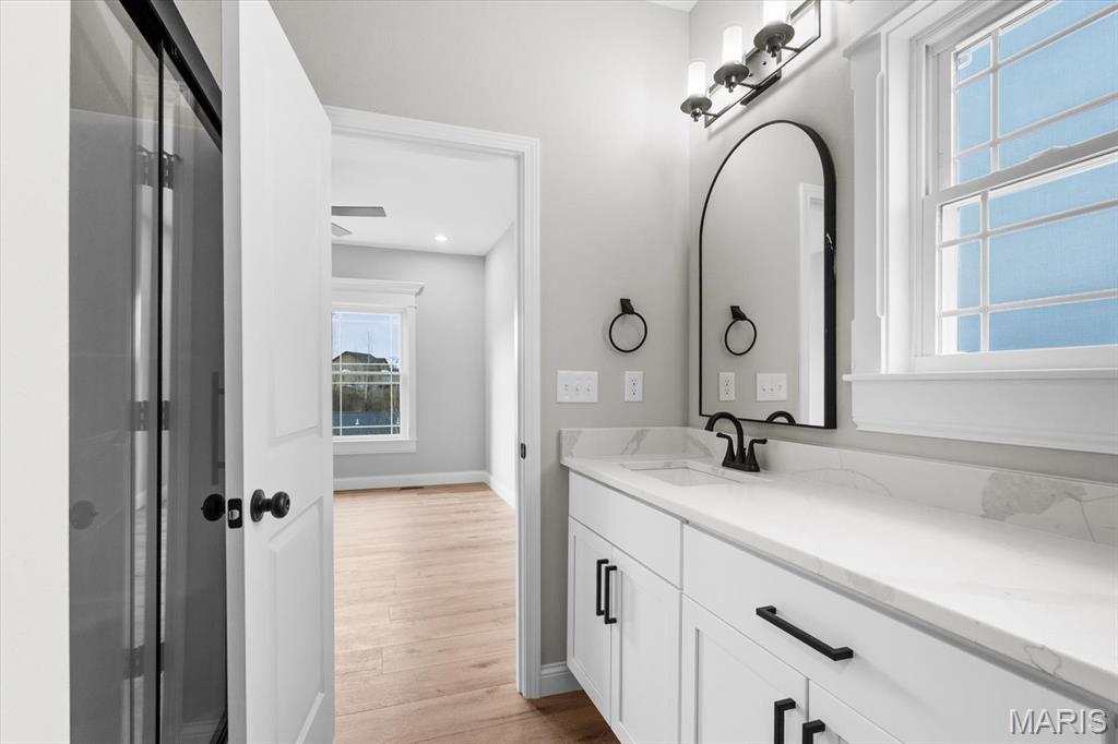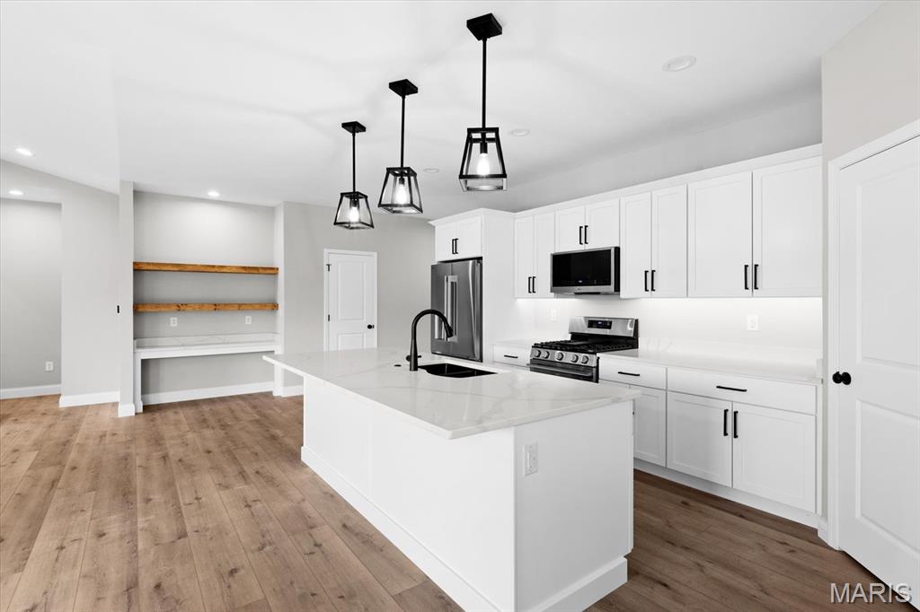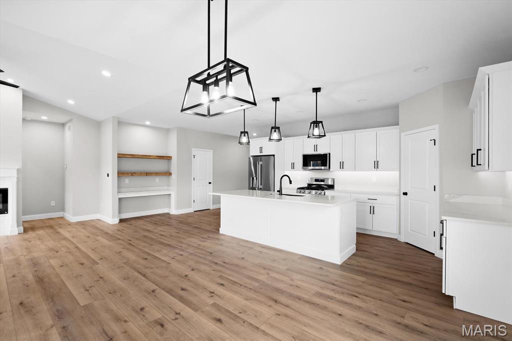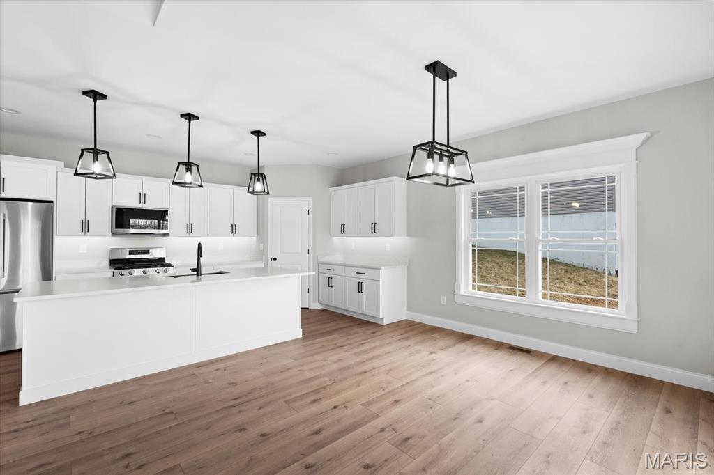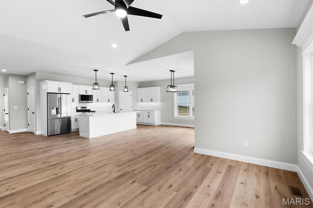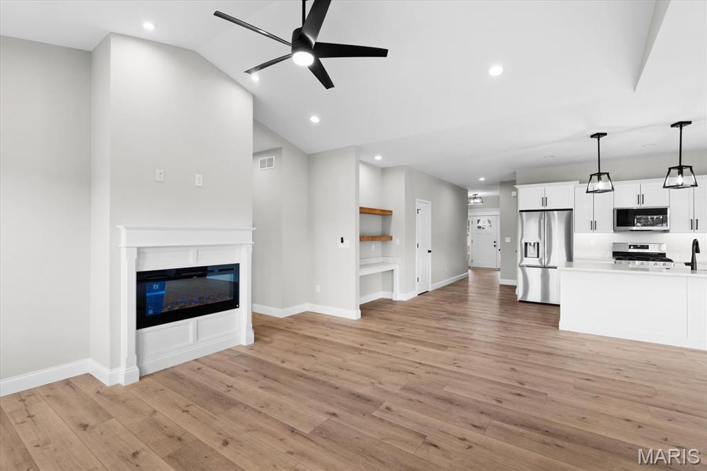 UNDER CONSTRUCTION. The Spruce by Juliet Alpha has quickly become a fan favorite in Tanglewood— With its charming exterior and inviting interior, this 1,617 sq. ft. 3-bed, 2-bath home blends style, function, and thoughtful detail in every room. The kitchen is a true showstopper, with an island over 8 feet long, tons of cabinetry, quartz countertops, and sleek finishes that feel both timeless and on-trend. Each bedroom features 4 LED lights plus a ceiling fan, while custom window trim and closet systems add a polished touch. An unfinished walk-out basement with a bath rough-in and egress window offers the opportunity to easily add more living space, making this home an unbeatable investment. Highlights include luxury vinyl plank flooring, motion lighting, a large covered deck, and a lifetime basement waterproof warranty. Located in the scenic Tanglewood community—just 20 minutes from downtown STL and SAFB. Visit TanglewoodIL.com for 3D floor plan videos and to learn more. Est. completion - Winter 2026.