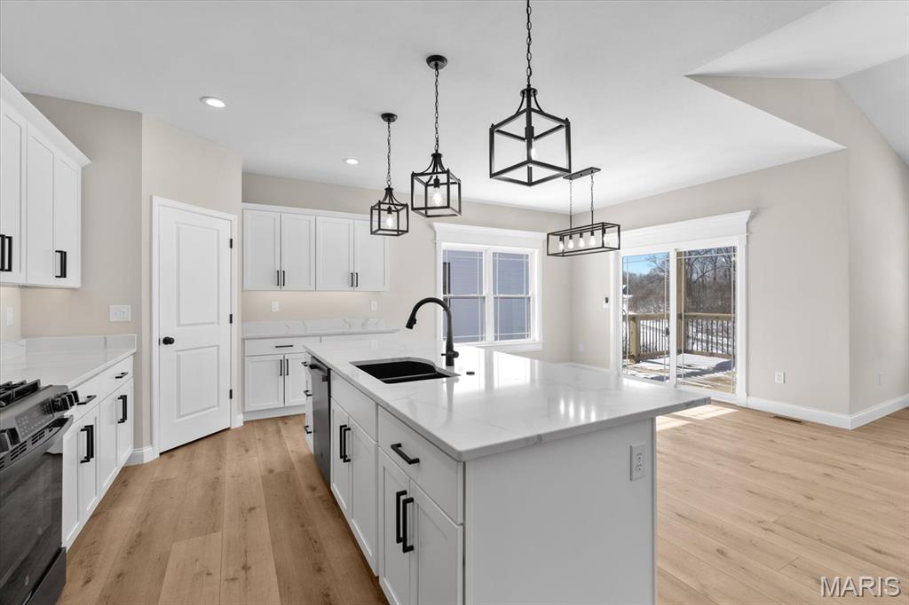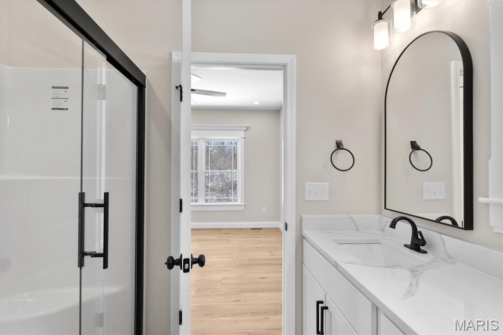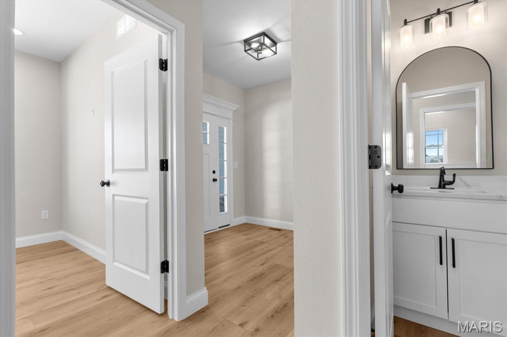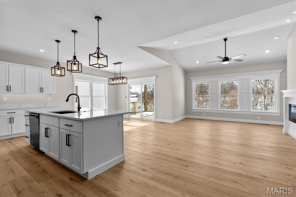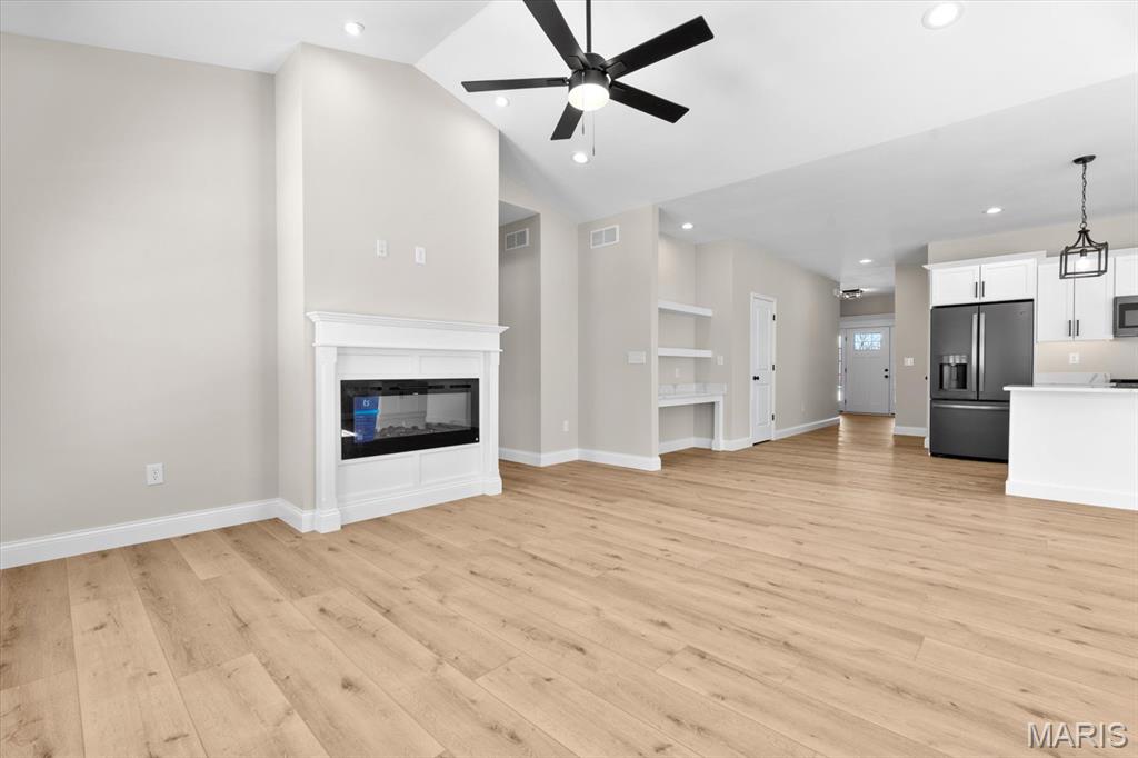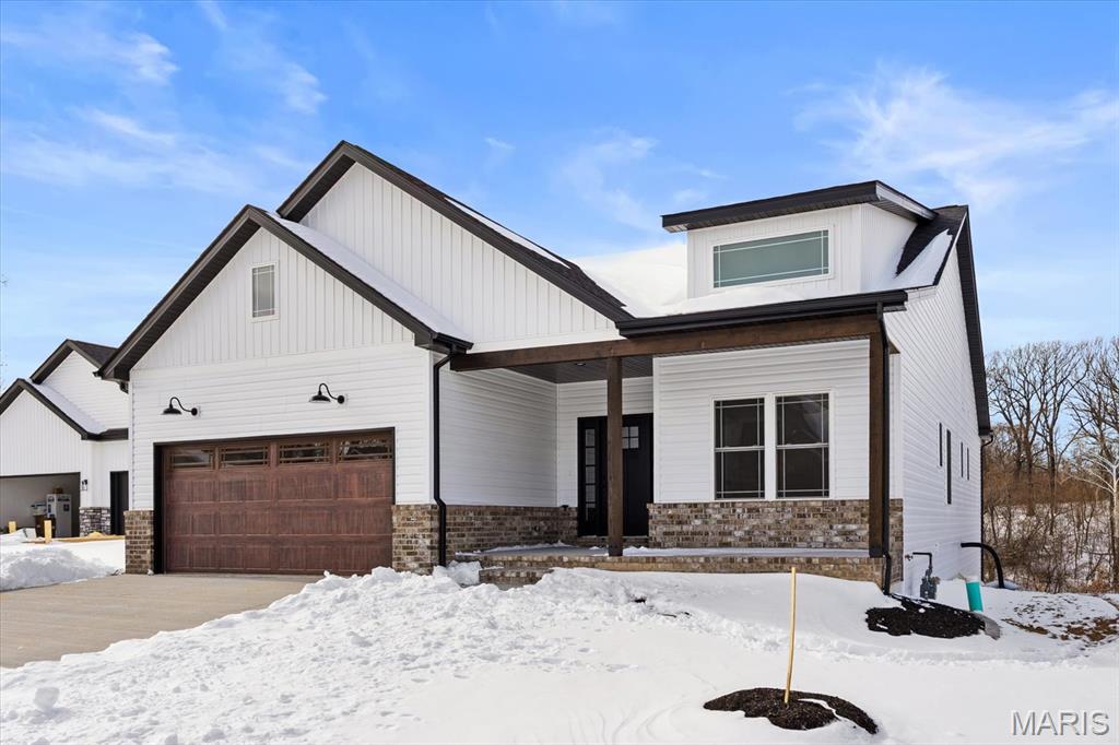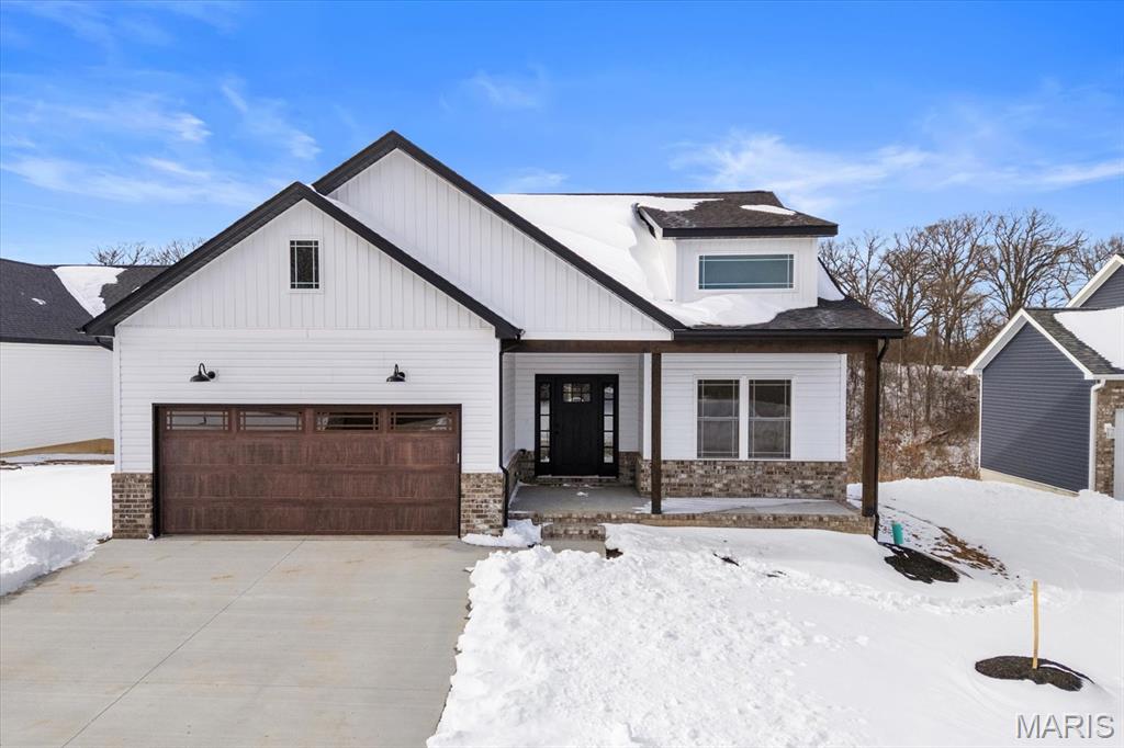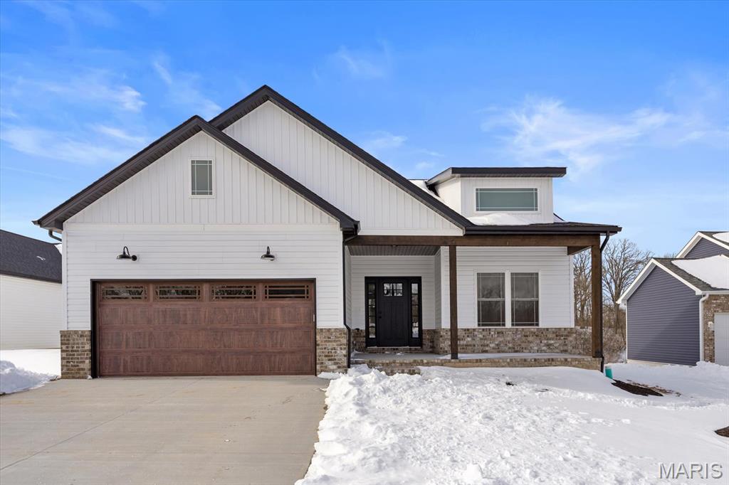 UNDER CONSTRUCTION. The Spruce by Juliet Alpha has quickly become a fan favorite in Tanglewood— With its charming exterior and inviting interior, this 1,617 sq. ft. 3-bed, 2-bath home blends style, function, and thoughtful detail in every room. The kitchen is a true showstopper, with an island over 8 feet long, tons of cabinetry, quartz countertops, and sleek finishes that feel both timeless and on-trend. Each bedroom features 4 LED lights plus a ceiling fan, while custom window trim and closet systems add a polished touch. An unfinished walk-out basement with a bath rough-in and egress window offers the opportunity to easily add more living space, making this home an unbeatable investment. Highlights include luxury vinyl plank flooring, motion lighting, a large covered deck, and a lifetime basement waterproof warranty. Located in the scenic Tanglewood community—just 20 minutes from downtown STL and SAFB. Visit TanglewoodIL.com for 3D floor plan videos and to learn more. Est. completion - Fall '25.