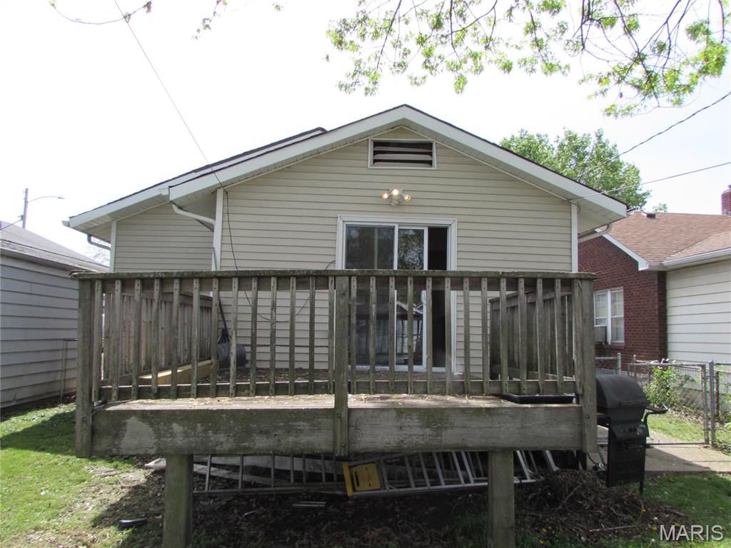 Looking for a bungalow in Granite City? This 2 bed, 1 bath home is centrally located to shopping and schools. Has fenced yard and wood deck. Galley kitchen. Combined living/dining is spacious 24.5 x 10.5. Make it your own with some do it yourself updates. Nice sized front porch and concrete driveway. Replacement windows. Sols AS-IS. Seller will make no repairs HVAC replaced in 2009, Water heater heating element replaced in 2024. Make your appointment to take a look today!