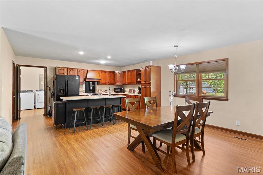 This 4-bed, 3-bath home in the Triad school district will impress with its spacious open floor plan & tons of storage. The kitchen features a center island with a sink & room for the kids to cozy up to do their homework, a range hood over the stove with a ceramic backsplash & a reverse osmosis system at the sink & fridge. Water softener is owned and will stay. All appliances remain including washer and dryer. Wood doors & trim throughout, main-floor laundry. The walk-out basement leads to a large back yard offering a firepit for those cool evenings, a new vinyl fence & several fruit trees. This is an all-electric home. Solar panels are leased at $296/month. Ameren bills are minimal, typically under $30/month. Several recent bills are available to view. The lease contract is also available for review. Enjoy the comfort of knowing that when Ameren rates go up, your monthly bills will remain low. Local lender preferred. Before making an offer on any property, buyer should independently verify all MLS data. Home is being sold As Is.