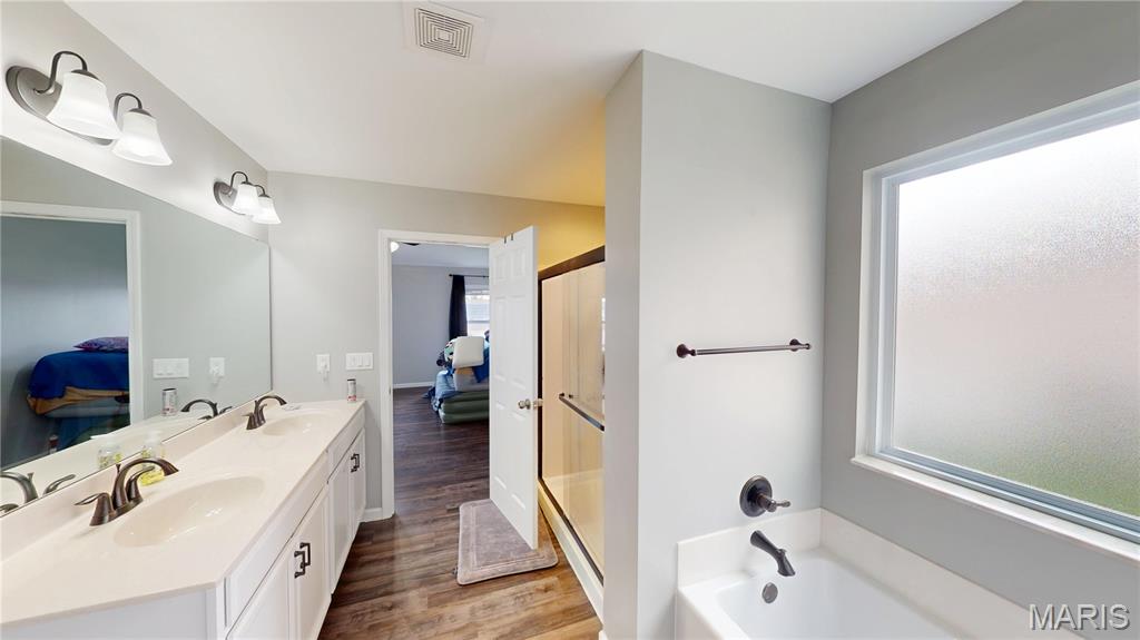 You are not going to want to miss this Amazing 4 Br, 3 Bath ranch with a 3 car garage in the Villages of Wingate! This home has luxury Vinyl Plank Floors! Kitchen has a 8' island, stainless appliances. 42" soft close cabinets, and roll out cabinets. The master suite is on the main and master bath includes a marble shower! The bedrooms are spacious. Wrought Iron Spindles on the staircase that leads to a full walkout basement with 750 sq feet of finished living area!! Downstairs is a spacious family room, and a full bath!! 3 Car Garage, solar panel System with backup battery, and Soffit Lights! You don't want to miss some of the amazing additions to this house. Swing set, bar in basement with rough in wet bar, whole house dehumidifier, whole house humidifier, UV in AC, water softener, tankless water heater, reverse osmosis on kitchen sink and Vivint security system. Schedule your showing today!
