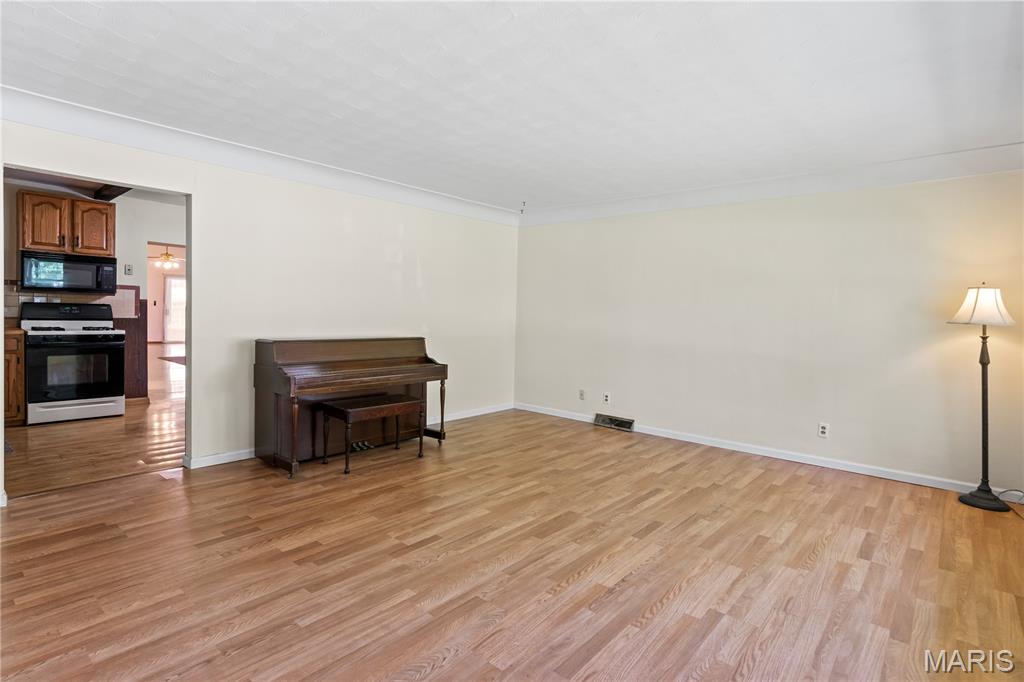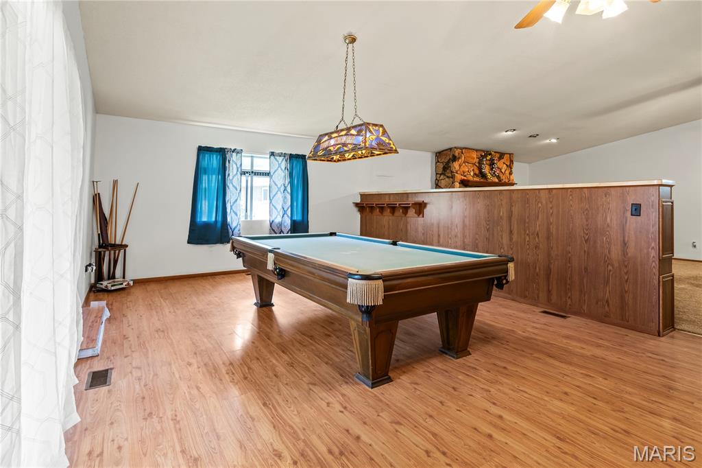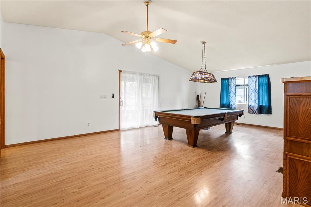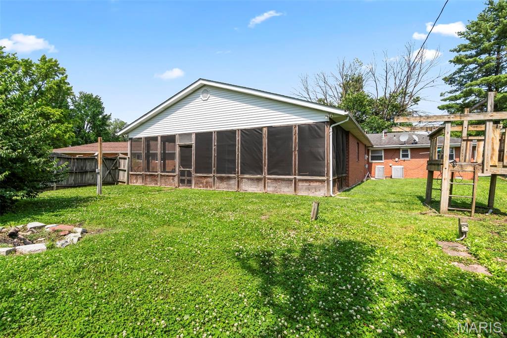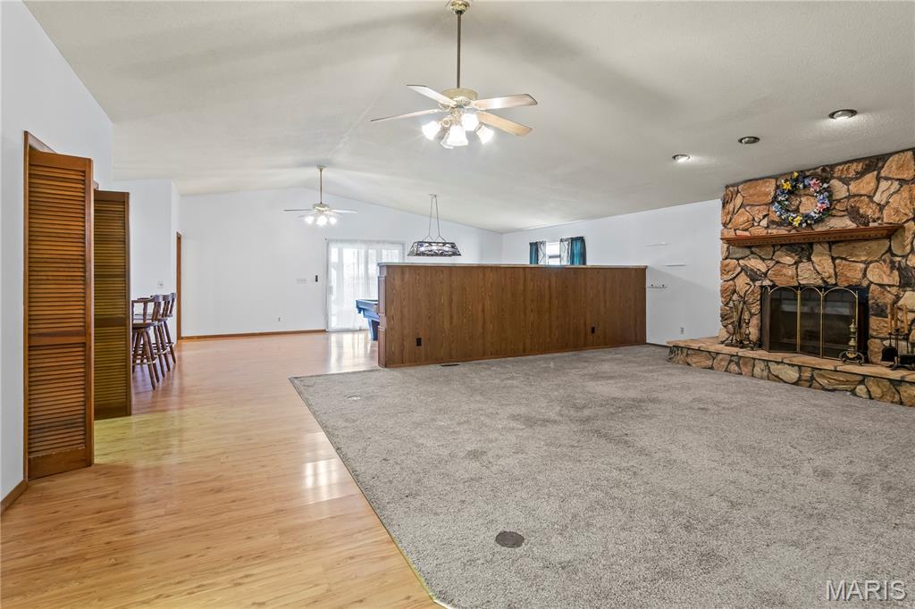 "New Competitive Price" BIGGER than it LOOKS!! You'll love the possibilities here! This spacious brick ranch in unincorporated 62040 is packed with potential. With over 2,500 sq ft of living space, this home offers original hardwood flooring, a 3-bedroom, 1-bath layout, and includes a massive 1,296 sq ft addition, designed for large gatherings. The Addition highlights include an open-concept living space, 10-foot vaulted ceilings (perfect for a pool table, pinball machines, and more!), a stone wood-burning fireplace, a wet bar, a 3/4 bath, a 9x9 walk-in pantry, and a 9x9 walk-in closet/storage area. Step outside through sliding glass doors onto the expansive, 12x35 covered and screened-in patio, perfect for relaxing. The addition also features a charming garden window to bring nature indoors. The zoned heating and cooling, and a whole-house attic fan, help keep the home comfortable throughout the year. Opportunities like this don't come along often. Come see the potential for yourself!