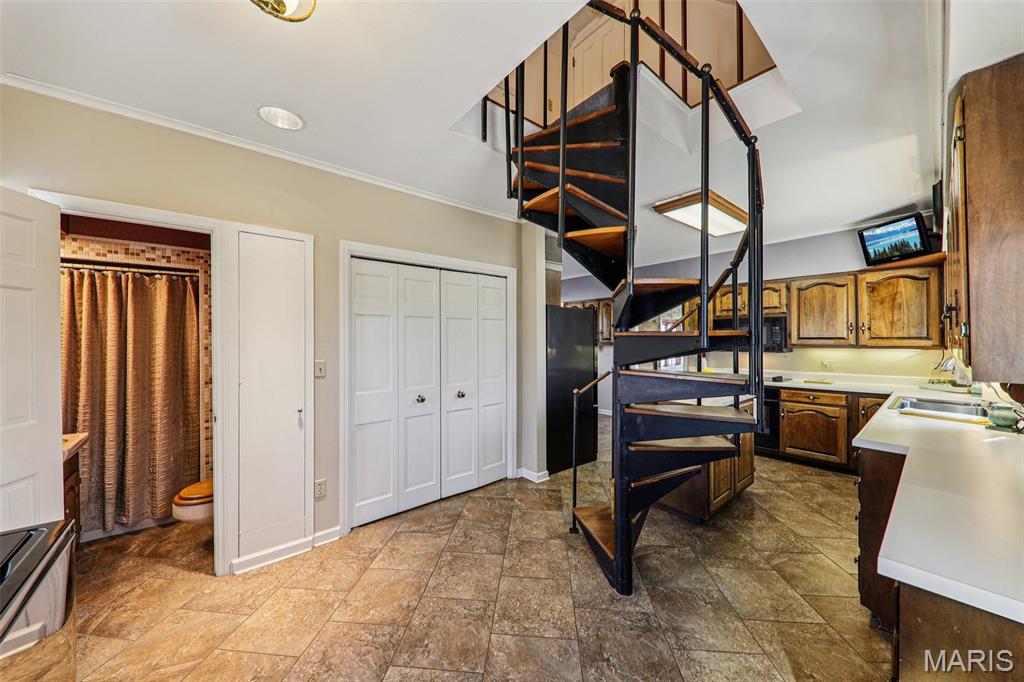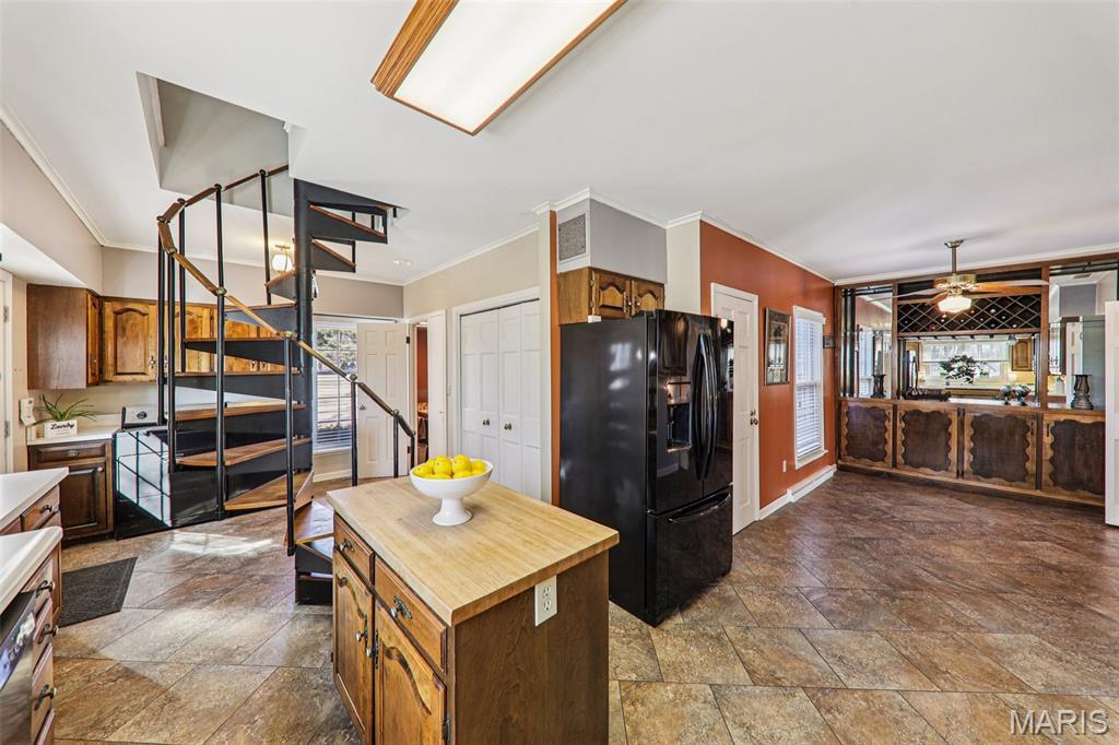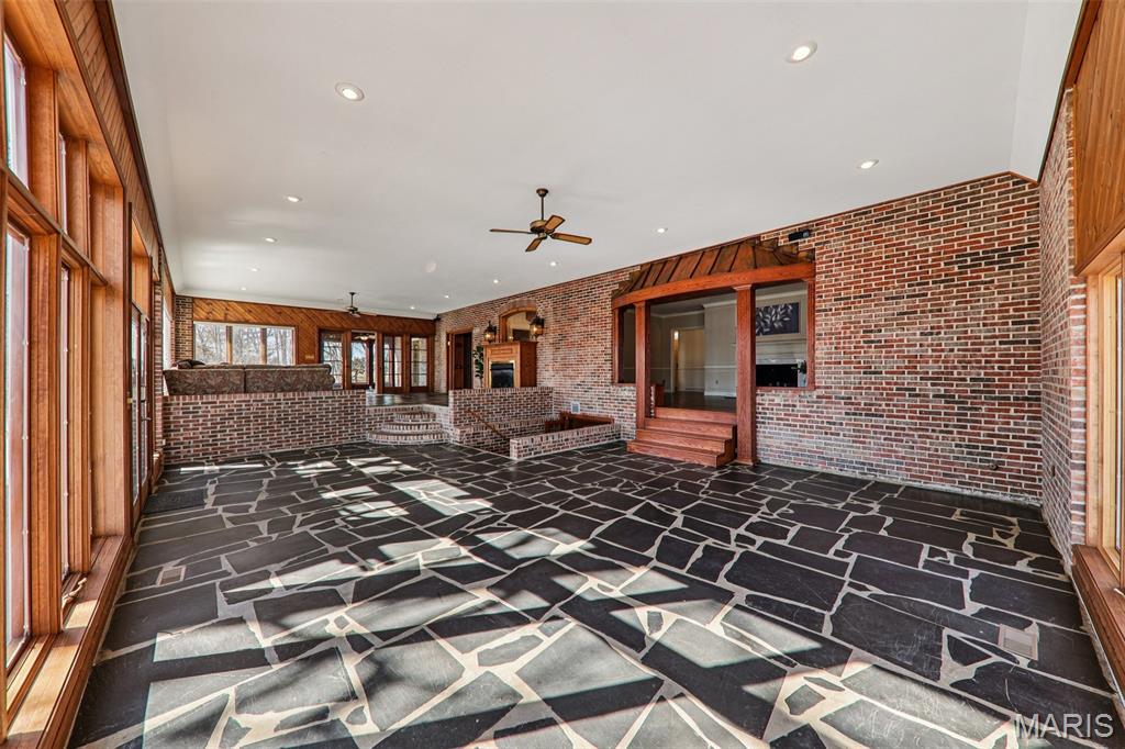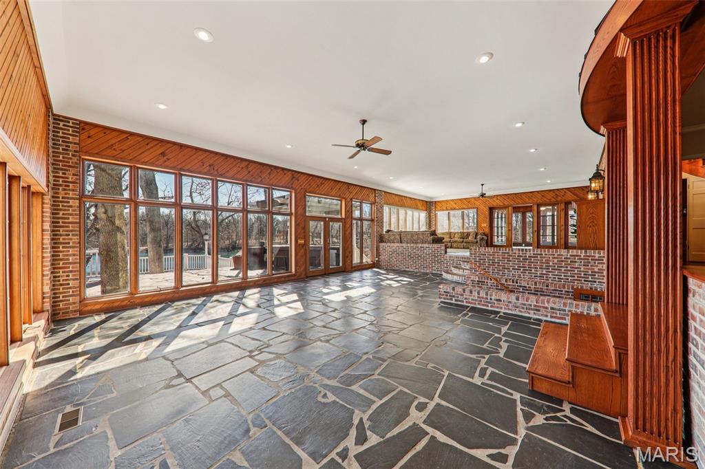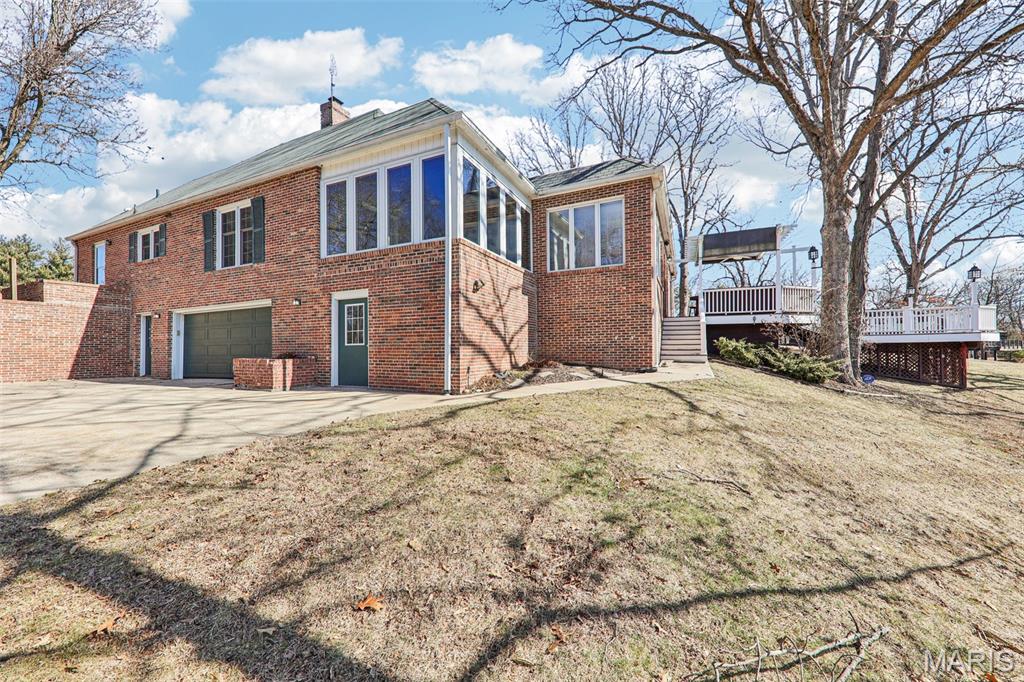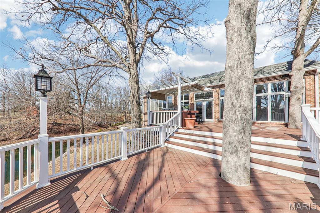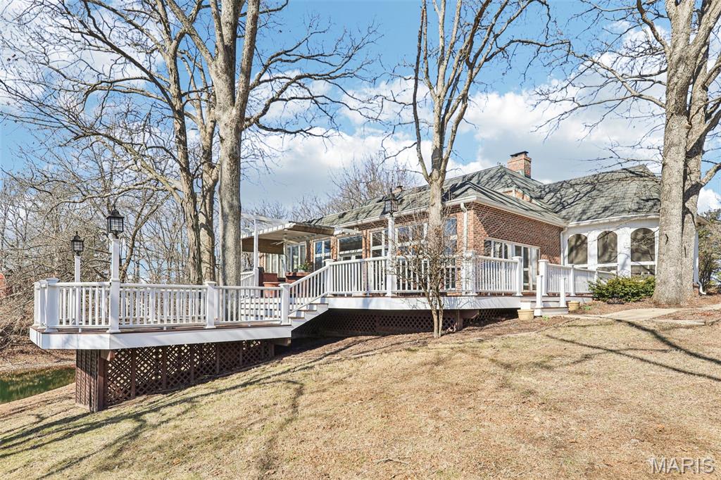 Stunning Home Overlooking Carlinville Golf Course! Discover the allure of this exquisite home, nestled amidst picturesque views of Carlinville Golf Course and a serene stocked pond. This elegant residence boasts a grand circle drive featuring a charming water fountain, leading you into a world of spacious luxury. Step inside to be greeted by a breathtaking winding staircase and a great room adorned with slate floors and abundant windows, perfect for entertaining. Enjoy seamless indoor-outdoor living with a multilevel deck and outdoor kitchen, ideal for gatherings with family and friends. Wake up in one of two sunrooms, savoring morning coffee while soaking in the fabulous views. The main floor primary suite offers a walk-in tiled shower and direct access to a private sunroom, while the upper-level suite features a separate sitting area and custom built-ins. This home is designed for modern living, complete with a kitchen equipped with all appliances, a large pantry, and a unique staircase leading to additional bedrooms. Cozy up by one of the multiple fireplaces on cooler nights, and take advantage of two dedicated office spaces—perfect for remote work! With 4-5 bedrooms, 3 full baths, 2 half baths, and a formal dining room, this home is a true masterpiece. A private bridge leads to a serene garden area with a shed, enhancing the property's charm. Don't miss your chance to own this captivating home—schedule a tour today! Note: some photos enhanced with AI.