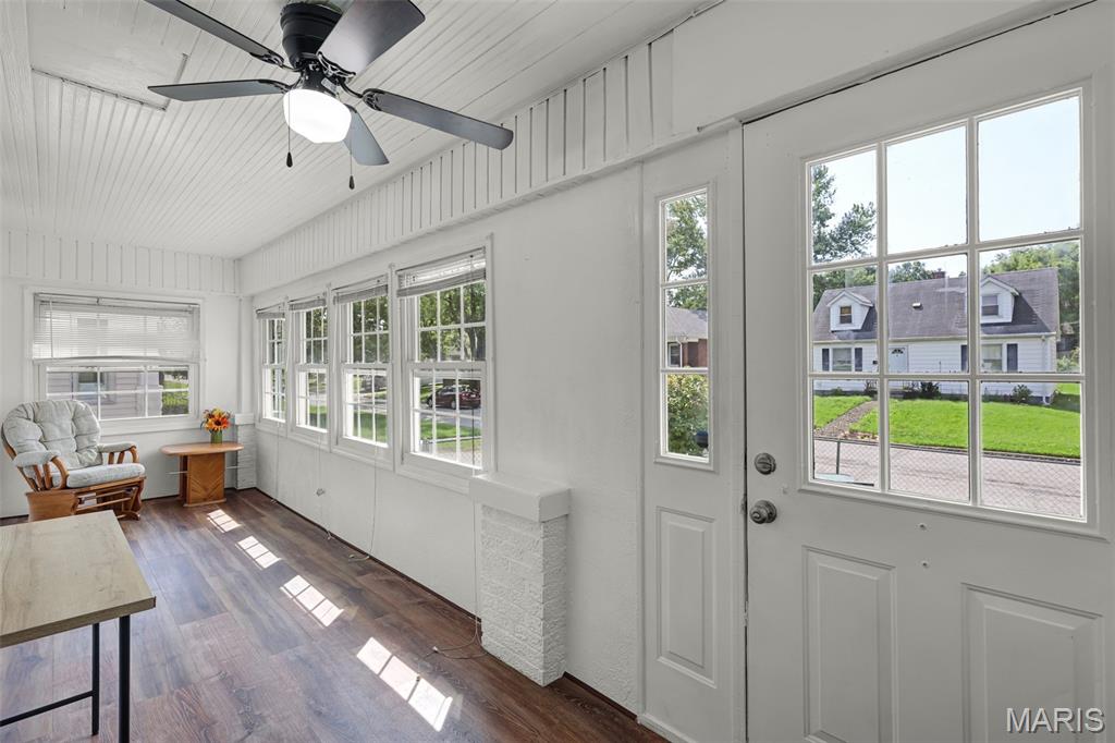 Don’t miss this beautifully maintained Craftsman Bungalow, full of character and space! From its inviting front sunroom to the bright red steps leading to a cozy porch, this home blends timeless charm with functional updates. Enjoy both a peaceful front sunroom and a covered back porch, perfect for relaxing or entertaining. The fully fenced yard and detached 2-car garage add to the outdoor comfort and convenience. Inside, you'll find a well-planned layout with separate living, dining, and kitchen areas. Enjoy the warmth of original hardwood floors throughout the main level, which includes one bedroom and a full bath. Upstairs, you'll find two spacious bedrooms and a convenient half-bath. The clean, unfinished basement adds versatility, offering space for a home gym, rec room, or extra storage. With its classic style, bonus spaces, and excellent curb appeal, this home is move-in ready and waiting for you! Passed City Occupancy Inspection!