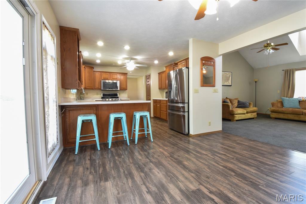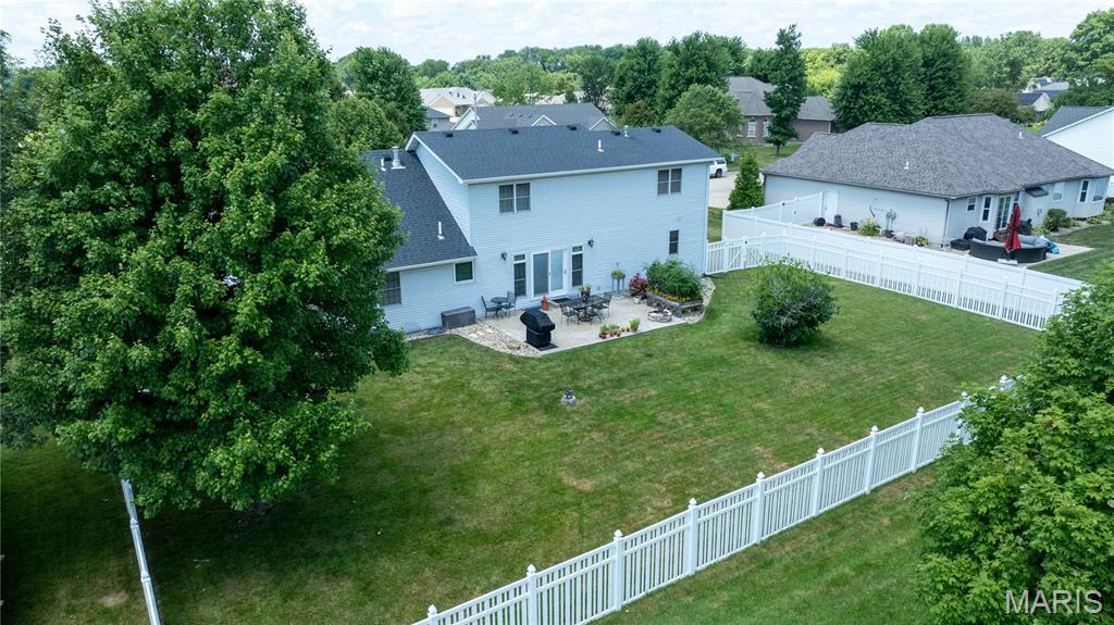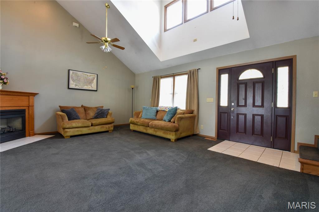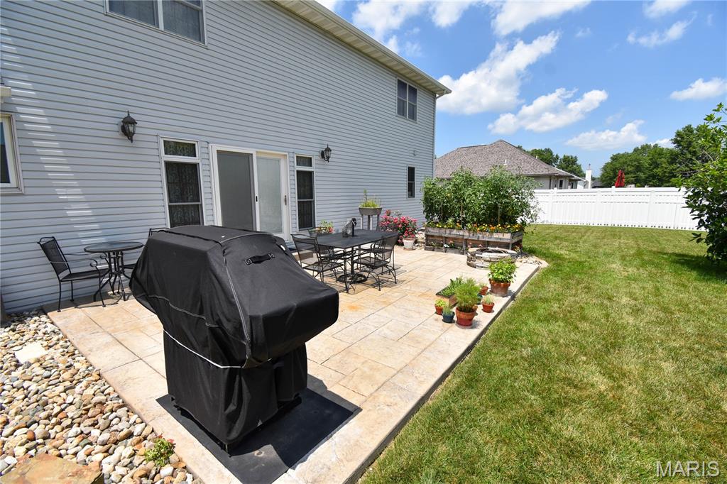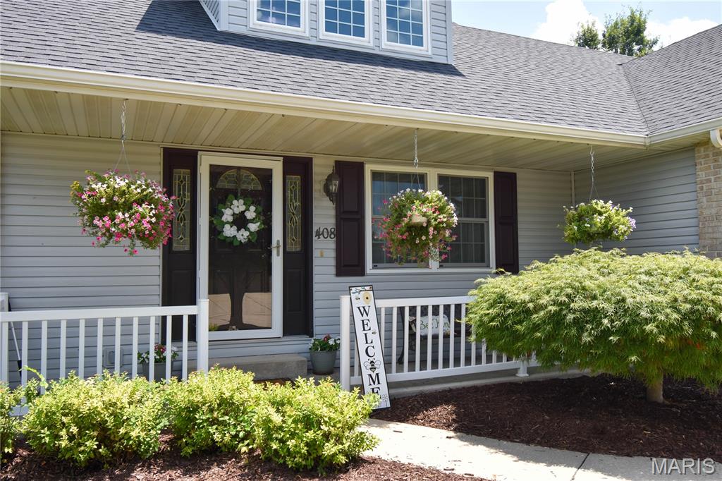 Welcome to 408 Marty Graten Ct – a beautifully maintained home in the highly desirable Trotters Run subdivision w/access to the MCT Trails at the entrance. This property exudes curb appeal and features a backyard that’s perfect for relaxing or hosting a summer barbecue. The meticulously landscaped yard includes a spacious stamped concrete patio, low-maintenance vinyl fencing, and a charming raised garden—ideal for growing your own vegetables. Step inside to an inviting open-concept layout with vaulted ceilings and natural light. The main living area centers around a cozy gas fireplace and flows seamlessly into a well-appointed kitchen, complete with a breakfast bar, and stainless steel appliances. The main level also includes a half bath and a separate laundry room w/utility sink. The primary suite on main level features a large closet and a private bath with a garden tub and separate shower. Upstairs, you’ll find two generously sized bedrooms and a full bath. The partially finished basement expands your living space with a spacious family room featuring a wet bar, a third full bathroom, and a versatile bonus room—ideal for a home gym, office, or guest suite. Additional highlights include an office area off the kitchen and an oversized 2-car garage with extra storage space and a home warranty for peace of mind. Located just minutes from I-55 and Edwardsville, this move-in-ready home blends small-town charm with modern convenience. Don’t miss your chance to make it yours!