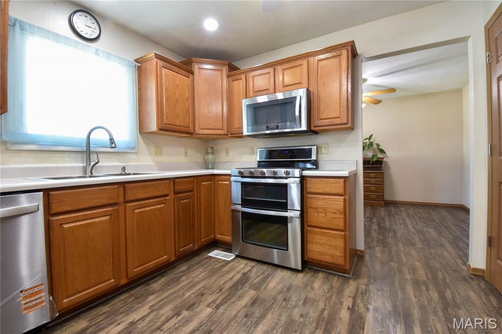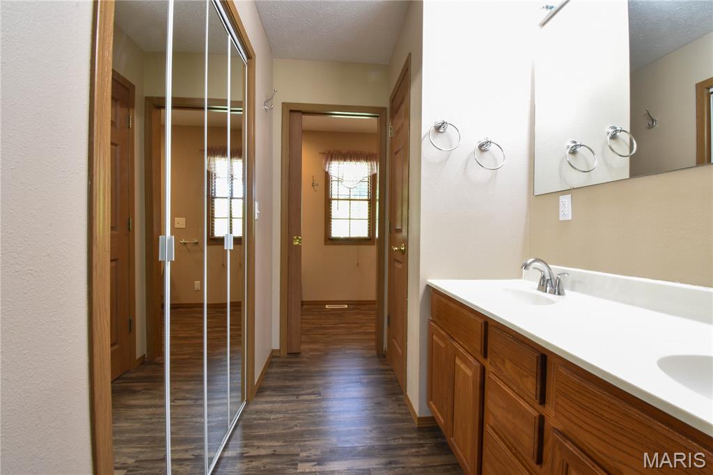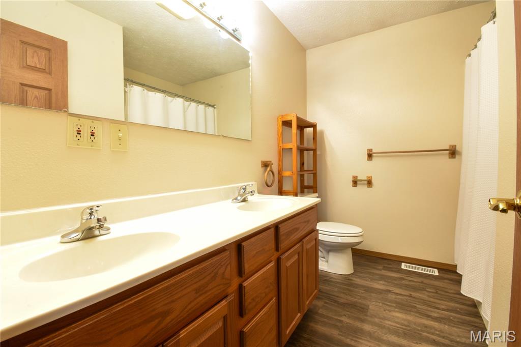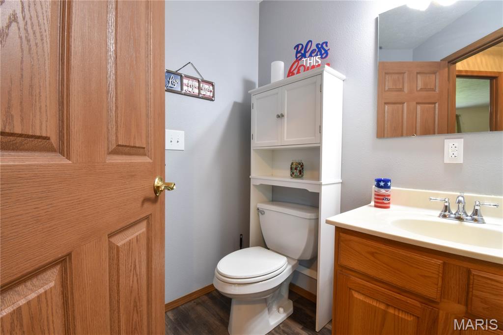 Welcome to 408 Marty Graten Ct – a beautifully maintained home in the highly desirable Trotters Run subdivision w/access to the MCT Trails at the entrance. This property exudes curb appeal and features a backyard that’s perfect for relaxing or hosting a summer barbecue. The meticulously landscaped yard includes a spacious stamped concrete patio, low-maintenance vinyl fencing, and a charming raised garden—ideal for growing your own vegetables. Step inside to an inviting open-concept layout with vaulted ceilings and natural light. The main living area centers around a cozy gas fireplace and flows seamlessly into a well-appointed kitchen, complete with a breakfast bar, and stainless steel appliances. The main level also includes a half bath and a separate laundry room w/utility sink. The primary suite on main level features a large closet and a private bath with a garden tub and separate shower. Upstairs, you’ll find two generously sized bedrooms and a full bath. The partially finished basement expands your living space with a spacious family room featuring a wet bar, a third full bathroom, and a versatile bonus room—ideal for a home gym, office, or guest suite. Additional highlights include an office area off the kitchen and an oversized 2-car garage with extra storage space and a home warranty for peace of mind. Located just minutes from I-55 and Edwardsville, this move-in-ready home blends small-town charm with modern convenience. Don’t miss your chance to make it yours!