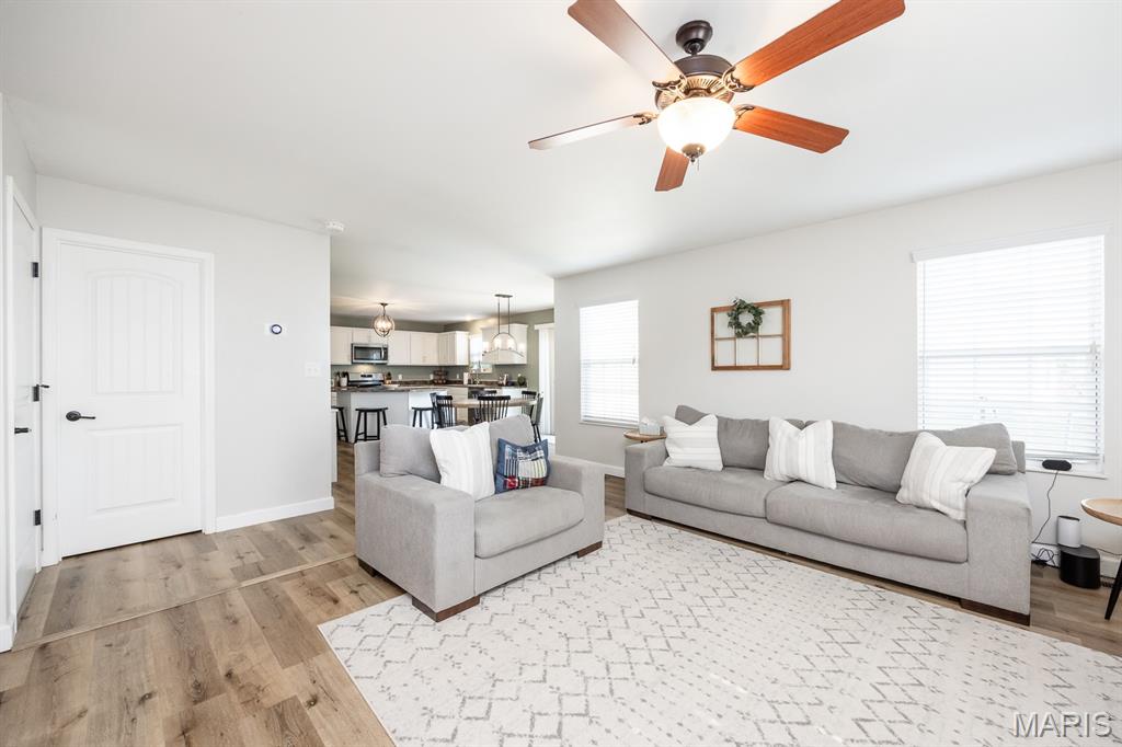 New Price.... Beautiful 4BR home in sought-after Mascoutah Schools! Open floor plan with gas fireplace, formal dining, and stunning kitchen with island & walk-in pantry. Breakfast nook flows to family room—perfect for entertaining! Upstairs loft, spacious primary suite with 2 closets, plus 3 more bedrooms. Brand new roof!!! Enjoy lake views from the patio, full unfinished basement with bath rough-in, zoned A/C, and 3-car garage. Minutes to Scott AFB!