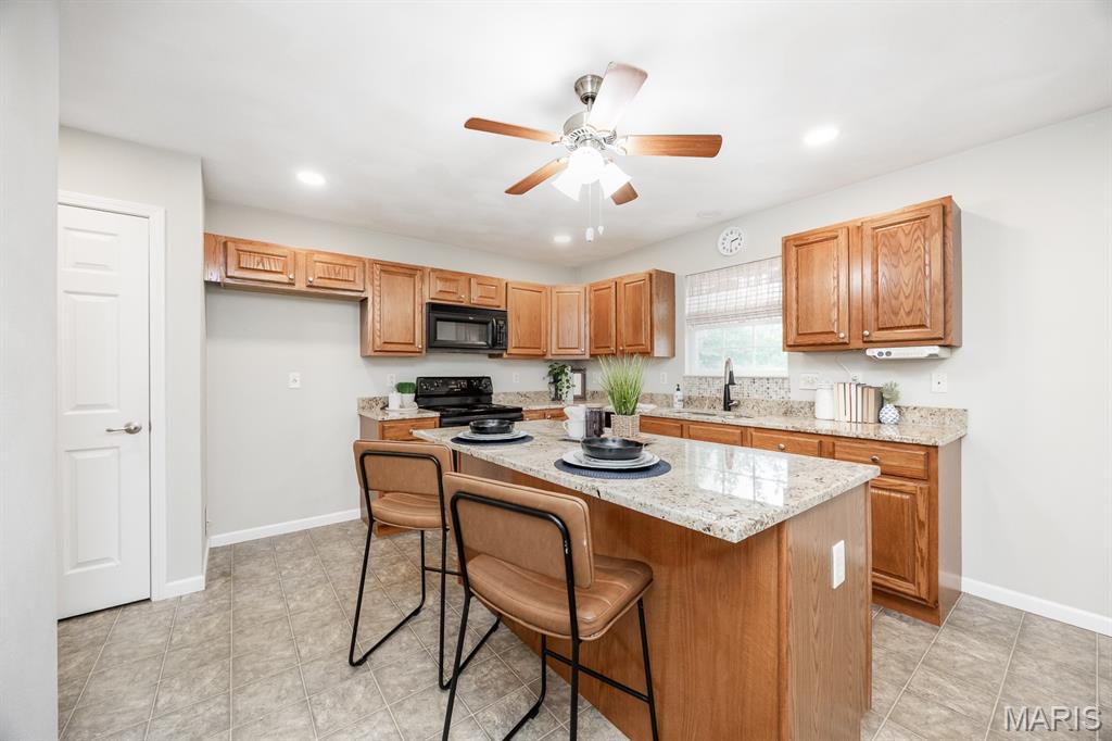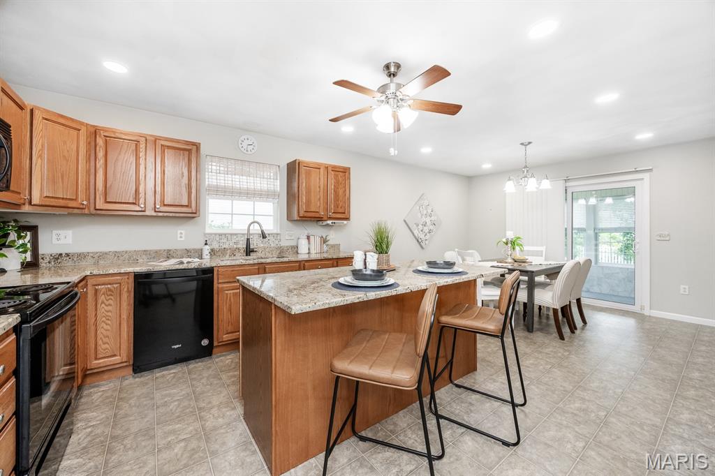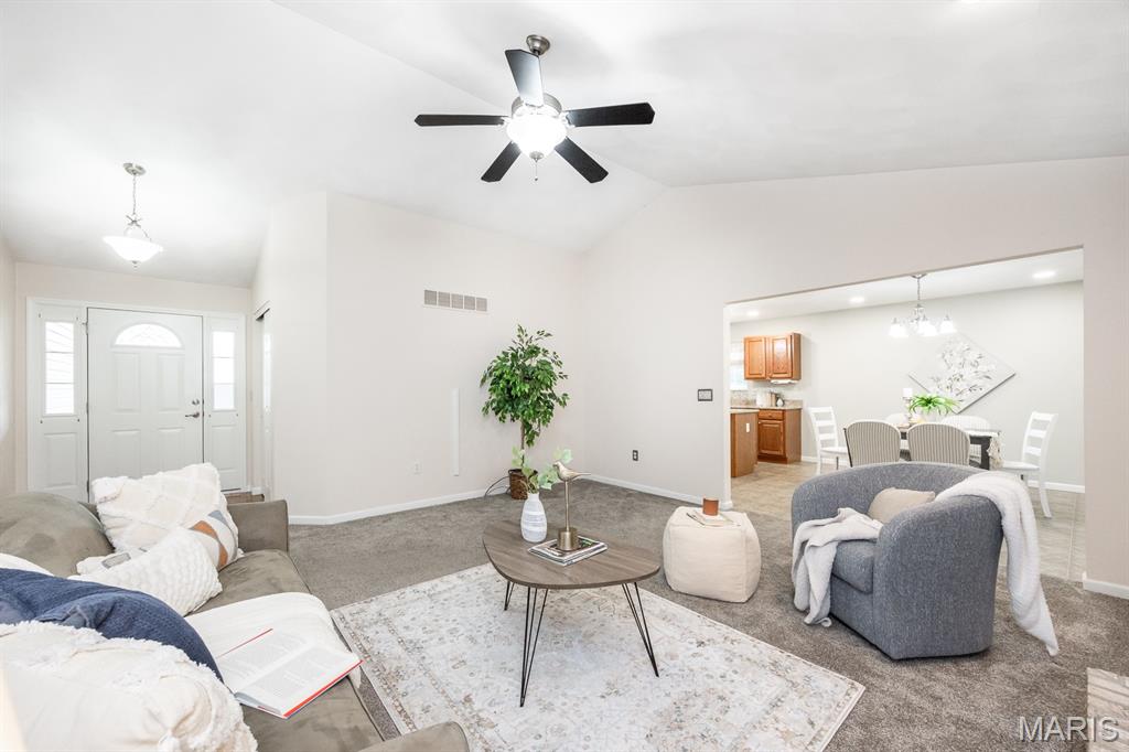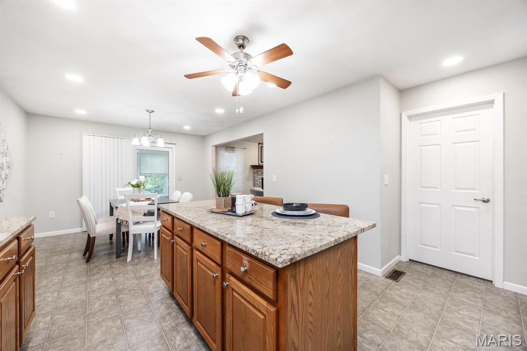 NEW LISTING! Welcome to 413 Fieldview Drive in the Manors of Fieldstone. This well maintained one owner ranch home Built in 2005 offers a wonderful canvas to create the home you've always envisioned. Featuring; Open floor plan, Newer solid surface countertops highlight the easy flow kitchen and island space, Breakfast nook can accommodate a large table and has access to the enclosed porch and beautiful backyard, Main floor laundry off kitchen, Large living room with gas fireplace and vaulted ceilings, Primary suite with double bowl vanities, vaulted ceiling and walk-in closet, Partially finished basement with rough in for future bath and a huge unfinished storage area. Imagine peaceful evenings spent unwinding in your private haven in the enclosed porch or enjoying that first cup of morning coffee before starting your day. The backyard oasis awaits you for relaxation, enjoyment or entertainment while offering the safety of a fully fenced in yard. You will simply enjoy the privacy the backyard has to offer with the well thought out mature landscaping.
