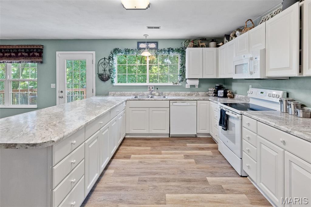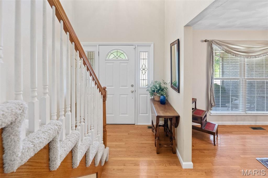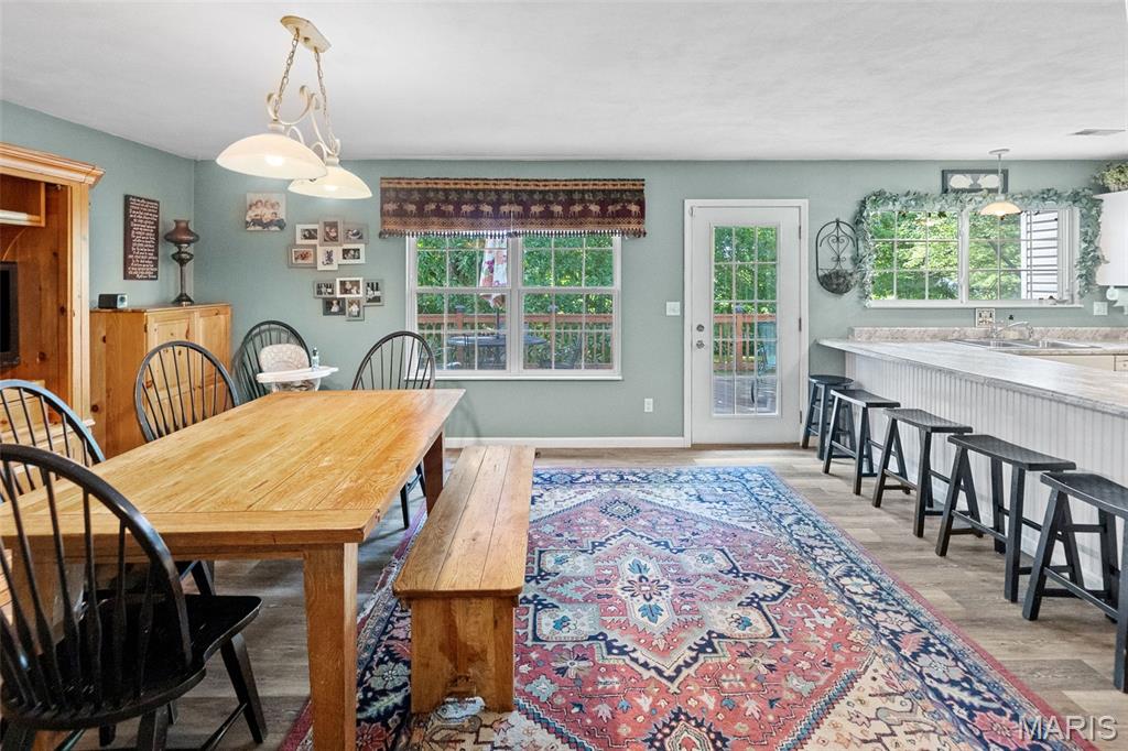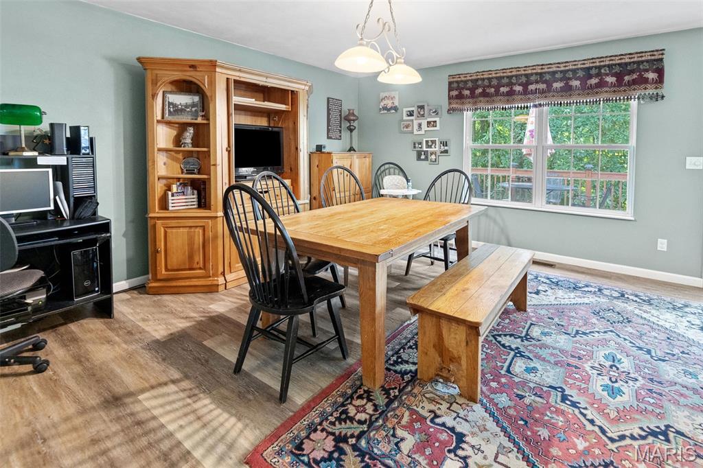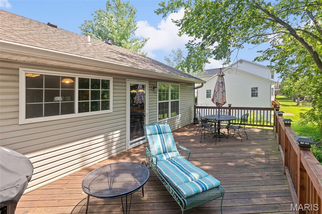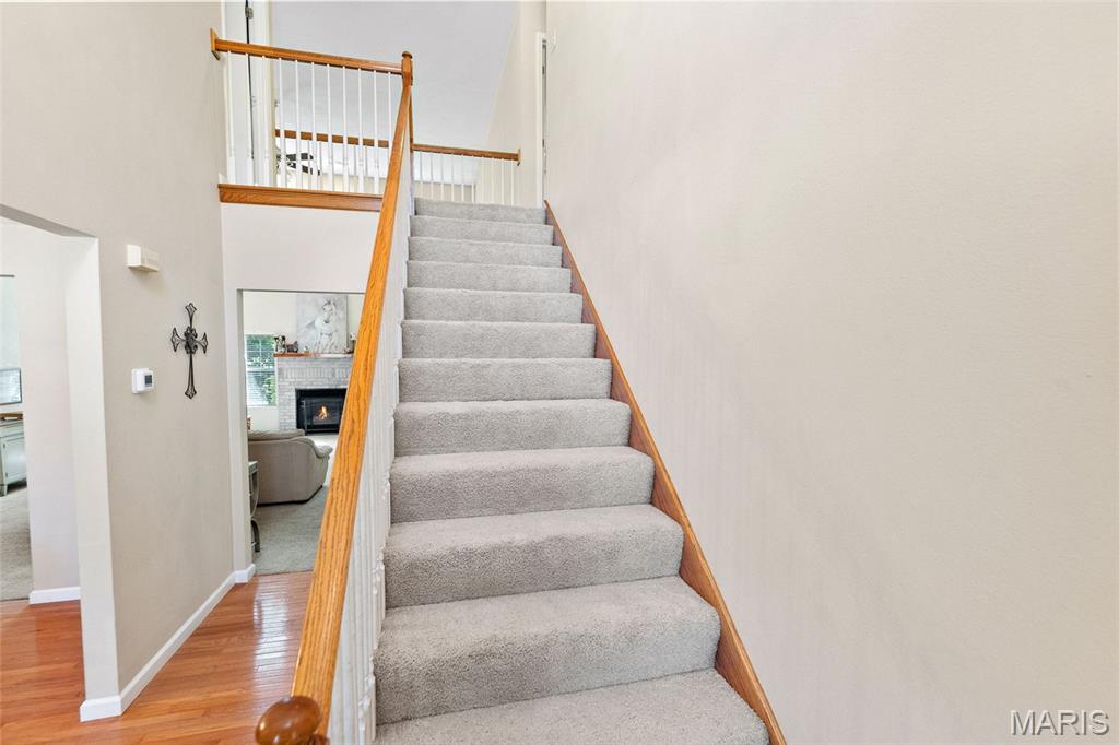 Spacious 2 story, in Wolf Branch School District, is family ready! Don't miss this home that has large rooms throughout. 2 story Entry foyer flows into the Great room with soaring ceilings and a gas fireplace. Classic Dining room has gleaming wood flooring. The White, bright Kitchen with a large walk-in pantry, boasts new luxury vinyl plank flooring that flows into the Breakfast area, Powder room and Laundry room. Walkout to the oversized deck that overlooks the private, wooded backyard. Main level Primary Bedroom has private in-suite Bathroom with a double vanity, whirlpool tub, walk-in shower and a huge walk-in closet. 3 additional bedrooms upstairs, 1 doubling as a playroom right now, share an oversized bathroom. The Walkout lower level with an abundance of windows and natural light, has tons of potential, the full Bath is already completed, and walks out to the .58 acres private, wooded lot. This home is conveniently located near bike trails and across the street from Clinton Hill Park, featuring walking trails, pickle ball courts and a delicious restaurant. Call for your private viewing today.