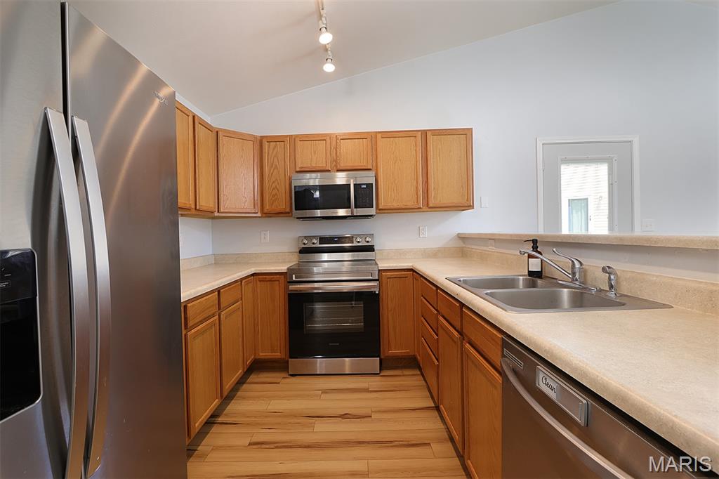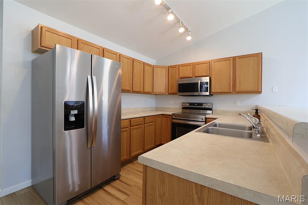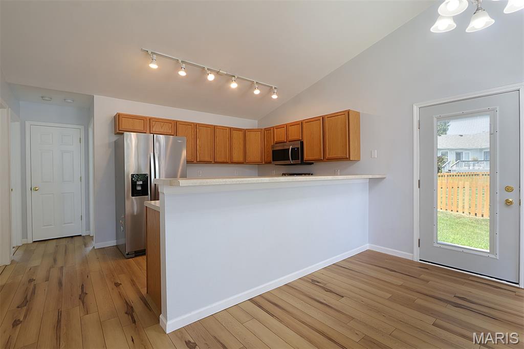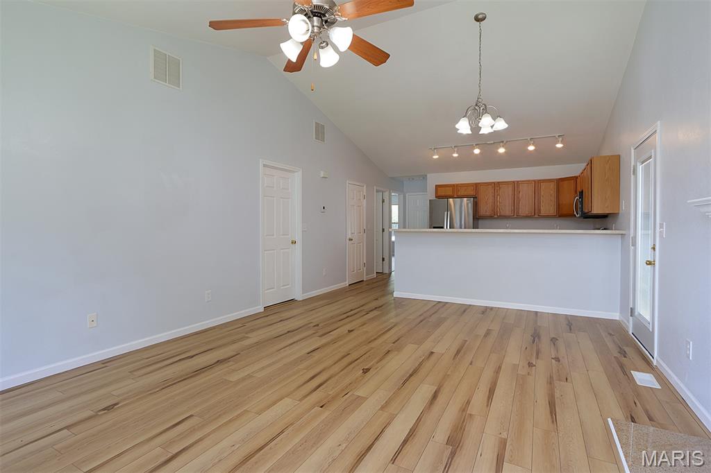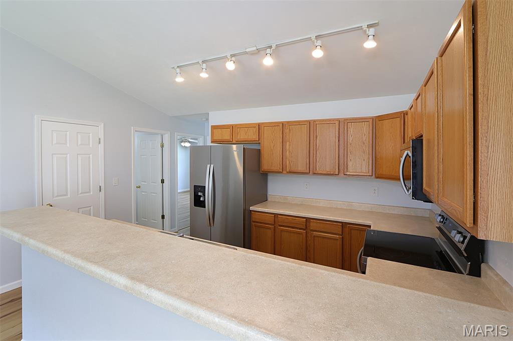 Welcome to this beautifully updated 2-bedroom, 2-bath villa, ideally situated at the end of a quiet cul-de-sac. This home features new flooring throughout, updated stainless steel appliances, and an inviting open-concept layout with an eat-at bar and cozy fireplace in the living area. A sliding patio door leads to a concrete patio and a well-maintained yard—ideal for relaxing or entertaining. Whether you're looking to downsize or need convenient housing near the college, this villa offers comfort, style, and a fantastic location.