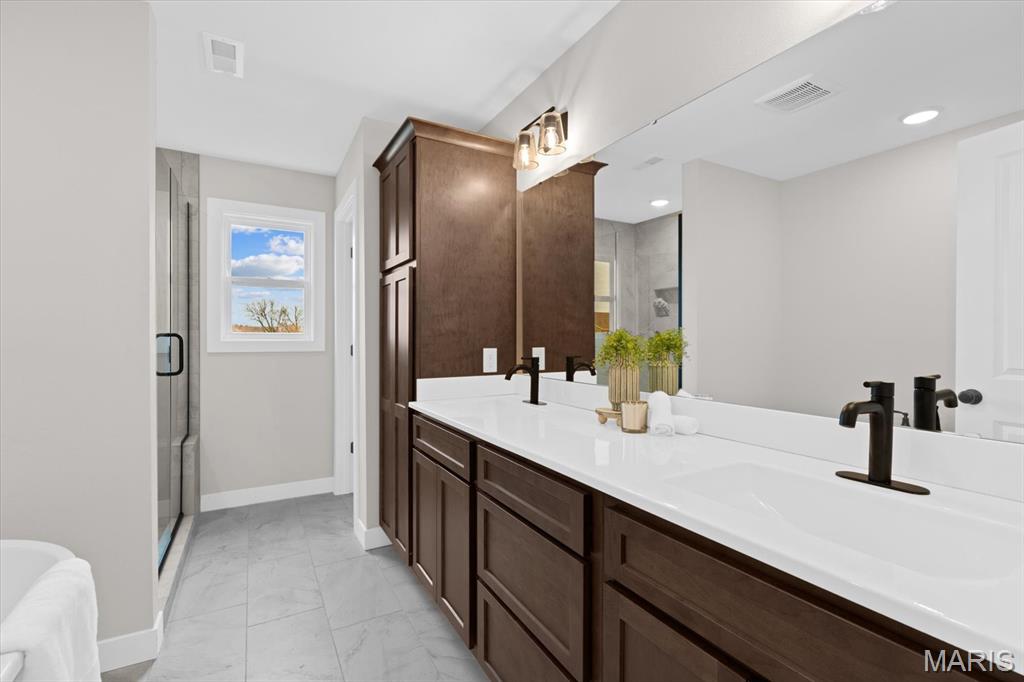 Discover the perfect blend of luxury and family-friendly living in this stunning new construction home by H&L Builders. Located ithe highly sought after Savannah Hills neighborhood, this new construction residence offers an exceptional lifestyle within the highly-acclaimed O'Fallon School District (K-12).  This impressive two-story home is the largest model in the community, featuring 5 oversized bedrooms, 3.5 bathrooms, and nearly 4,000 square feet of meticulously designed living space. The main level is an entertainer's delight, with a bright and open floor plan that seamlessly connects the chef's kitchen, elegant dining area, and inviting living room.  Upstairs, a tranquil retreat awaits with four well-sized bedrooms, large closets, and a massive primary suite complete with a spa-like ensuite bath. The finished basement adds incredible versatility, featuring an additional bedroom and a sprawling recreation area perfect for movie nights, a game room, or a home gym. The three-car garage provides ample storage, rounding out the convenience and functionality of this remarkable property. One of the main highlights of this home is the sense of community lifestyle it offers. Step outside and enjoy exclusive access to an incredible array of amenities, including neighborhood pool and clubhouse, walking trails, and a fun-filled playground. Blending size, style, and a vibrant community atmosphere, this home is a standout option for families seeking the ultimate place to thrive.