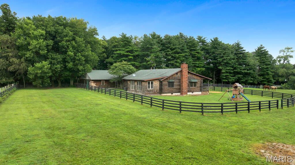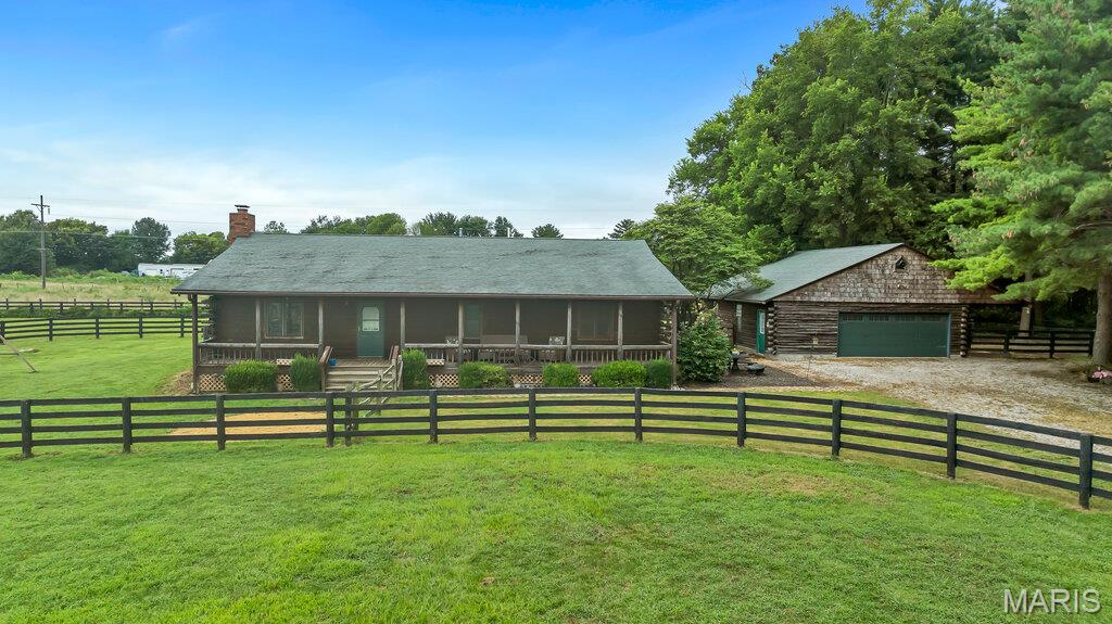 Escape to your private retreat with this stunning log home nestled on nearly 4 serene acres. This beautifully maintained 3-bedroom, 2-bath residence offers the perfect blend of rustic charm and modern comfort, featuring a spacious open floor plan filled with natural light and warm wood accents throughout. Ideal for horse lovers or hobby farmers, the property boasts three fenced pastures, a riding arena, and ample space to roam. Surrounded by mature trees and lush woods, enjoy ultimate privacy and tranquility from every corner of the property. The oversized two-car garage provides plenty of room for vehicles, equipment, or workshop space, while the expansive grounds offer endless possibilities for outdoor living, entertaining, or simply soaking in nature. This unique property truly has so much more to offer—a must-see for those seeking peace, space, and country charm!