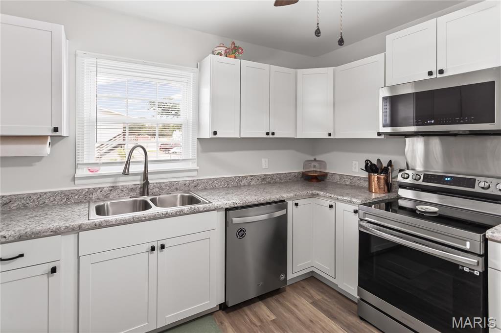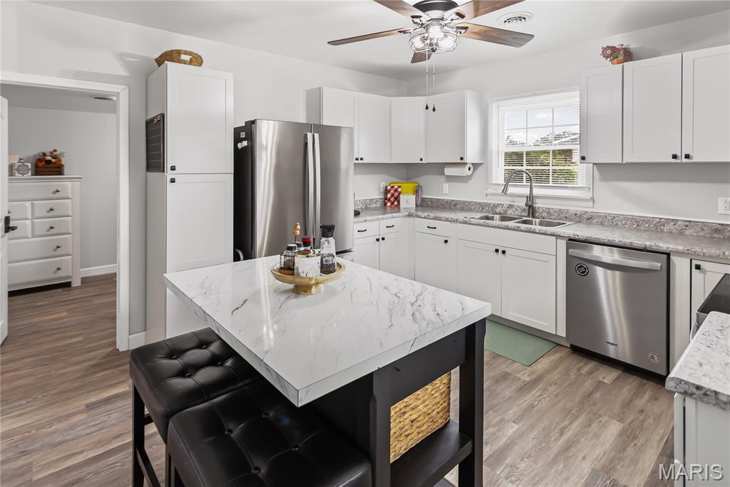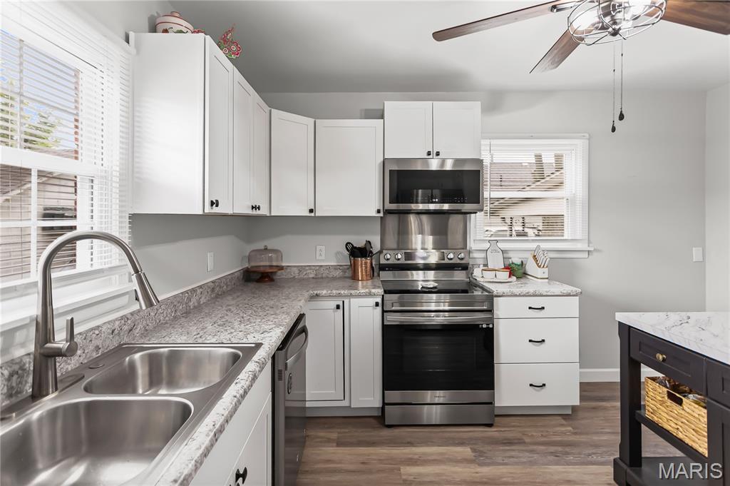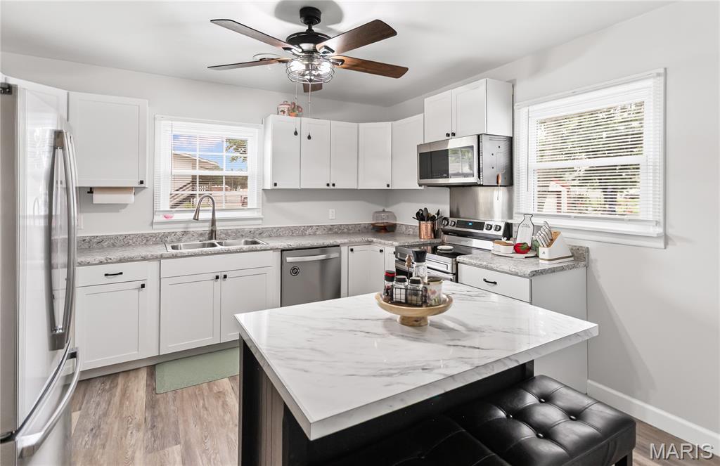 Welcome to this beautifully remodeled all-brick home that perfectly blends classic charm with modern convenience! Enjoy relaxing mornings on the inviting covered front porch, surrounded by maintenance-free landscaping that offers great curb appeal with minimal upkeep. Inside, you’ll find a thoughtfully designed layout featuring three spacious bedrooms, two full bathrooms, and a convenient main floor laundry room. The kitchen is a true showstopper, completely updated with stylish finishes, a center island, and plenty of cabinet space, ideal for everyday living and entertaining. Both bathrooms have been tastefully remodeled, and new flooring runs throughout both the main level and lower level, complemented by updated windows. The finished basement offers a third bedroom and additional living space. Outside, enjoy covered parking under the carport, plus a detached one-car garage for extra storage.This move-in ready home checks all the boxes, style, space, and comfort all wrapped up in a low-maintenance package. Don’t miss your chance to make it yours!
