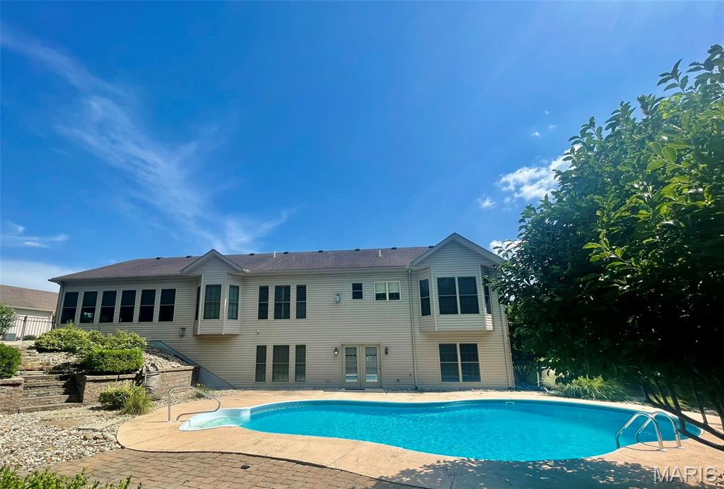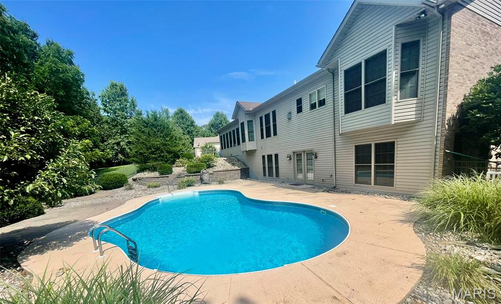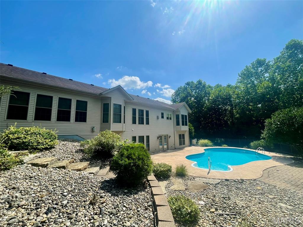 Summer is still here, and you could be enjoying it from your own backyard retreat! Take a look at this fully landscaped, beautiful inground pool surrounded by woods on two sides ~ privacy in town! When winter does roll around, enjoy it next to one of two fireplaces in the beautiful home! Main floor has two large bedrooms with unbelievable walk-in closets! Primary bedroom walk-in closet is 12x12 with built-ins! Primary bedroom bay window overlooks the backyard, pool and wooded lot. Open concept kitchen, living, dining area is graced with an abundance of natural light from the multiple windows overlooking the private backyard. My favorite room happens to be the 15x23 sunroom ~ so many windows and its own AC and furnace shared with the heated and cooled garage. In the lower level walk out, you will find the second gas fireplace and 14x18 bedroom with 6x13 walk-in closet. This home is located at the end of the subdivision on the largest lot in Woodcrest. (Two lots but one parcel.) Don't miss your chance to own this lovely home in a great neighborhood.