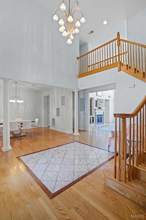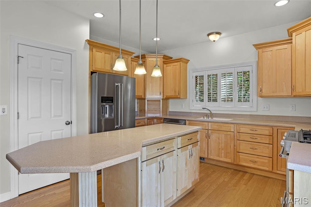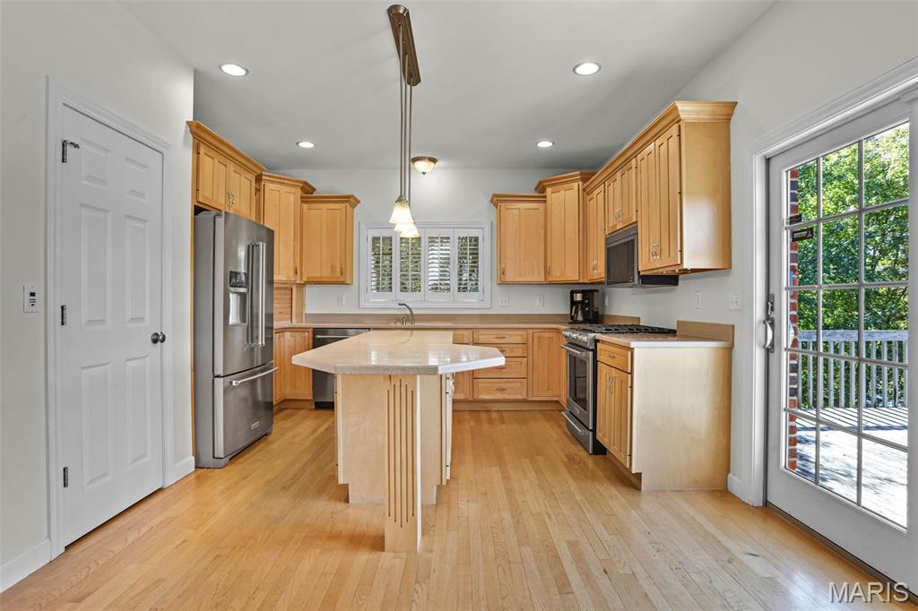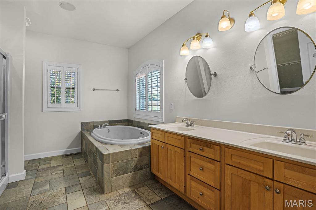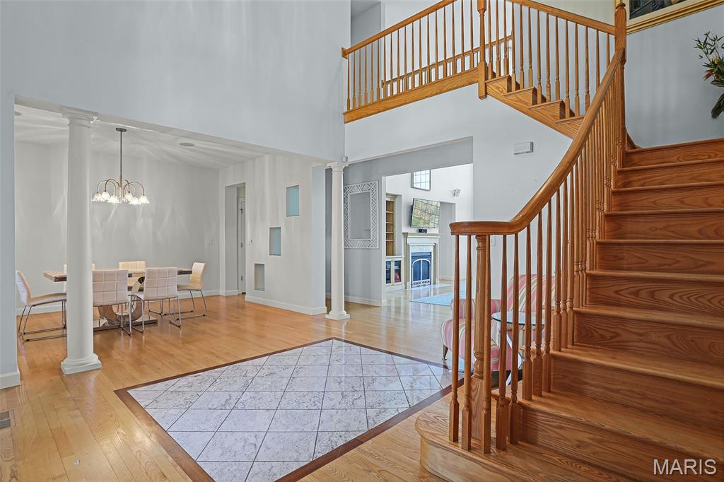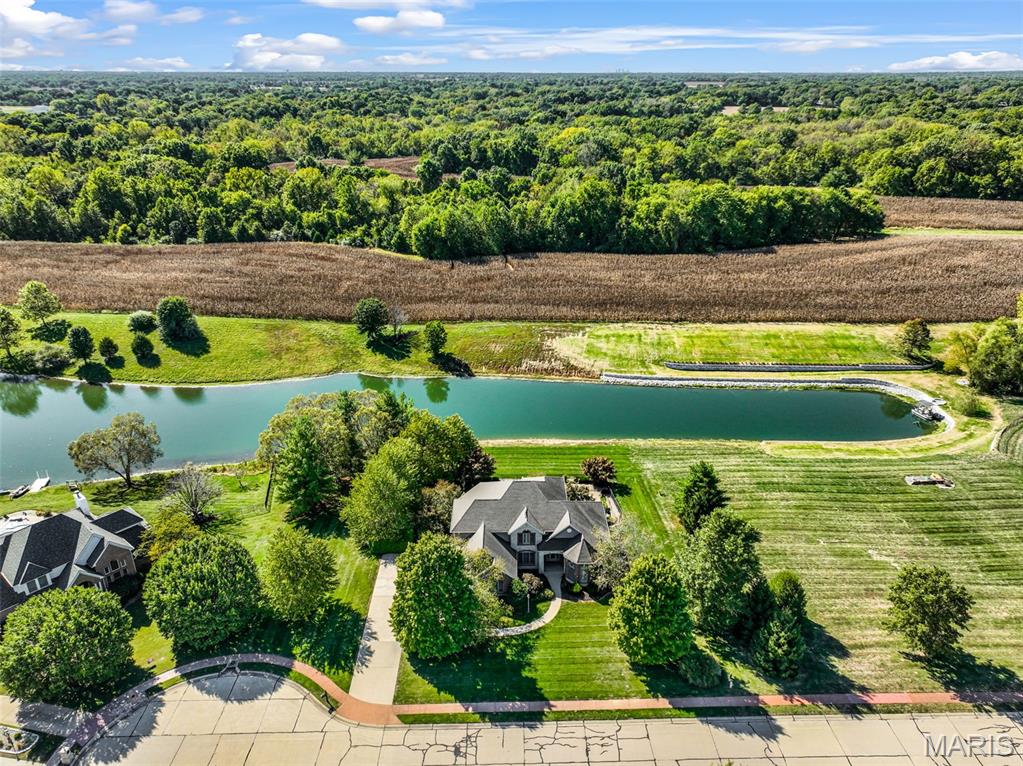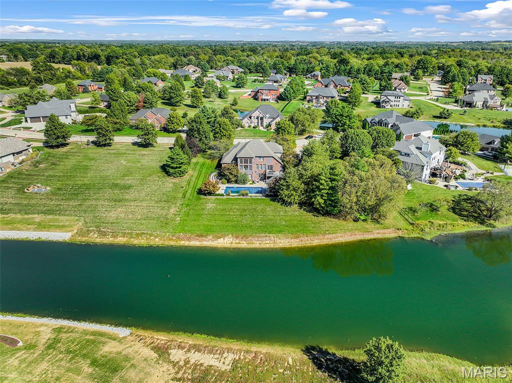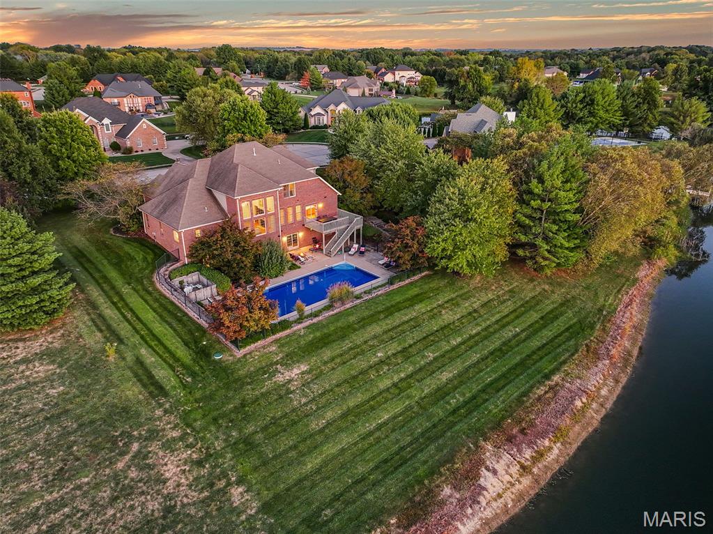 If you've been searching for a home with square footage and serenity, look no further. 109 Yorkshire Ct, located in the upscale Castle Ridge Estates neighborhood, has nearly 5,000 sq ft of living space. This 5 Bdrm/5Ba home is situated on a 2 acre cul-de-sac lot that backs to the subdivision lake. Enjoy unobstructed picturesque views of the sunset from your deck on the main level or perhaps while relaxing in the 20x45 ft saltwater pool. The all brick 1.5 story home has a 2 story great room with abundant windows to enjoy those same gorgeous views. The eat in kitchen features all new stainless steel KitchenAid appliances (2025), Corian countertops and center island. Throughout the home you'll find wood plantation shutters as well as a whole house sound system. The home has CAT5 wiring, zoned HVAC with a NEST thermostat on the main, and it is wired for ADT security. The main floor has a separate office space with built-ins and a closet which could be utilized as a bedroom if needed. Upstairs through double doors the first bedroom has its own vanity area, walk-in closet and en suite bath with separate tub/shower. The remaining two upstairs bedrooms share a jack & jill bath. The walkout basement includes ample living space, a wet bar, gaming table, a home gym, full bath and 5th bedroom. All of this living space and yet plenty of unfinished space for storage. You could add an additional bedroom with an existing window as well. With all neighbors also having sizable lots, you get the pros of neighborhood living while maintaining privacy. The backyard oasis is great for entertaining or perfect for tuning the world out. Mature landscaping and outdoor irrigation system keep the property lush & green. Simply put, this home checks all the boxes on your list of must haves. Conveniently located between Troy & O'Fallon, Triad schools, and minutes from interstates 55 or 64...don't miss this opportunity to make this slice of heaven yours!