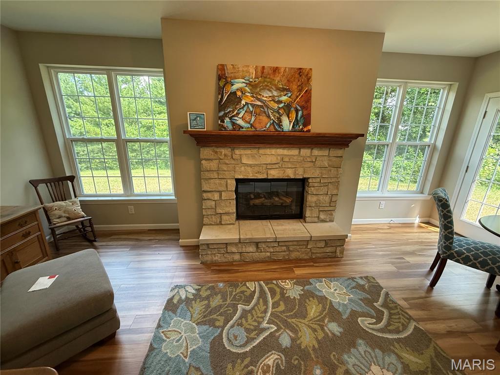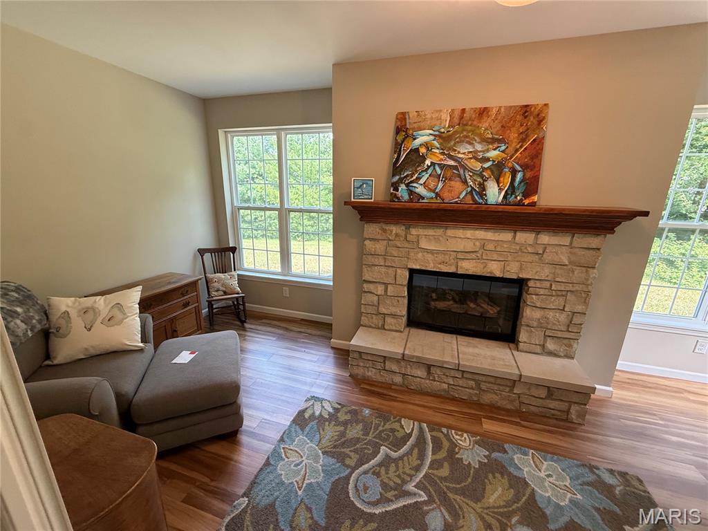 Azalea Gardens Condominiums. This beautiful craftsman style designed villa features 2 bedroom, 2 bath, 1600 sq. ft. , and full basement. The conditioned family room & glassed porch with stone fireplace fueled by natural gas is a great place to relax & enjoy the wooded backyard. Includes a finished attached 2 car garage w/opener. The full basement has an egress window for adding a third bedroom & roughed in plumbing for another bathroom & plenty of space to add a large rec rm or family rm.