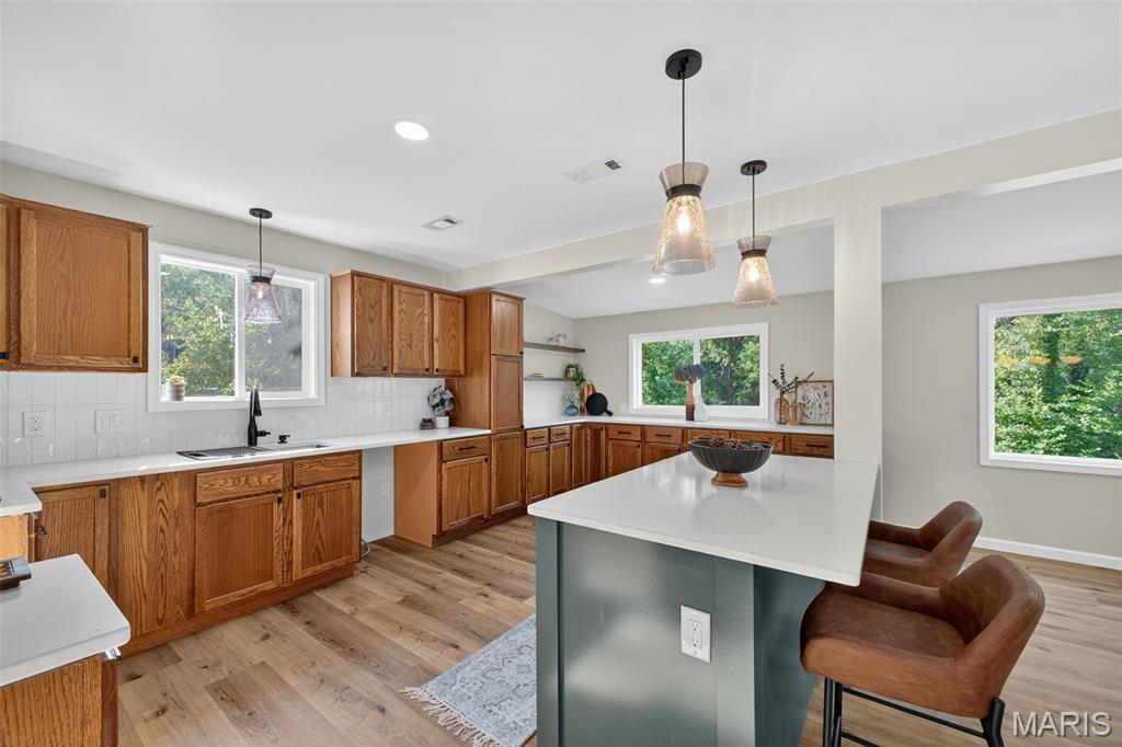 Back on market- No fault of seller An extraordinary opportunity to own a beautifully renovated 5-bedroom, 3-bath home tucked away in a quiet cul-de-sac near Bicentennial Park. Designed for both comfort and style, this home offers over 2,200 sq ft of living space plus a finished lower level, all enhanced by a flowing tri-level layout. At the heart of the home, the expansive kitchen boasts endless counter space, sleek quartz countertops, and a stylish backsplash — all updated in 2024 alongside LVP flooring, stained cabinets, and plush new carpet. Other major improvements include HVAC and siding (2025), windows, gutters, and electric panel (2024), plumbing and hot water heater (2023), and roof (2022), giving you peace of mind for years to come. The generous primary suite offers a private updated bath, while three additional bedrooms and a refreshed hall bath complete the main level. The lower level opens to a spacious recreation room, additional bedroom, full bath, laundry, and ample storage. Outside is a large deck overlooking the landscaped yard with a new retaining wall (2024) — the perfect setting for outdoor dining and relaxation. With its extensive list of recent upgrades and timeless design, this home blends modern convenience with enduring appeal.
