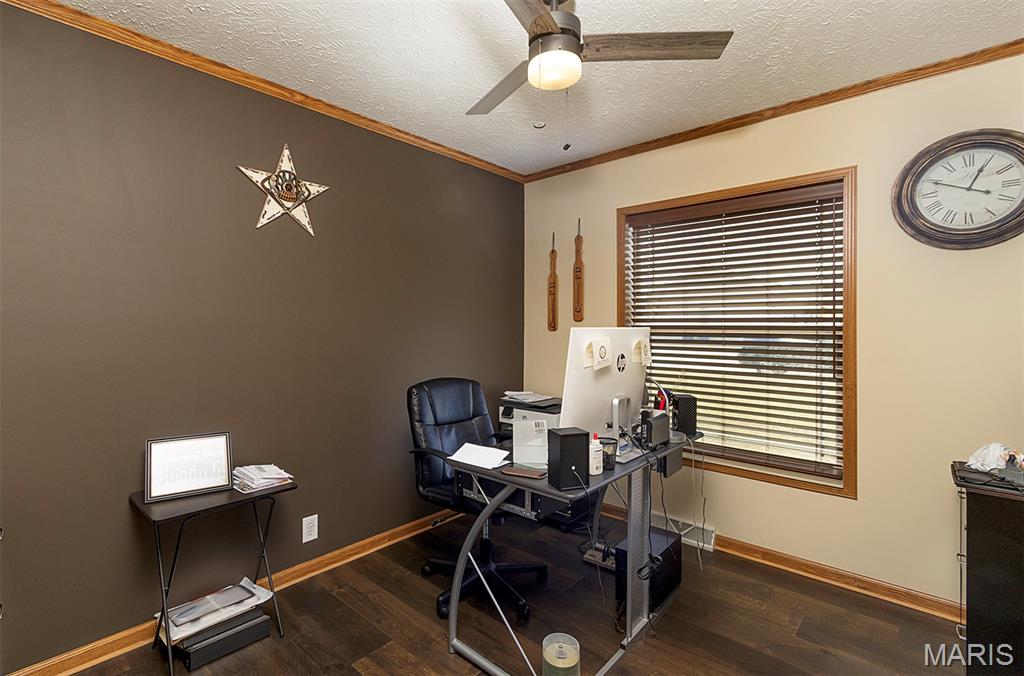 Welcome to this spacious 2,063 sq ft ranch-style home featuring three bedrooms and two full baths. The large master suite offers a private in-suite bath and a generous walk-in closet. Enjoy the wide open floor plan with an eat-in kitchen, complete with a center island and a custom entertaining bar steps away. The expansive living area is perfect for relaxing or hosting guests, and a dedicated home office adds flexibility. A 2-car garage and a well-appointed laundry room just off the kitchen add everyday convenience. Patio doors lead to a deck overlooking mature trees with no rear neighbors. Tucked away at the end of a dead-end road, this home offers privacy while still being conveniently close to shopping and dining. New roof installed in 2022.