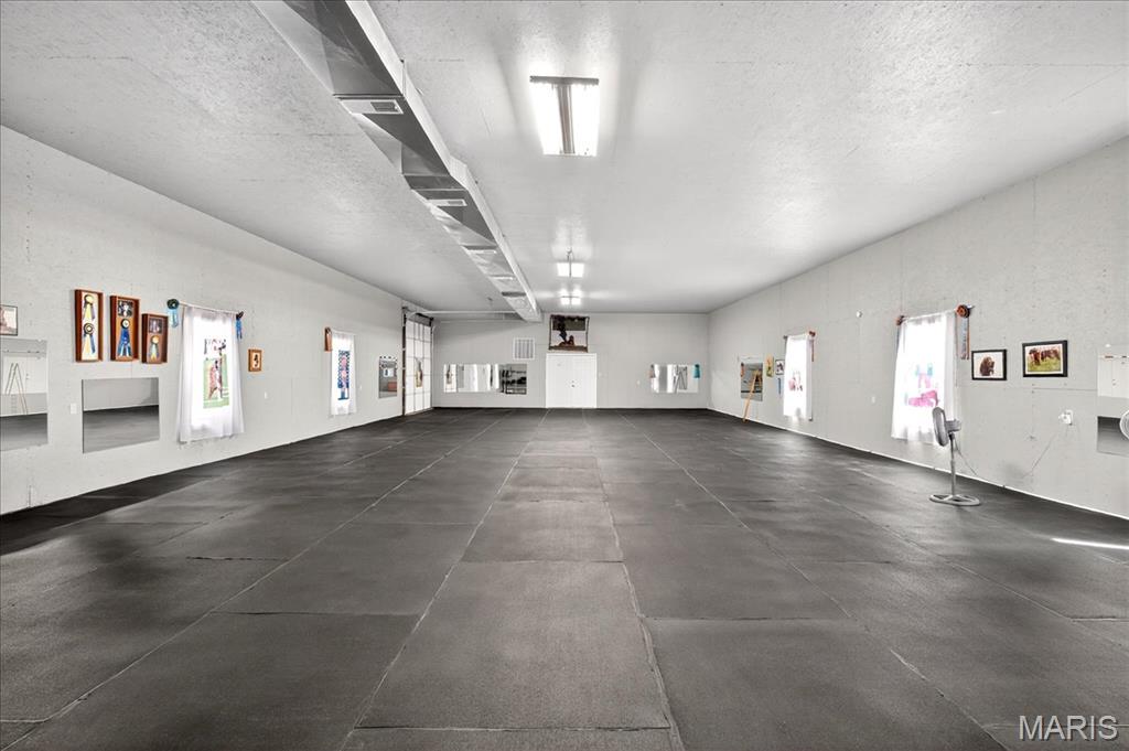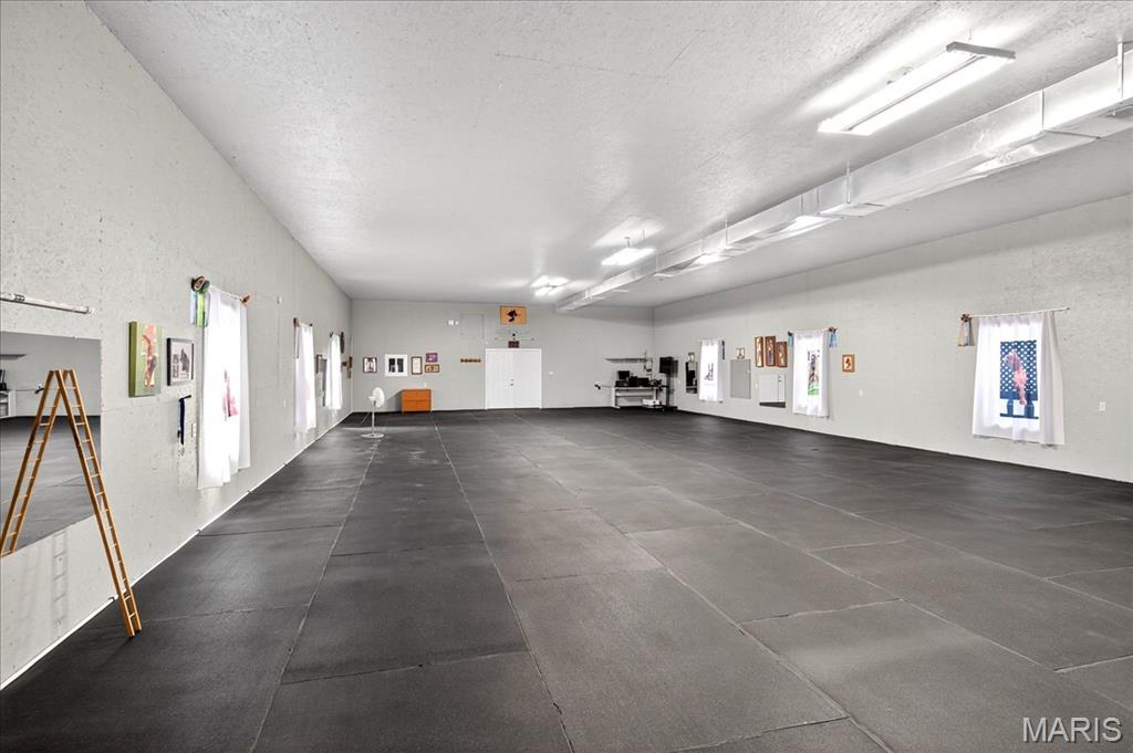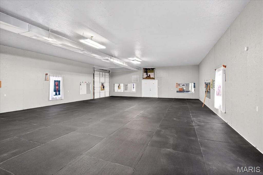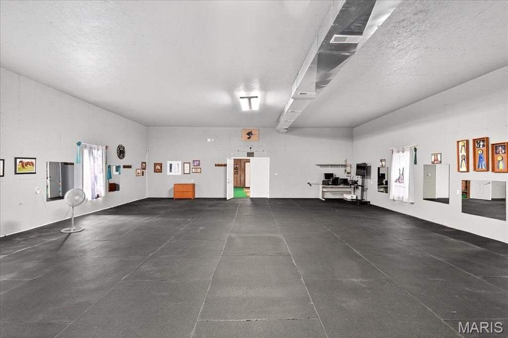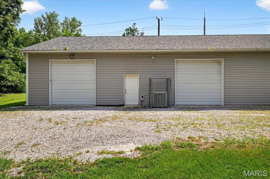 City compliant for residential! A unique opportunity to own what can be your living space along with 4000 sq ft for all of the things you are passionate about! Built in 2015, this well loved building was once a high level dog training facility where many ribbons and trophies were stored and beautiful dogs were trained. Built-in dog runs outside in the fenced side yard with turf was easily accessed from the kitchen area that also houses a dog grooming area. The front office area could easily be used as a studio apartment with living and bedroom or used as your new office space. There is also a convenient 3/4 tiled bathroom off of the living area. Easy-to-clean rubber flooring line the 70x34 training room that is also heated and cooled. This room offers tons of natural light, a large garage door at the end of the room, and high ceilings offers so many options in which to use the room. Could make a great storage area for your car collection, multiple pickle ball courts, gymnastics, kennel, dog training, or whatever you can imagine in this large space. Don't miss the attached back garage that could house even more cars/RVs, etc. Currently zoned residential, with the proper variance from the city, would have a commercial opportunity but limited to kennel/ag. Buyer to verify with the city for confirmation of what the space could be used for and size of building that is a different measurement than what owner has. Haydite Rd is owned privately. Under the flooring is a compacted rock foundation.