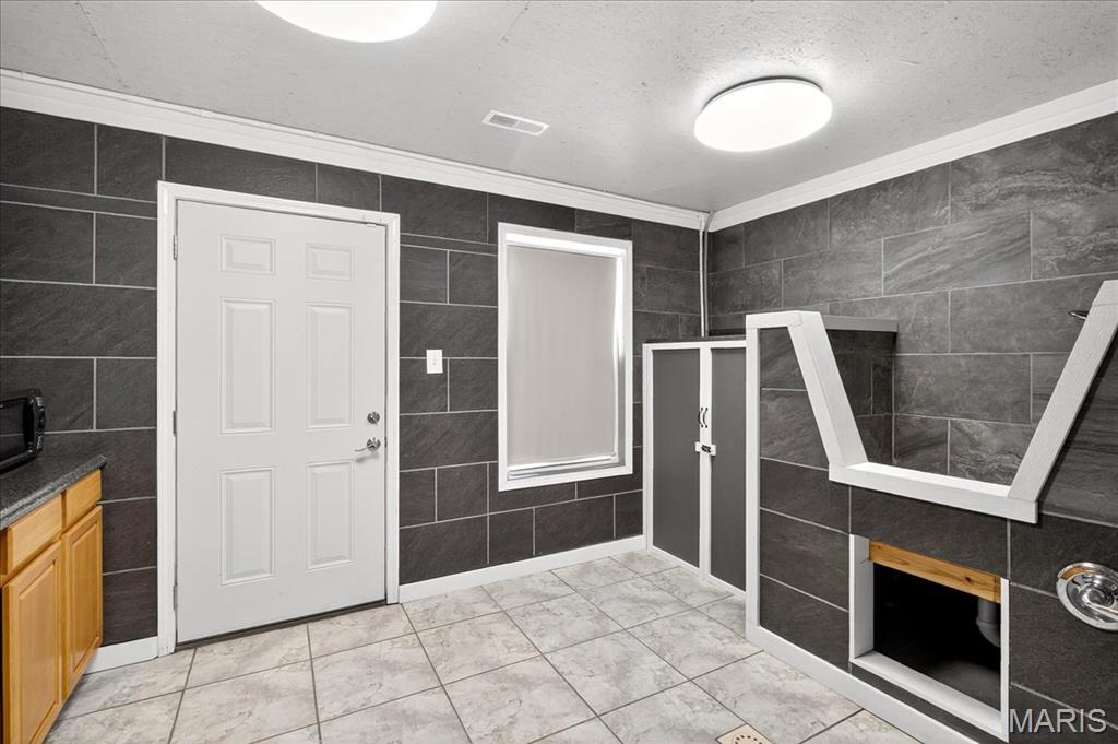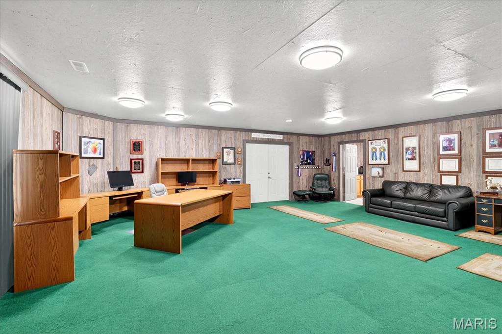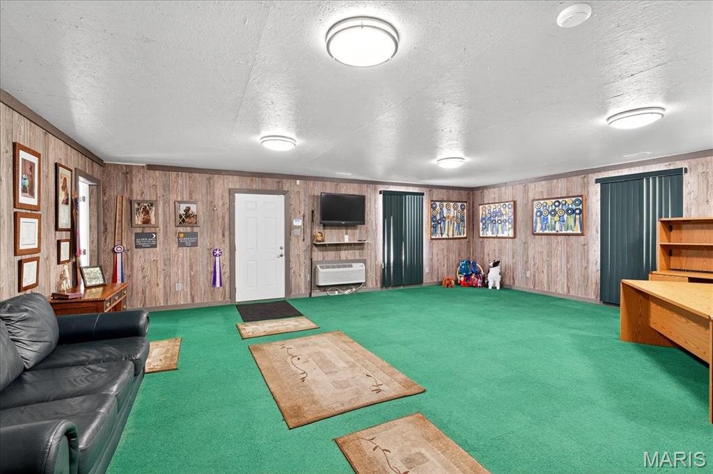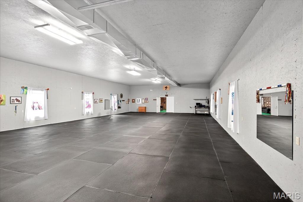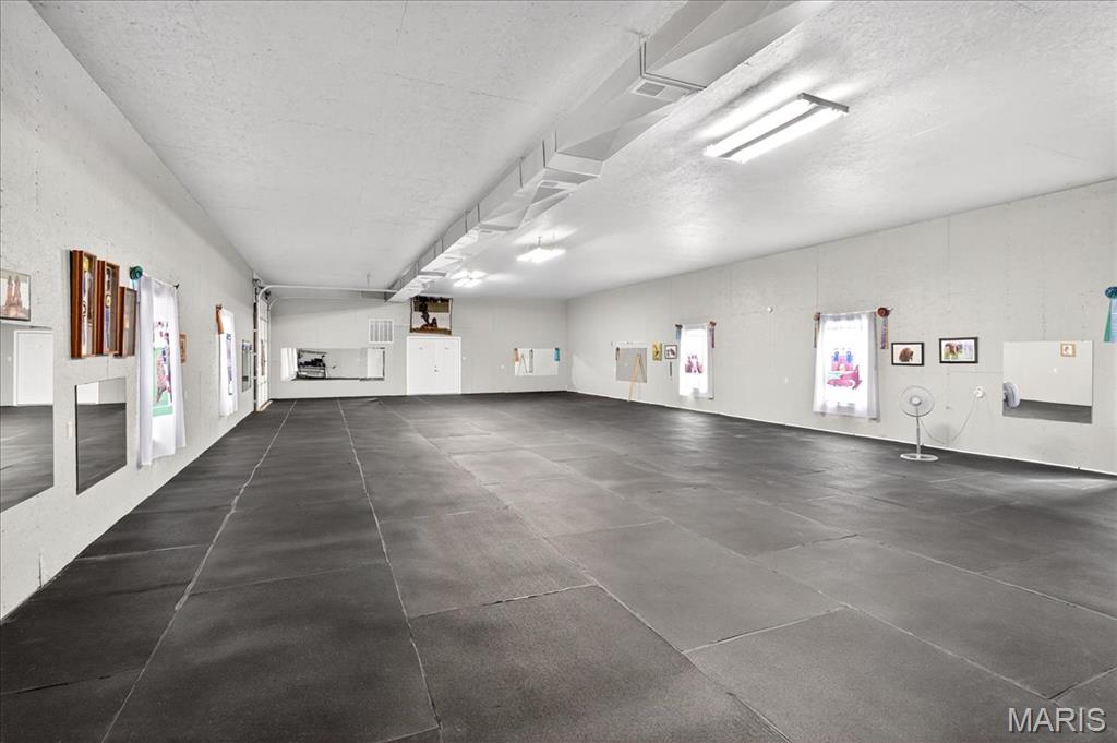 City compliant for residential! A unique opportunity to own what can be your living space along with 4000 sq ft for all of the things you are passionate about! Built in 2015, this well loved building was once a high level dog training facility where many ribbons and trophies were stored and beautiful dogs were trained. Built-in dog runs outside in the fenced side yard with turf was easily accessed from the kitchen area that also houses a dog grooming area. The front office area could easily be used as a studio apartment with living and bedroom or used as your new office space. There is also a convenient 3/4 tiled bathroom off of the living area. Easy-to-clean rubber flooring line the 70x34 training room that is also heated and cooled. This room offers tons of natural light, a large garage door at the end of the room, and high ceilings offers so many options in which to use the room. Could make a great storage area for your car collection, multiple pickle ball courts, gymnastics, kennel, dog training, or whatever you can imagine in this large space. Don't miss the attached back garage that could house even more cars/RVs, etc. Currently zoned residential, with the proper variance from the city, would have a commercial opportunity but limited to kennel/ag. Buyer to verify with the city for confirmation of what the space could be used for and size of building that is a different measurement than what owner has. Haydite Rd is owned privately. Under the flooring is a compacted rock foundation.