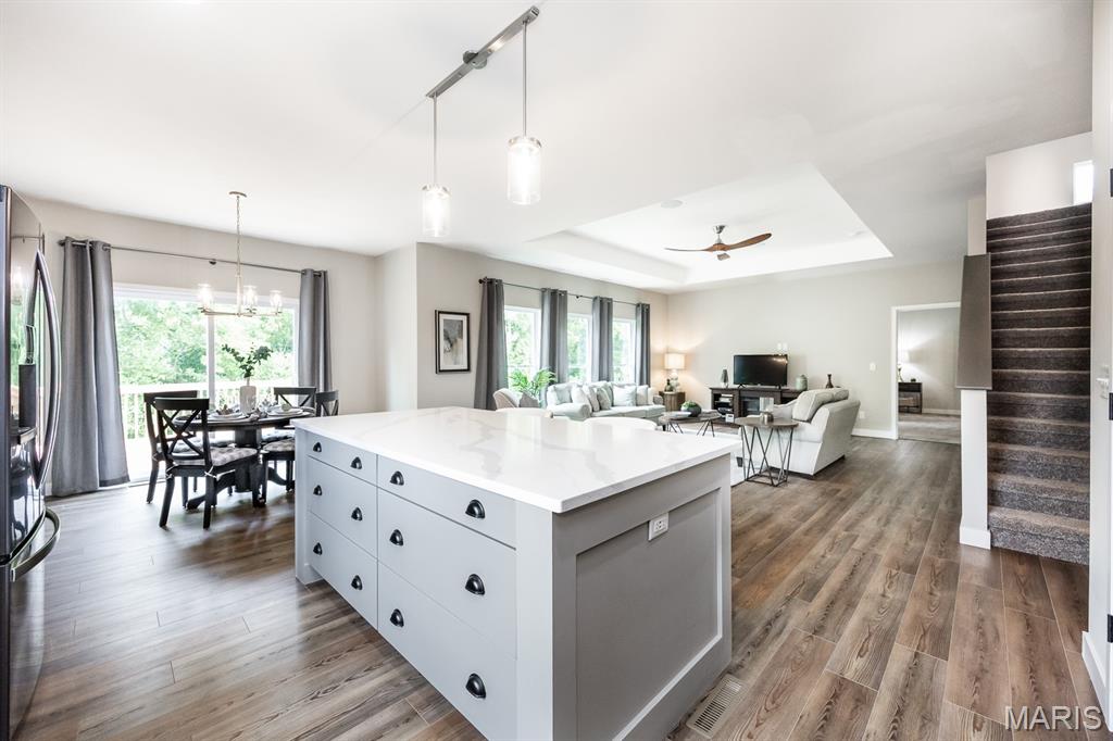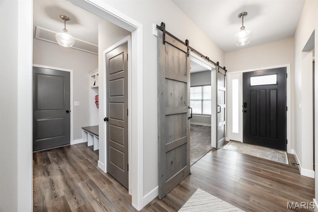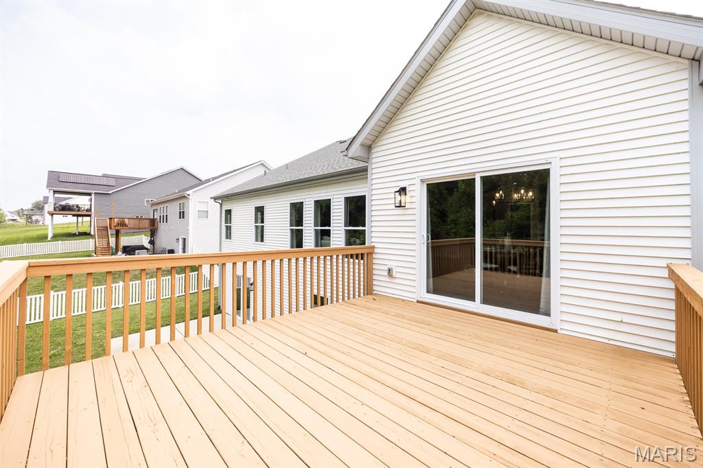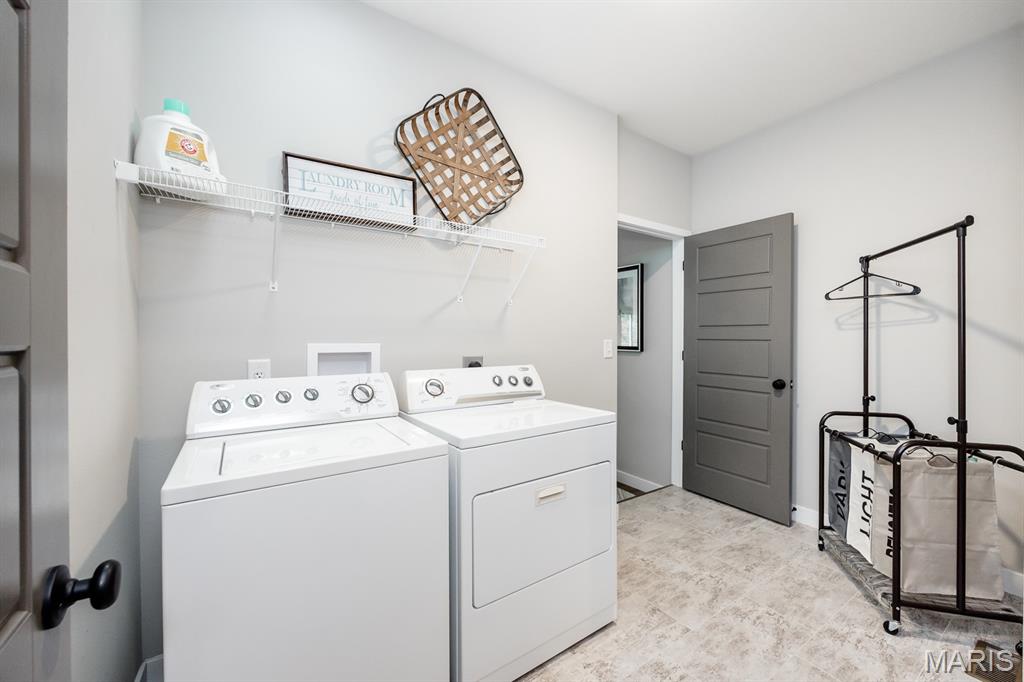 Model home for sale! Move-in ready and packed with upgrades, this 3 bed, 2 bath ranch in the Edwardsville School District offers 2,362 sq ft of living space, including a main-level flex room and an upstairs loft/bonus room for added versatility. The open layout features 2,007 sq ft on the main level, a spacious master suite with a tile shower, and a freshly updated kitchen with new countertops and tile backsplash. Built as a display, this home includes high-end finishes throughout, plus a huge walkout basement with 9’ pour, full bath rough-in, and plenty of storage or finishing potential. Sitting on a large corner lot that backs to trees, it provides privacy, beautiful views, and a prime location less than 10 minutes from SIUE.