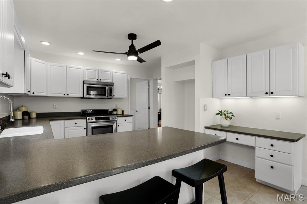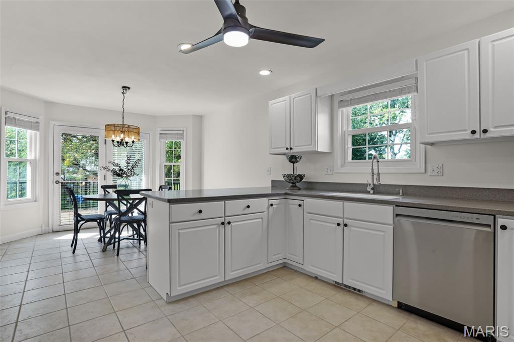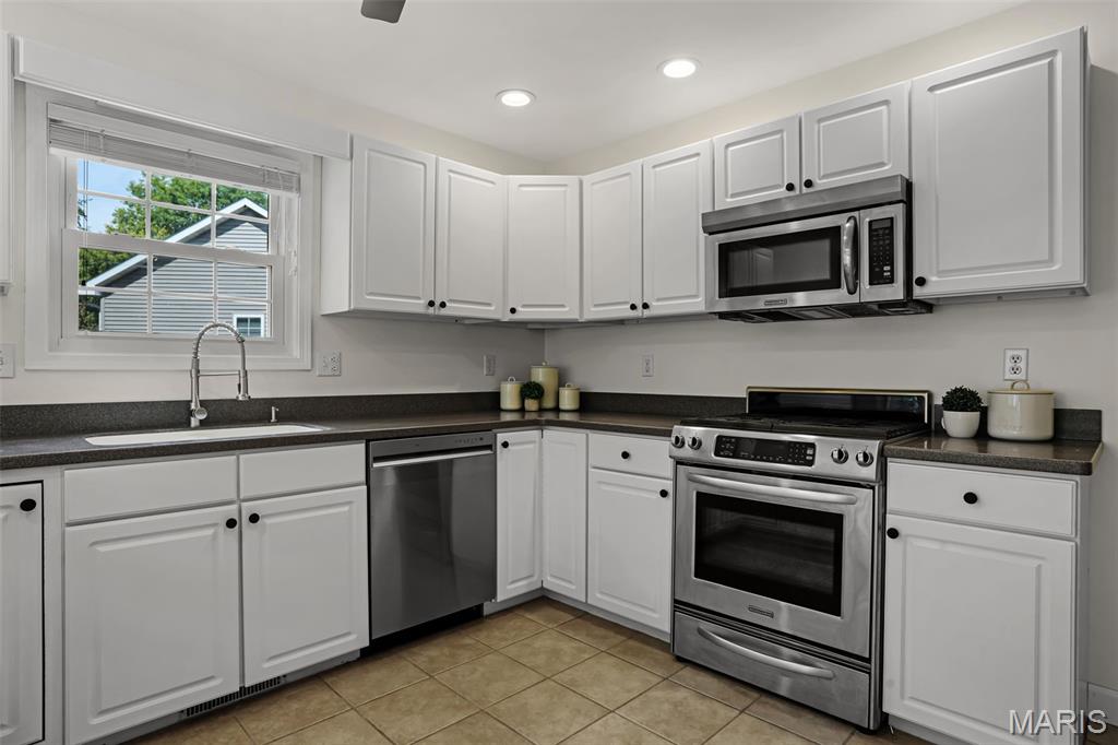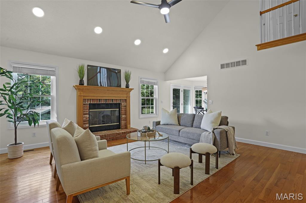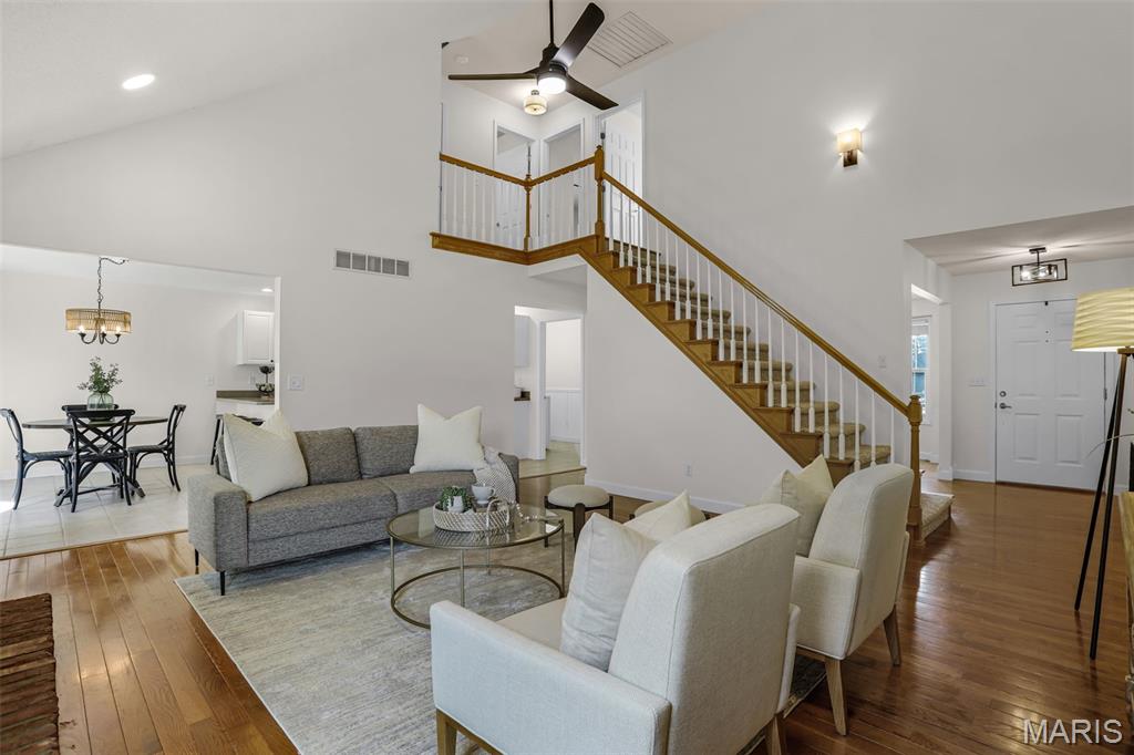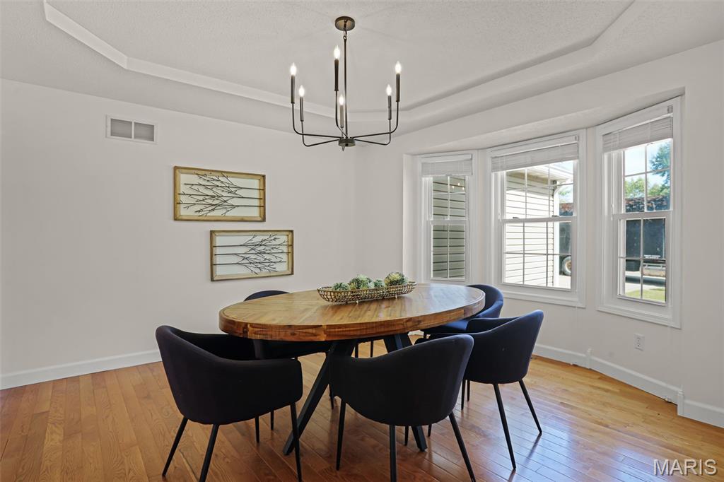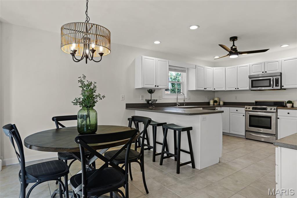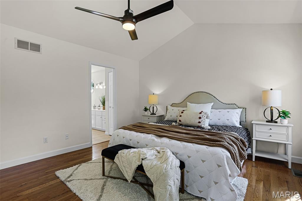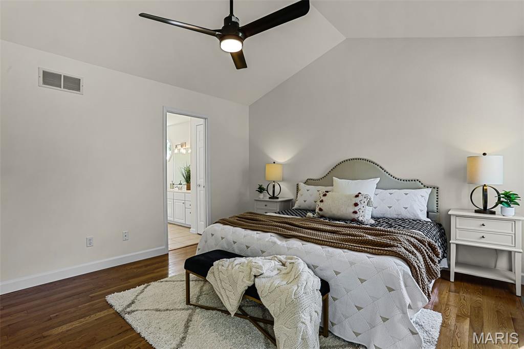 This beautifully updated home in the heart of Edwardsville shines with curb appeal, thanks to meticulous new landscaping. Step inside to a welcoming foyer with warm wood floors that flow into a spacious formal dining room accented with a tray ceiling. The soaring ceilings and sweeping open staircase set the tone in the living room, where a brick fireplace creates the perfect gathering spot. The living room opens to the eat-in kitchen, which boasts freshly painted white cabinets, abundant storage, a pantry, and access to the composite deck—ideal for entertaining or relaxing outdoors. A convenient laundry/drop zone just off the kitchen connects to the 2-car garage. The main-floor owner’s suite offers a gleaming ensuite retreat with dual sinks, an expansive vanity, a jetted tub, separate walk-in shower, and a generous walk-in closet. Upstairs, you’ll find three additional bedrooms and a full bath. The finished lower level is filled with natural light and versatile space for a rec room, games, or movie nights—complete with a fun alcove tucked under the stairs. A nonconforming 5th bedroom with walk-in closet makes an excellent home office, gym, or game/playroom. A full bath and plenty of storage round out the lower level. Step outside to enjoy the spacious yard with mature trees and a charming pergola perfect for gatherings. Located just a short walk to shopping and dining, this wonderful neighborhood features wide streets and beautifully maintained homes.