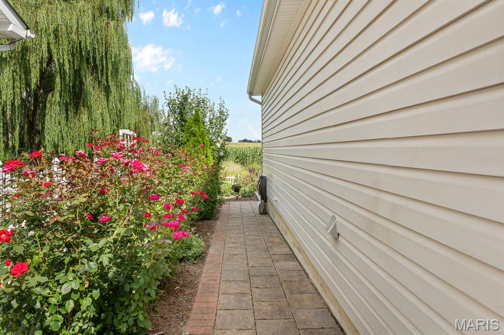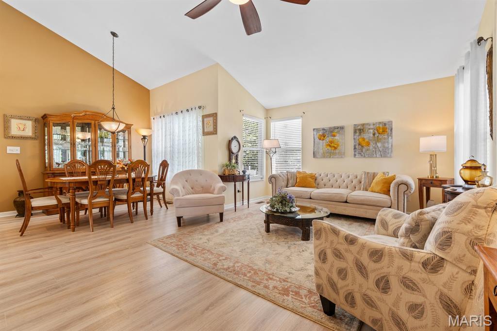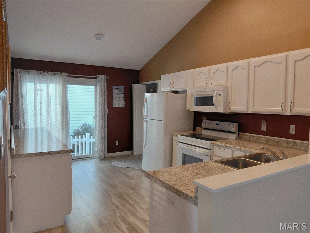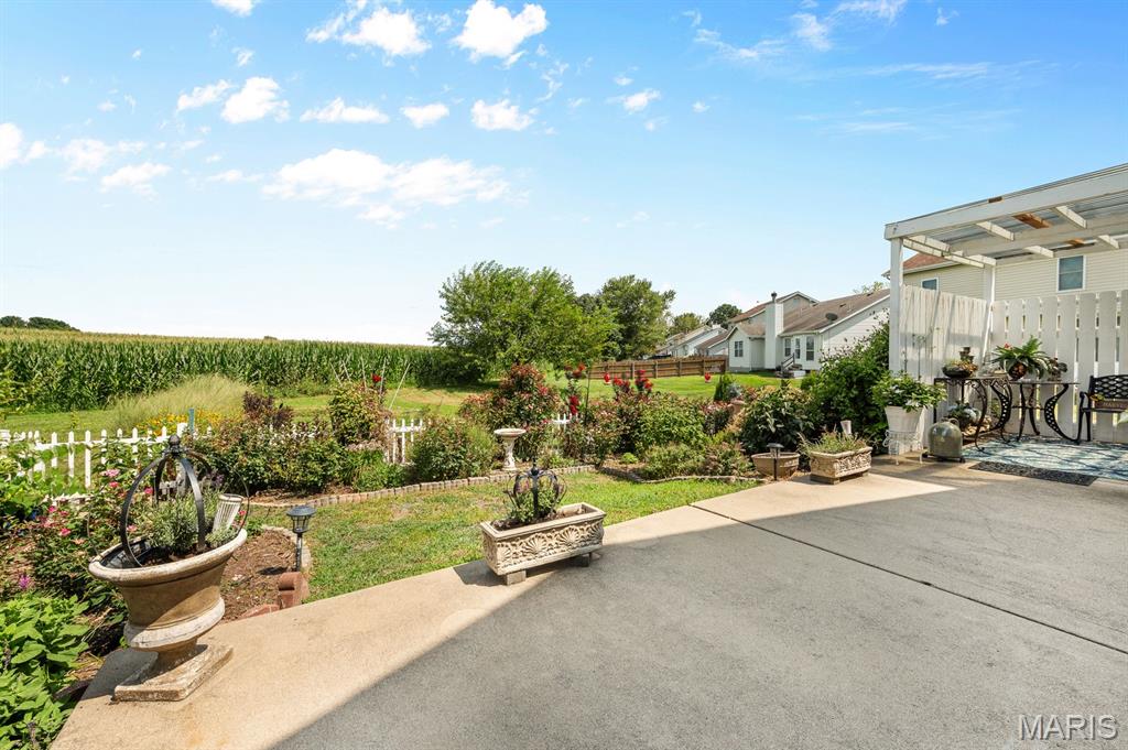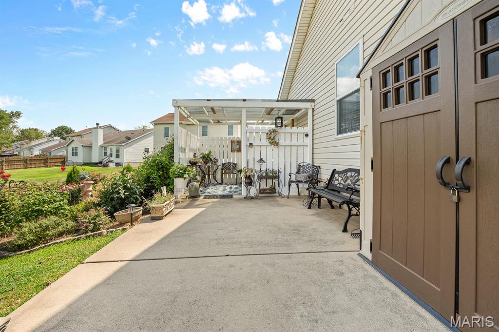 Welcome to this charming 3 bedroom, 3 bathroom home spanning over 2,000 square feet. This residence offers a blend of comfort, style, and functionality. Step inside to be greeted by soaring vaulted ceilings that grace the open-concept living areas filling the space with natural light and modern living. The kitchen with laundry closet seamlessly connects to both dining and living rooms creating an ideal setting for entertaining and gatherings. The primary suite serves as a retreat with an en-suite bathroom. The additional two bedrooms provide versatile space for family or guests. The finished lower level adds significant value and is complete with a flex room, another bathroom, and a cozy family room with built-in shelving. Tucked away under the basement stairs behind the bookshelf, you'll find a unique feature: a safe room. The dry bar is a perfect addition for game nights or unwinding after a long day. Step outside to your private backyard where the covered patio overlooks a meticulously maintained flower garden. This tranquil space offers peaceful mornings with a cup of coffee or festive summer barbecues. Neighborhood residents enjoy exclusive access to a neighborhood pool and scenic walking trail promoting an active and connected community atmosphere. Close to SAFB, shopping, restaurants and within 30 minutes of downtown St Louis. Preapproved buyers please and buyers to verify all information prior to making an offer.