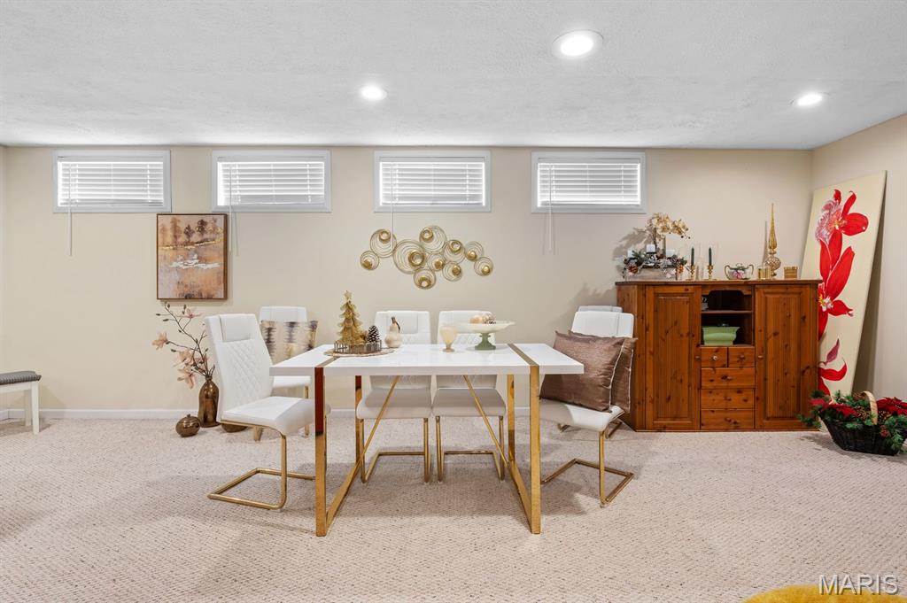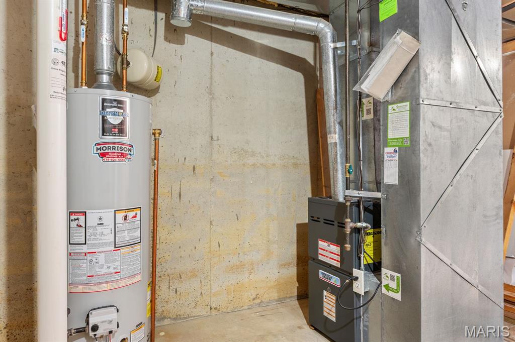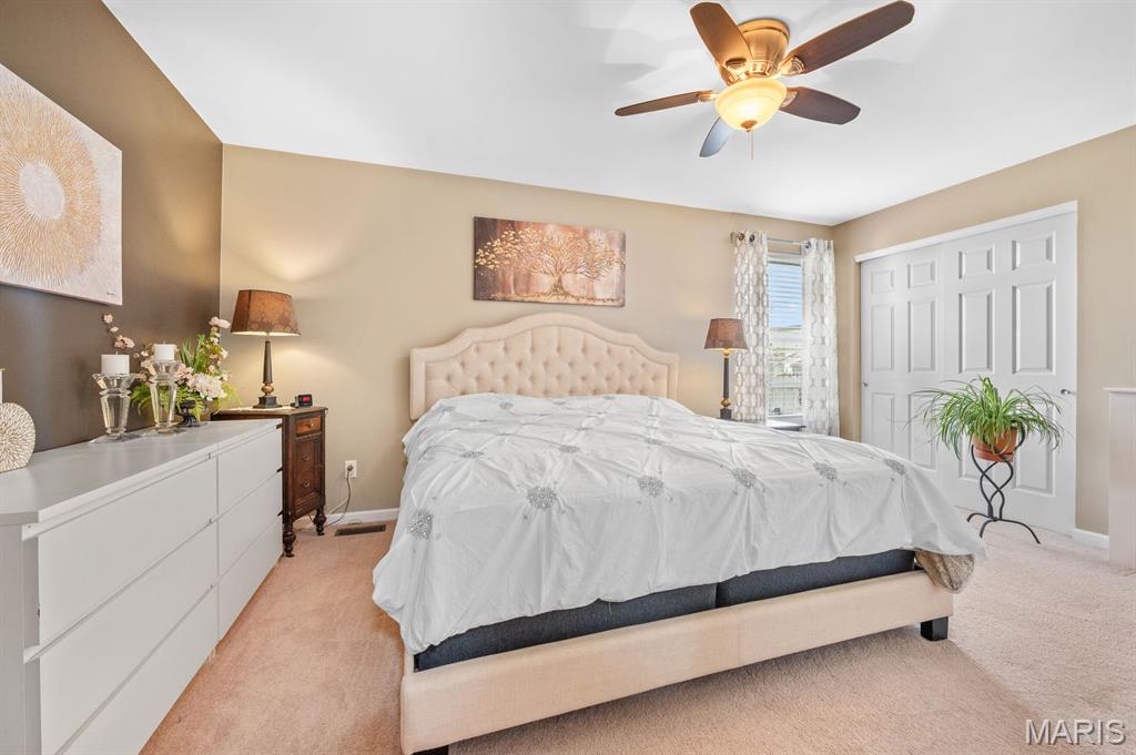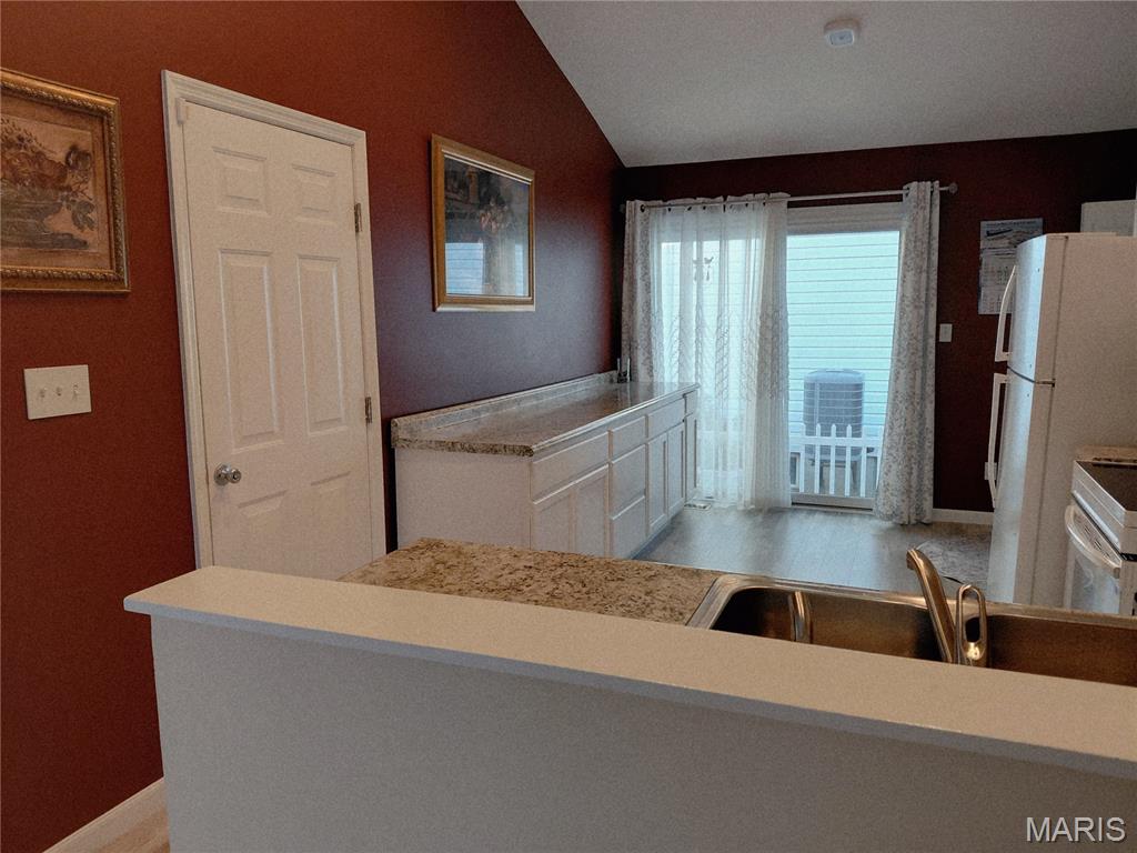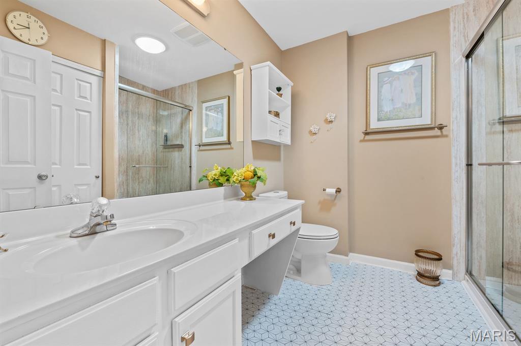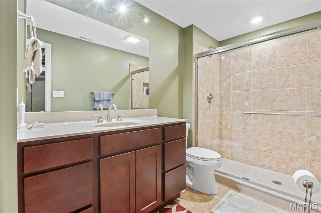 Welcome to this charming 3 bedroom, 3 bathroom home spanning over 2,000 square feet. This residence offers a blend of comfort, style, and functionality. Step inside to be greeted by soaring vaulted ceilings that grace the open-concept living areas filling the space with natural light and modern living. The kitchen with laundry closet seamlessly connects to both dining and living rooms creating an ideal setting for entertaining and gatherings. The primary suite serves as a retreat with an en-suite bathroom. The additional two bedrooms provide versatile space for family or guests. The finished lower level adds significant value and is complete with a flex room, another bathroom, and a cozy family room with built-in shelving. Tucked away under the basement stairs behind the bookshelf, you'll find a unique feature: a safe room. The dry bar is a perfect addition for game nights or unwinding after a long day. Step outside to your private backyard where the covered patio overlooks a meticulously maintained flower garden. This tranquil space offers peaceful mornings with a cup of coffee or festive summer barbecues. Neighborhood residents enjoy exclusive access to a neighborhood pool and scenic walking trail promoting an active and connected community atmosphere. Close to SAFB, shopping, restaurants and within 30 minutes of downtown St Louis. Preapproved buyers please and buyers to verify all information prior to making an offer.