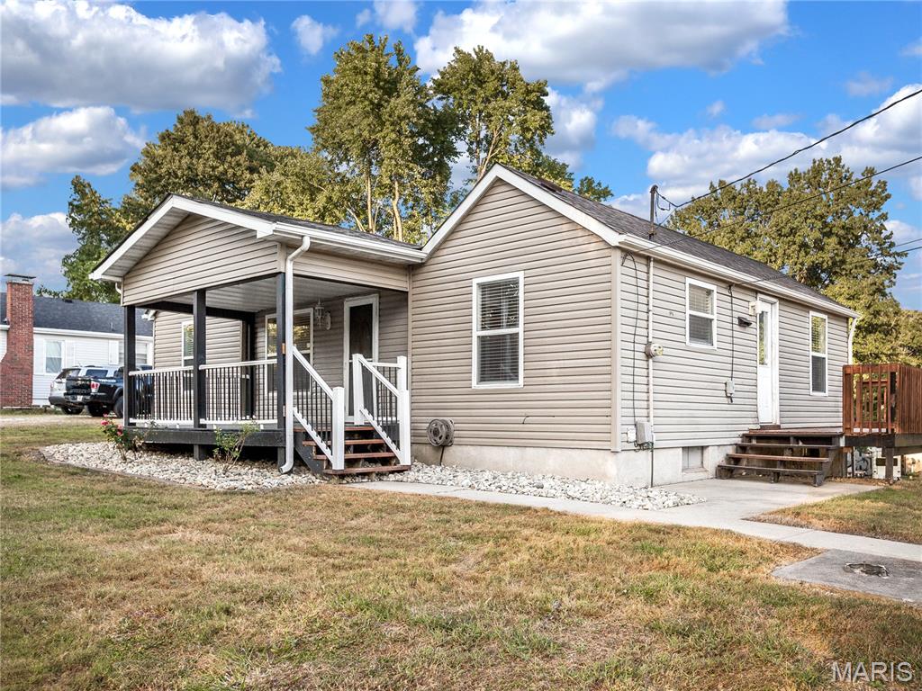 Charming 2-bedroom, 2-bath home situated on over a half-acre lot! Enjoy the inviting large covered front porch, a spacious kitchen with separate dining area, and generously sized bedrooms. The lower level features a comfortable family room and an oversized laundry area. Walk out basement. Newly poured concrete patio. Conveniently located on the outskirts of town, in Collinsville Township offering a peaceful setting while still being just minutes from everything you need. 48 hour response time on all and any offers please.