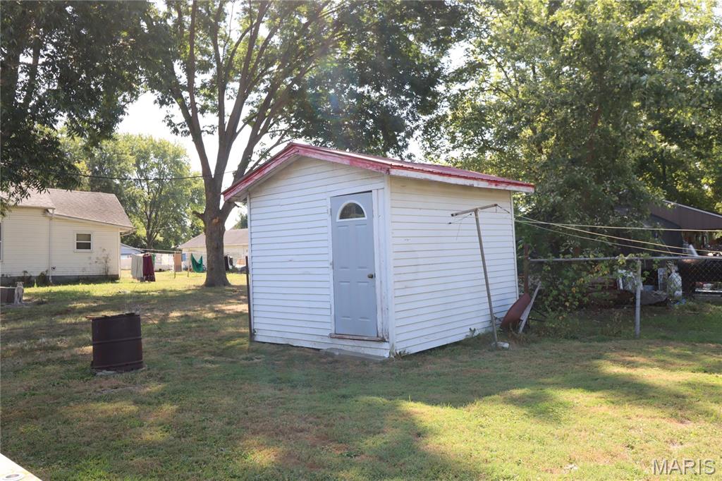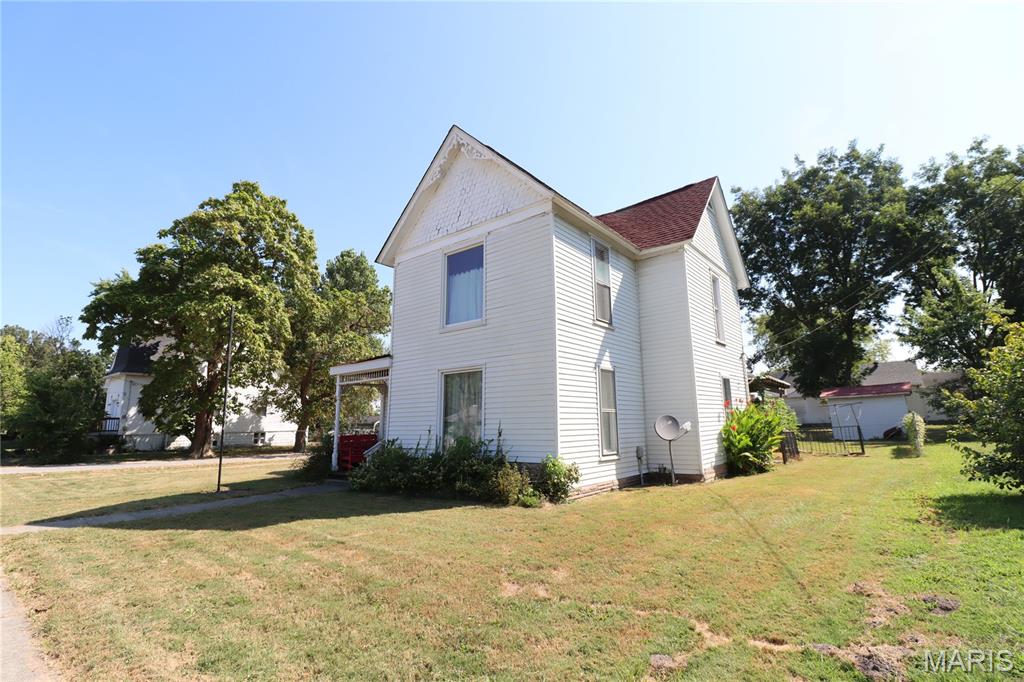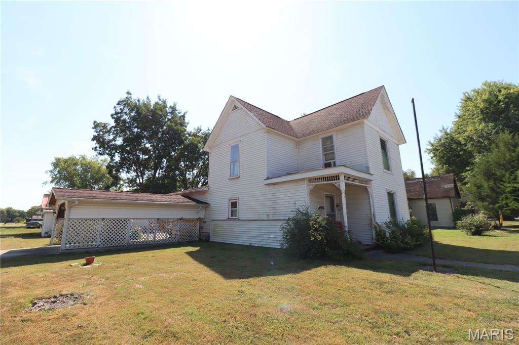 Beautiful Older home with great potential. This four-bedroom one bath home sits on a large corner lot with a detached garage and storage shed. Main level has kitchen, dining room, living room, bedroom, bath & laundry/mud room. Upstairs has three large bedrooms. Cozy front porch and large back patio area. This home will be sold as is. Seller to make no repairs.