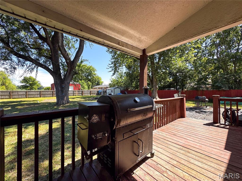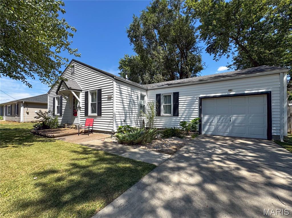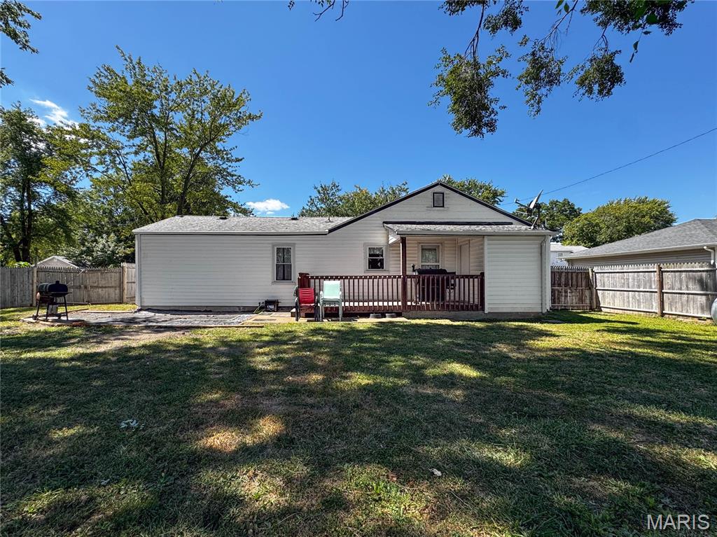 Welcome to 5252 Kaskaskia in the village of Burksville—a peaceful community just outside of Waterloo city limits and a quick 5 minutes from Waterloo High School. This charming 2-bedroom, 1-bath ranch offers the perfect blend of comfort, convenience, and small-town charm. Whether you're starting out or settling down, this cozy retreat is ready to welcome you. Step inside from the covered front porch into a spacious living room. The eat-in kitchen features oak cabinets, ceramic tile flooring, built-in pantry, and all major appliances—including a dishwasher. Two comfortable bedrooms and an updated central bath with tub/shower combo make daily living easy. The adjacent laundry/dining room offers even more possibilities—convert it into a office, guest room, or whatever space to suit your lifestyle. This home has been completely updated. Outside, the full privacy fenced backyard is a private haven with mature trees, a storage shed with attached kennel, and plenty of room to play, garden, or relax. The large back deck is the perfect spot to sip your favorite seasonal drink—did someone say pumpkin latte?—while enjoying crisp fall air and peaceful surroundings. Invite your friends and build a fire. It’s a space that invites you to slow down, breathe deep, and feel at home. The single-car attached garage makes errands easy, rain or shine. Wal down to Burksville’s beloved restaurant and entertainment center. With room to grow and space to breathe, this home is more than a starter—it’s a place to build your future, create lasting memories, and truly make it your own. Cheaper than rent!