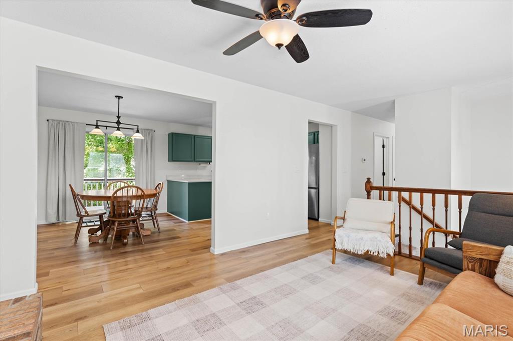 Wonderful 4 bedroom/3 bathroom home in O'Fallon High School District that has been updated throughout. In the past 3 years this home has been updated with new flooring and paint throughout as well as new windows. The eat-in kitchen is bright and spacious. It features paired cabinets, new quartz countertops, new appliances, and new lighting. It also features a pantry and breakfast island. The acting area opens to the deck over looking the private backyard. The living room has a brick gas fireplace and opens to the kitchen. The primary has two closets and a full bath. Two additional guest bedrooms and updated hall bath complete the upper level. The lower has another great family room and second large primary suite. The laundry room is also in the lower level. An oversized garage and large flat backyard complete this wonderful home. Additional Features: New toilets in every bathroom, Water Heater (2022), Roof (2025) Some new siding (2025), New Outlets (2022)