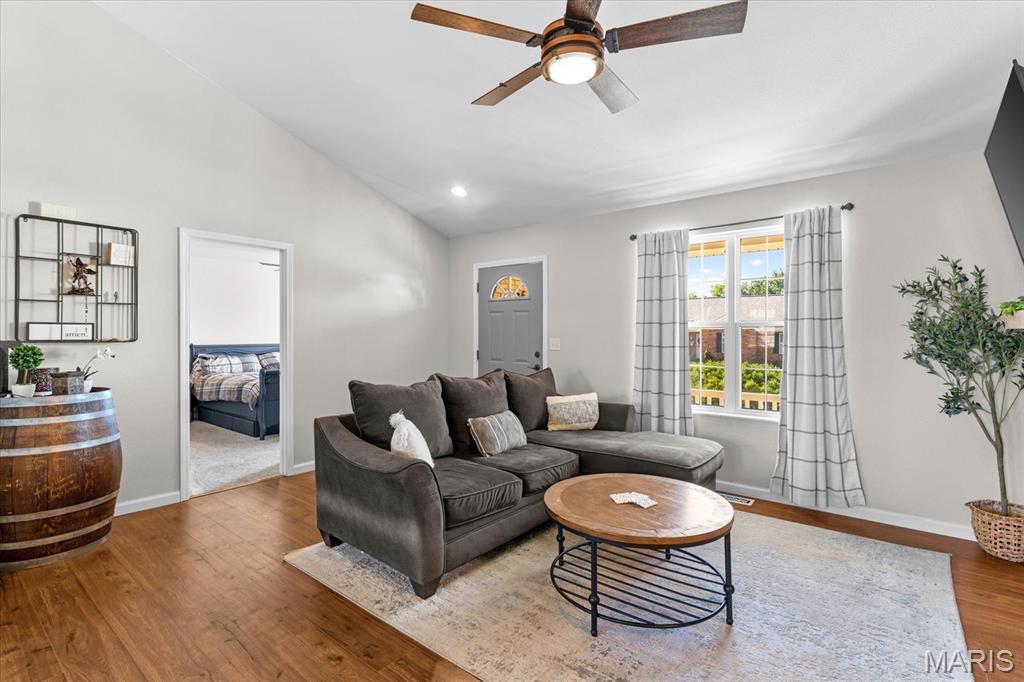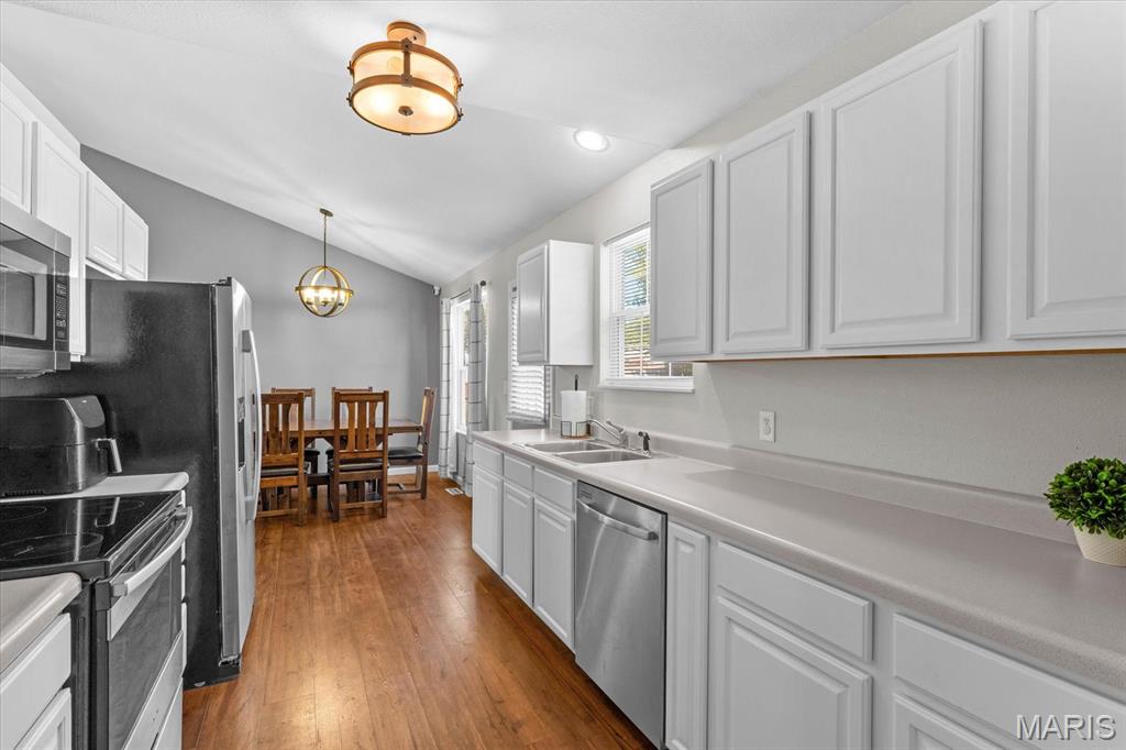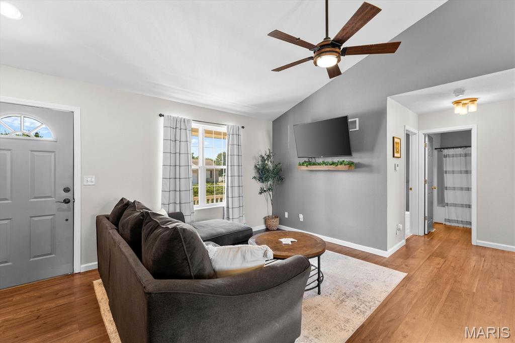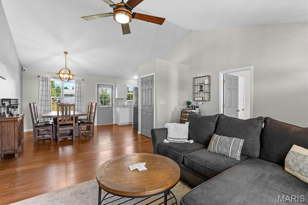 Welcome home to this beautifully updated 3 bedrooms, 2 bath, property in Waterloo! Step inside to find an inviting open floor plan with vaulted ceilings in the living room, updated flooring, and a bright kitchen featuring a breakfast area and newer stainless steel appliances. The covered front porch is perfect for relaxing, while the oversized two-car attached garage offers ample space for vehicles and storage. Enjoy a large, flat backyard ideal for entertaining, pets, or play. Main floor laundry adds convenience, and the unfinished basement with bathroom rough-in provides the perfect opportunity to expand your living space. A brand-new roof (2024) gives peace of mind. This move-in ready home checks all the boxes—updated style, functional space, and a fantastic yard—all in a great Waterloo location! Showings will begin at the open house, Sept. 13, 11-1pm