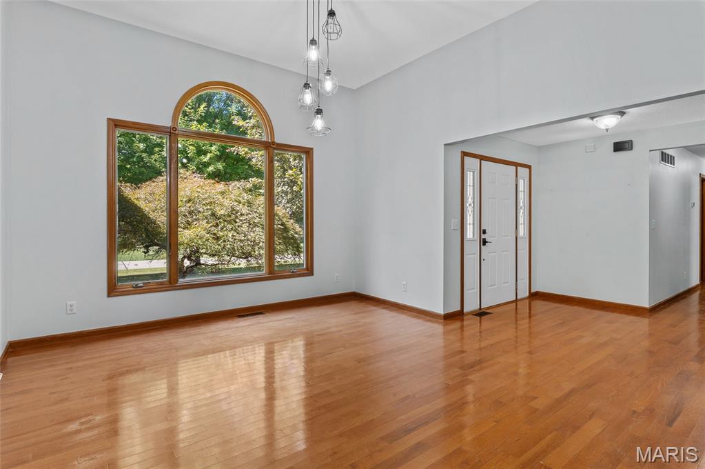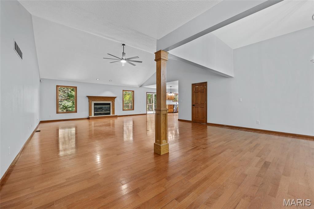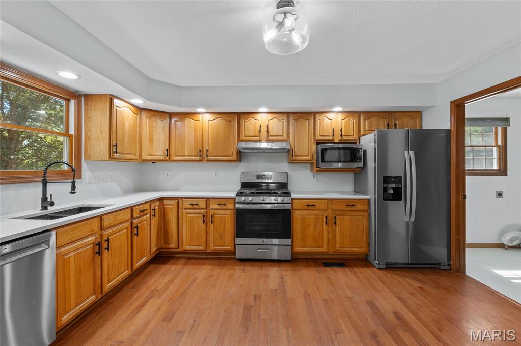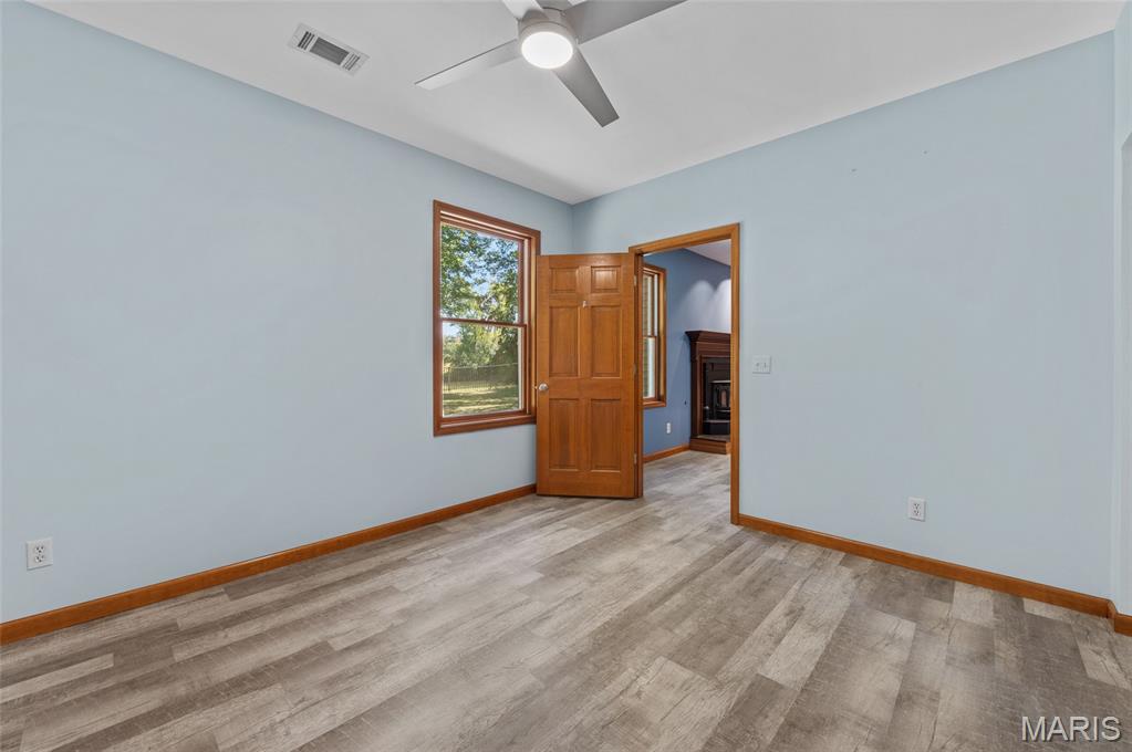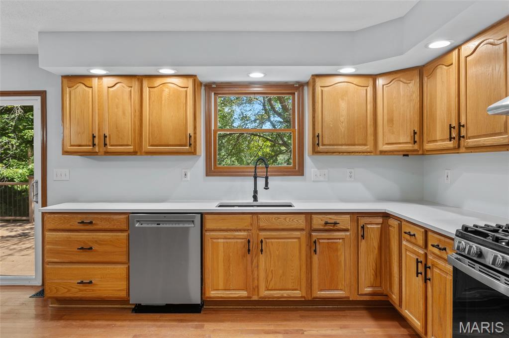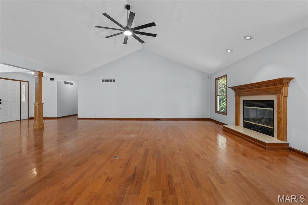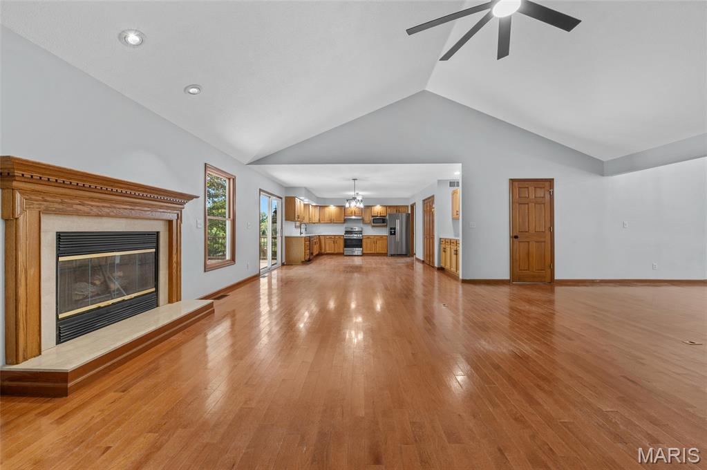 Step into comfort and style with this stunning, recently updated ranch home, offering over 3,400 sq ft of finished living space. Situated on a picturesque 1.33-acre lot, the property features a fenced backyard and access to a serene shared pond. Inside, you're welcomed by a spacious great room with hardwood floors, seamlessly connecting the living room (with a woodburning fireplace), dining area, and kitchen. The kitchen has new quartz countertops, brand-new appliances, a large pantry, and access to a composite deck that overlooks the peaceful backyard. The bedrooms have new carpet, and the primary bath has been beautifully remodeled with a walk-in shower, soaking tub, and a walk-in closet. The hall bath has also been updated. The finished lower level expands your living options with a large family room, wet bar with a full-sized refrigerator, gas fireplace, and a custom built-in entertainment center. A new sliding patio door leads to a lower patio and the backyard. This level also includes a 4th bedroom, full bath, and a huge storage area with double-door access—perfect for large items or workshop space. Additional features include: House security cameras (included), Paid-off solar panels, 16 SEER 2-stage heat pump. Extra attic insulation for enhanced energy efficiency. This home is move-in ready and thoughtfully upgraded to offer the best of comfort, energy savings, and modern living—all in a peaceful, scenic setting. Don’t miss the opportunity to make it yours!