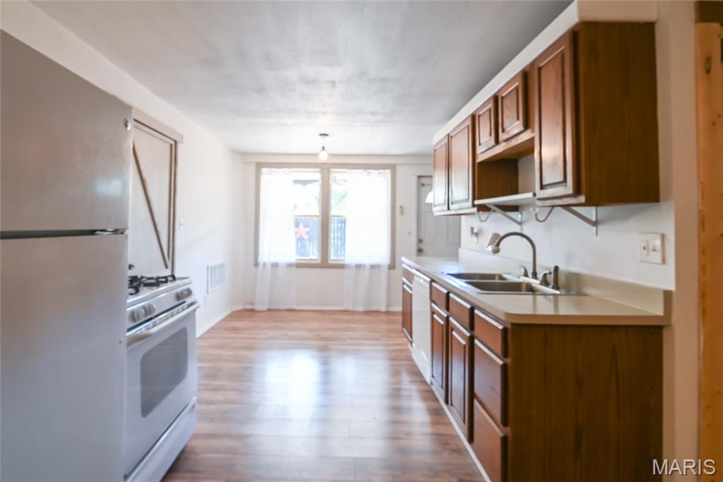 ( home is being sold as is where is ) Home has passed City occupancy. This house is being sold with a second parcel 13-2-21-33-17-304-026 ( home ) 13-2-21-33-17-304-025 ( Lot ) Nestled at the end of a quiet street, this charming 2-bedroom, 1-bathroom home is move-in ready and full of character inside and out. The interior features newer laminate hardwood flooring throughout both the upper and lower levels. A cozy wood-burning stove with a stone hearth creates a warm, inviting nook on the lower level. Enjoy your mornings in the breakfast area, which opens directly onto a spacious patio with a covered section—perfect for entertaining. The patio includes a second wood-burning stove, a basketball hoop, and is fully enclosed by fencing for privacy. Beyond the fence lies a sprawling yard filled with mature trees and endless potential. Conveniently located just 15 minutes (approx. 12 miles) from downtown St. Louis, this home is also within 3 miles of all local public schools and close to public transportation options, making commuting and daily errands a breeze. Home is also within walking distance to several Collinsville classics - Kruta Bakery, Horseshoe Restaurant, McDill's Irish Pub, and Dairy Freeze.