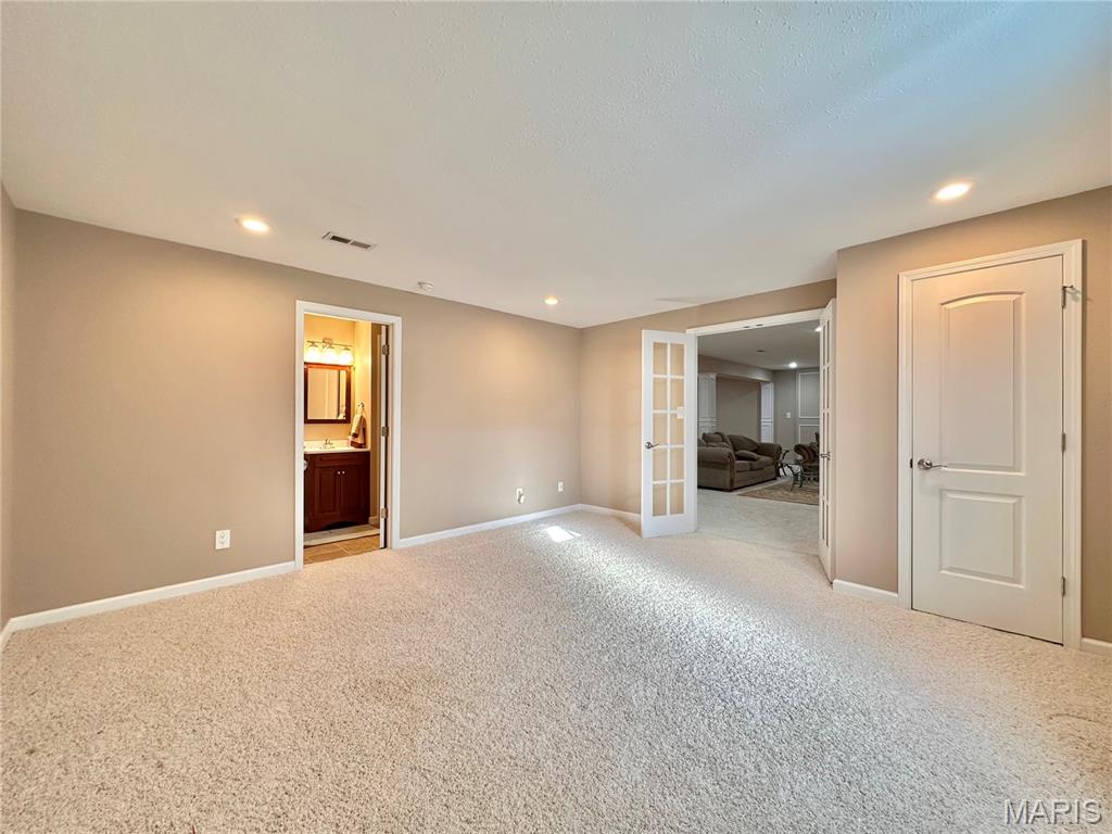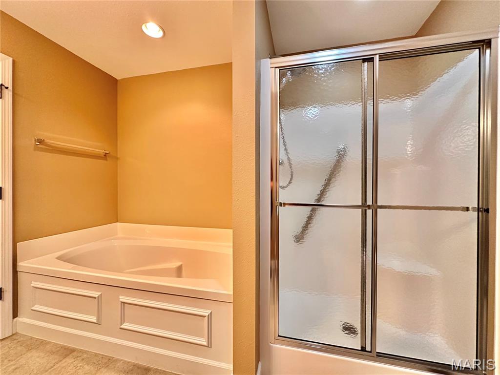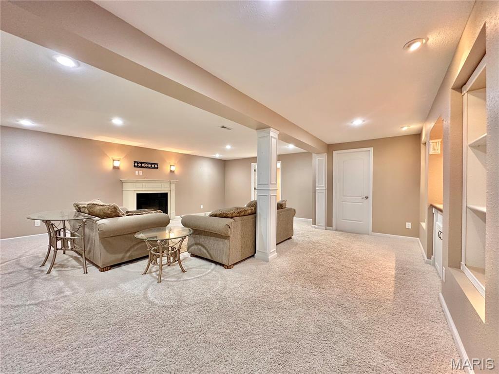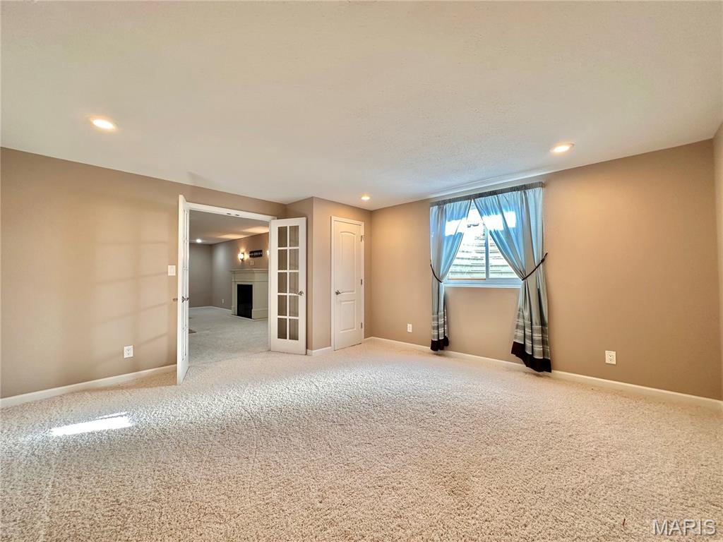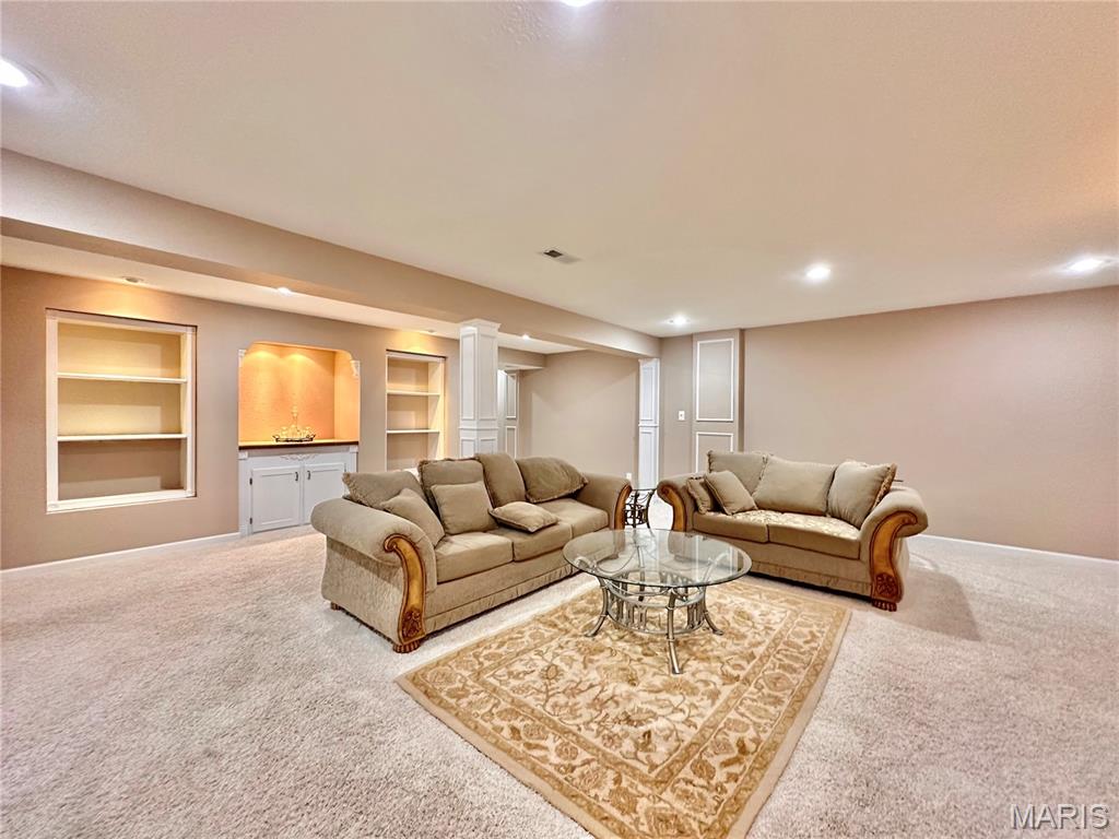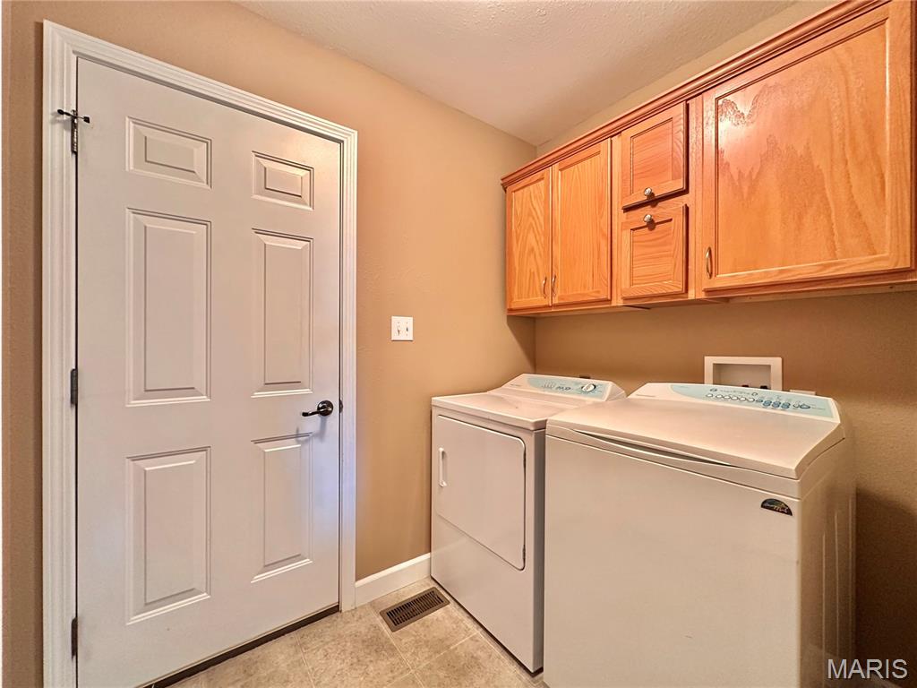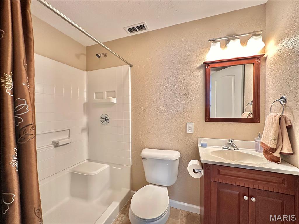 Welcome home to this spacious 3 bedroom, 3 bathroom villa nestled in a quiet residential neighborhood with no monthly HOA fees. Step inside to find vaulted ceilings and an open-concept layout featuring a living room with a cozy gas fireplace, formal dining room and eat-in kitchen. The kitchen is equipped with custom staggered cabinets with underlighting, granite countertops, stainless steel appliance and a dining area with sliding doors leading to the covered patio overlooking a private backyard. The main-level primary suite offers a walk-in closet and a luxurious ensuite bathroom with a double vanity, soaking tub and 4-foot shower. Convenient main-level laundry and the washer and dryer can stay! An attached 2-car garage adds extra convenience. The finished lower level expands your living space with a family room, built-in dry bar, custom lit shelving, an electric fireplace and the third bedroom with its own full bathroom. A large storage room and water backup sump pump system provide peace of mind and ample storage options. All appliances stay, making this home move-in ready! Home has passed occupancy. Close to SAFB, Interstate access, Mid America Airport, shopping and more!