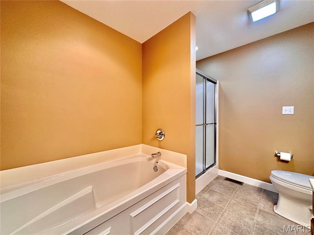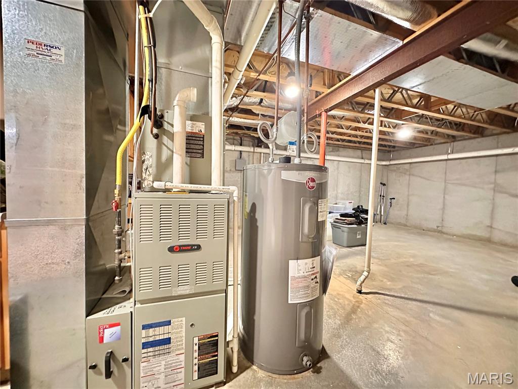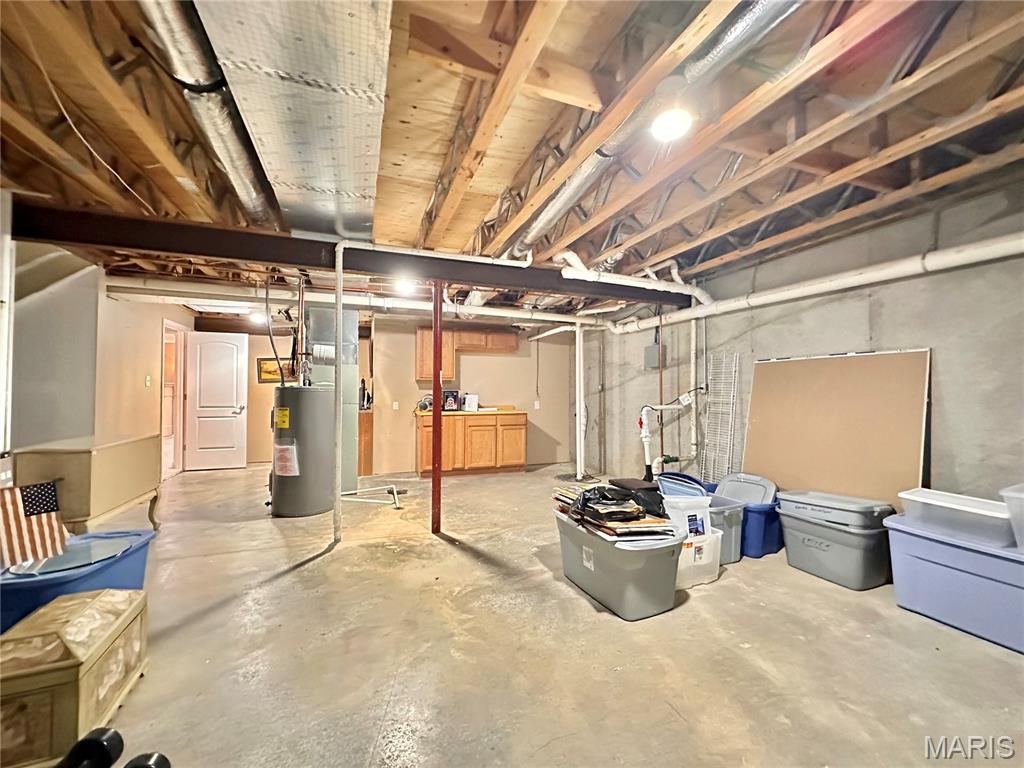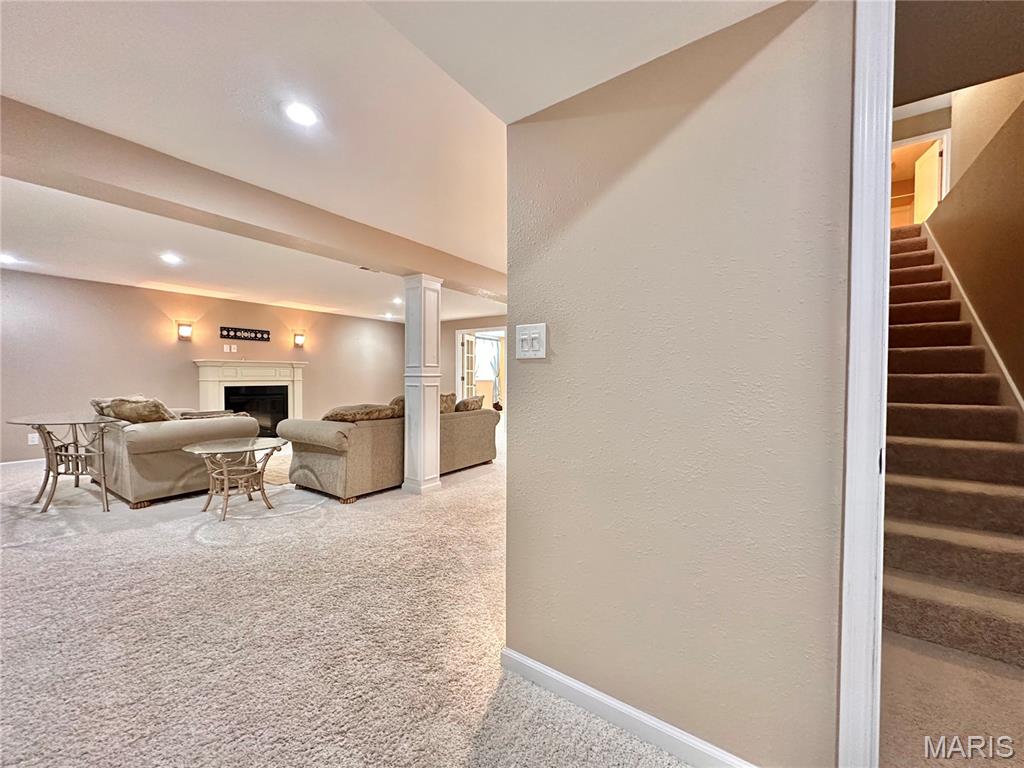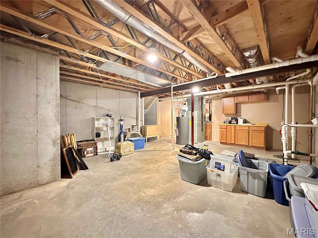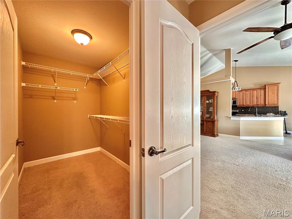 Welcome home to this spacious 3 bedroom, 3 bathroom villa nestled in a quiet residential neighborhood with no monthly HOA fees. Step inside to find vaulted ceilings and an open-concept layout featuring a living room with a cozy gas fireplace, formal dining room and eat-in kitchen. The kitchen is equipped with custom staggered cabinets with underlighting, granite countertops, stainless steel appliance and a dining area with sliding doors leading to the covered patio overlooking a private backyard. The main-level primary suite offers a walk-in closet and a luxurious ensuite bathroom with a double vanity, soaking tub and 4-foot shower. Convenient main-level laundry and the washer and dryer can stay! An attached 2-car garage adds extra convenience. The finished lower level expands your living space with a family room, built-in dry bar, custom lit shelving, an electric fireplace and the third bedroom with its own full bathroom. A large storage room and water backup sump pump system provide peace of mind and ample storage options. All appliances stay, making this home move-in ready! Home has passed occupancy. Close to SAFB, Interstate access, Mid America Airport, shopping and more!