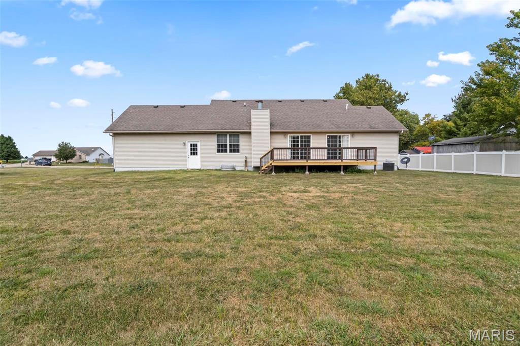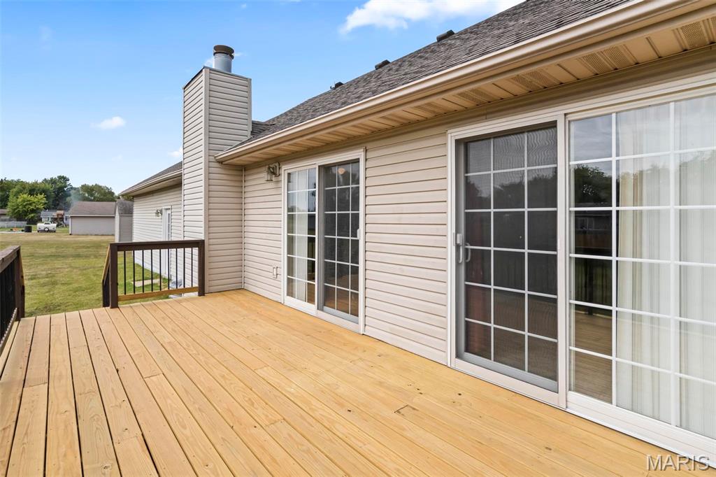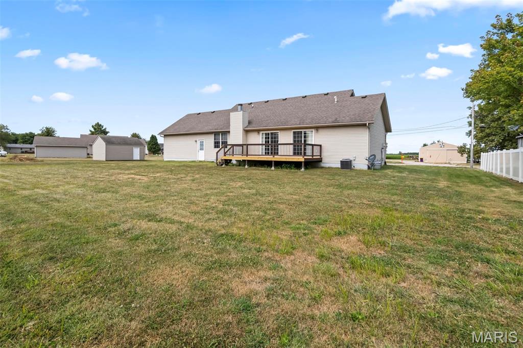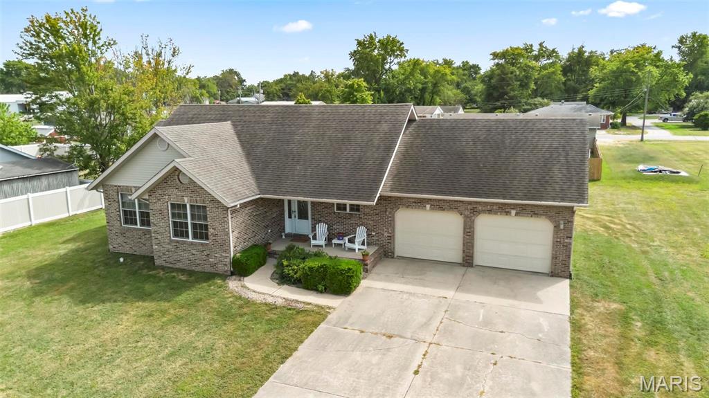 Welcome home to this beautiful brick home that offers 3 bedrooms and 2.5 bathrooms. 2 bathrooms main level, 1/2 bath in lower level. This home allows for plenty of space for comfortable living. The open-concept main floor is filled with natural light, highlighted by cathedral ceilings and a cozy fireplace in the living room. Primary bedroom has a full bathroom on suite, walk in closet and a great size soaking tub to just relax after a long day. A full unfinished basement provides endless possibilities for storage or future expansion. The home also includes a 2-car attached garage, plus an extra lot with an oversized shed/small garage for all your hobbies and storage needs. Enjoy outdoor living on the updated deck—perfect for family BBQs and entertaining. Nestled in a welcoming small town, this property combines peaceful living with an easy commute to surrounding areas. Sold with additional 0.22 acre lot, parcel # 15-001-206-11. Reflected in listing. Buyer's agent to confirm any and all information before submitting offer.