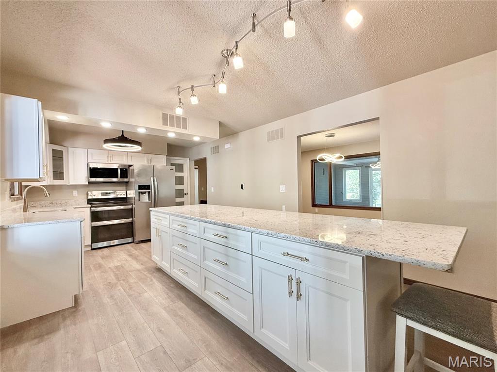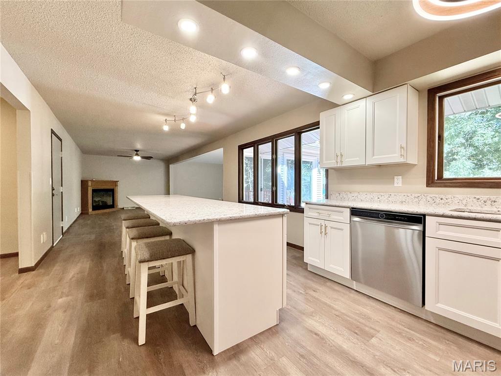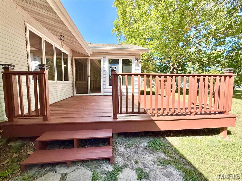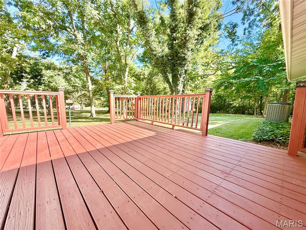 EDWARDSVILLE SCHOOLS! Nicely renovated, SPACIOUS home perfectly situated at the end of a quiet dead-end street and includes an extra wooded lot. Fully renovated kitchen features an 11 foot island with quartz countertops and an abundance of soft-close cabinets, deep drawers and stylish gold hardware. All kitchen appliances included, including double-door oven. A pantry was added to kitchen for additional storage. Other features of this home include a large great room addition with vaulted ceilings, corner gas fireplace, central vac, nice deck, flat back yard, enclosed sunroom. Additional updates: Furnace & AC 2019, with brand new evaporator coil, some new windows, light fixtures, bathroom vanities and fixtures. Brand new laundry hookups and ejector pump in full, poured concrete basement plus additional plumbing available in garage and middle bedroom if desired. Current contract is contingent on sale of buyer's home not yet under contract - KEEP SHOWING!