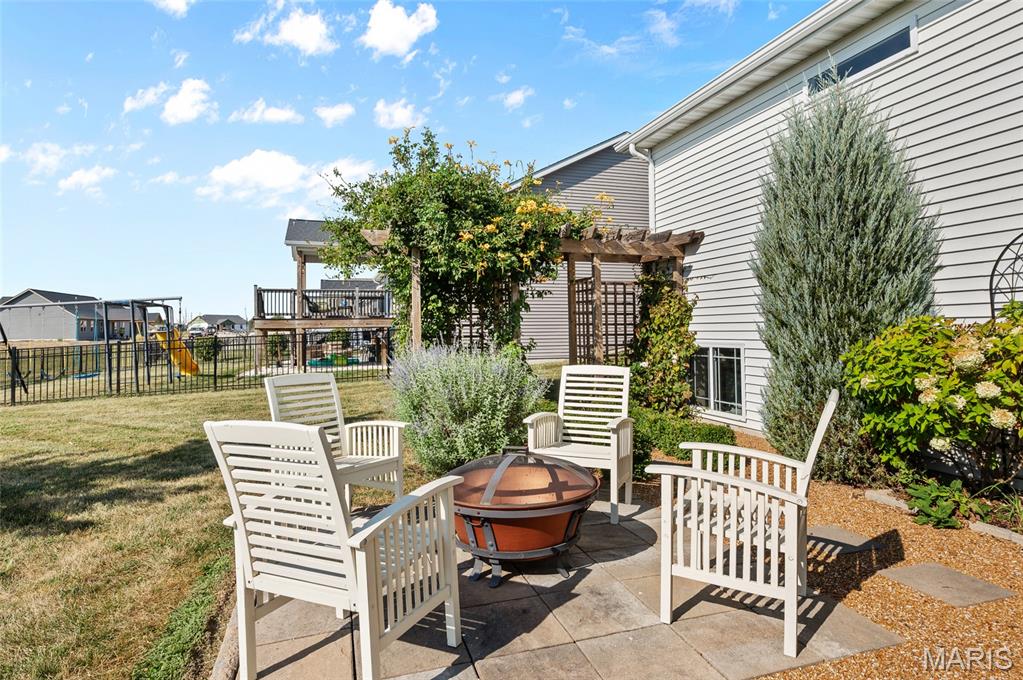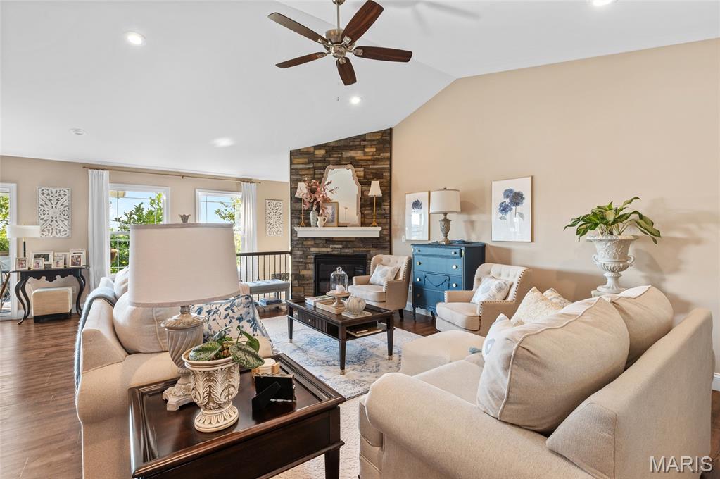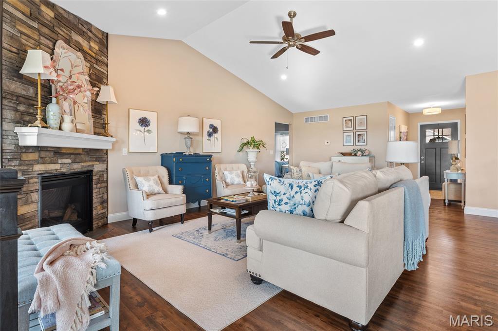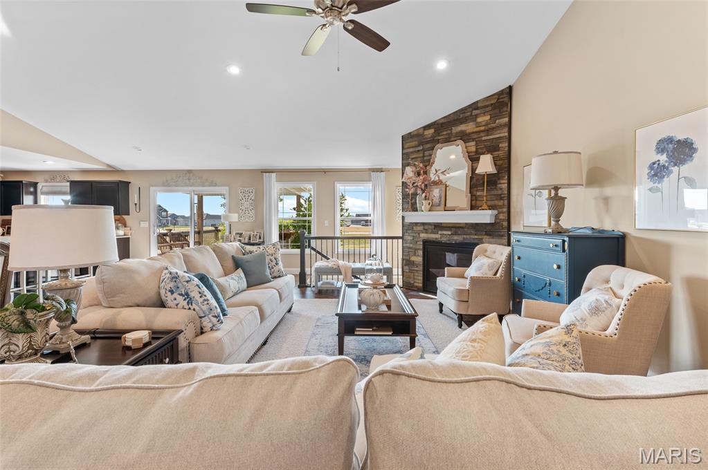 Like New 4-Bedroom Ranch with Finished Basement & Outdoor Living in the Triad School District! Welcome to this beautifully maintained ranch-style home offering the ease of single-level living with modern features throughout. Step inside to an open floor plan filled with natural light, gas fireplace and vaulted ceiling perfect for both everyday living and entertaining. The heart of the home features a spacious kitchen with large island, walk in pantry and granite counters! The open living area that flows seamlessly together, with direct access to the covered composite deck overlooking the backyard will delight you. This home offers a total of four bedrooms, including a fully finished lower level with loads of natural light, a bedroom featuring an egress window, a large recreation area, full bathroom and plenty of storage space. Additional highlights include:* Like-new condition throughout* Open and versatile layout* Outdoor spaces -enjoy the extensive landscaping and French courtyard with pergola in the backyard designed for relaxation and entertaining* This home combines comfort, functionality, and style—ready for you to make it your own.
