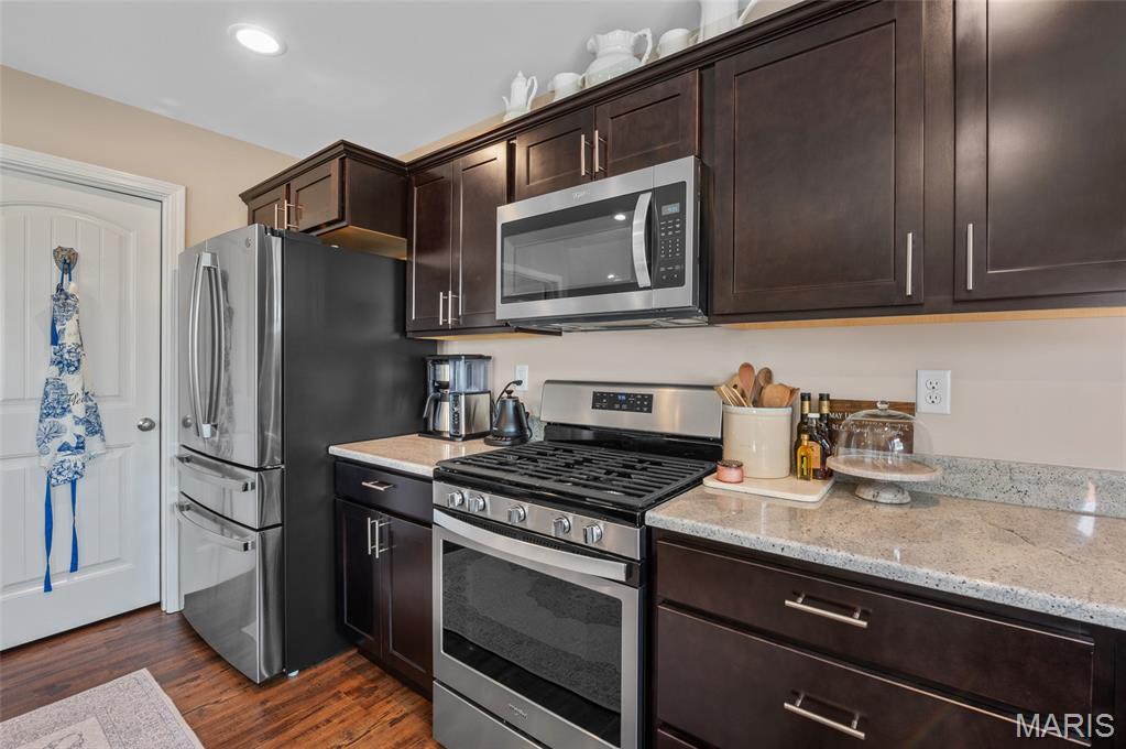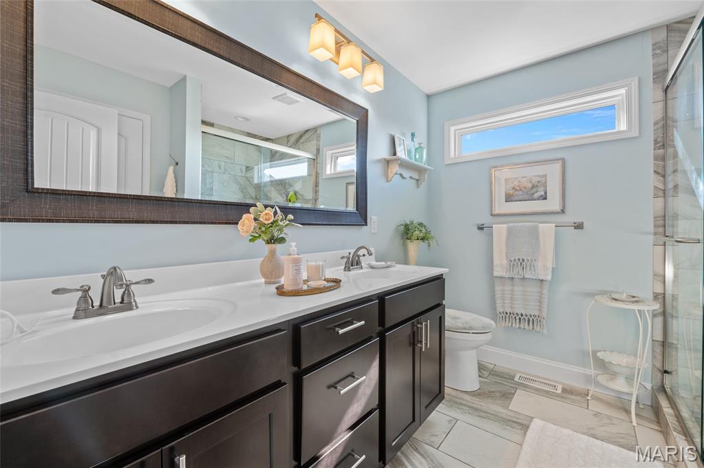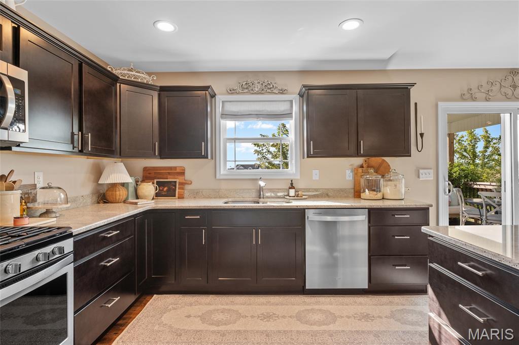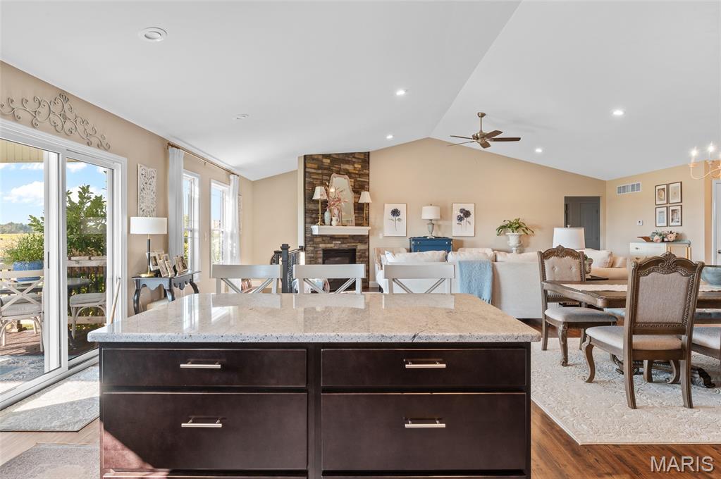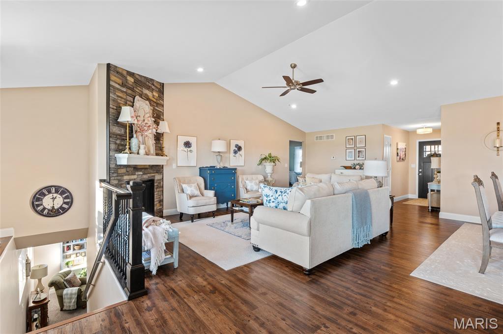 Like New 4-Bedroom Ranch with Finished Basement & Outdoor Living in the Triad School District! Welcome to this beautifully maintained ranch-style home offering the ease of single-level living with modern features throughout. Step inside to an open floor plan filled with natural light, gas fireplace and vaulted ceiling perfect for both everyday living and entertaining. The heart of the home features a spacious kitchen with large island, walk in pantry and granite counters! The open living area that flows seamlessly together, with direct access to the covered composite deck overlooking the backyard will delight you. This home offers a total of four bedrooms, including a fully finished lower level with loads of natural light, a bedroom featuring an egress window, a large recreation area, full bathroom and plenty of storage space. Additional highlights include:* Like-new condition throughout* Open and versatile layout* Outdoor spaces -enjoy the extensive landscaping and French courtyard with pergola in the backyard designed for relaxation and entertaining* This home combines comfort, functionality, and style—ready for you to make it your own.