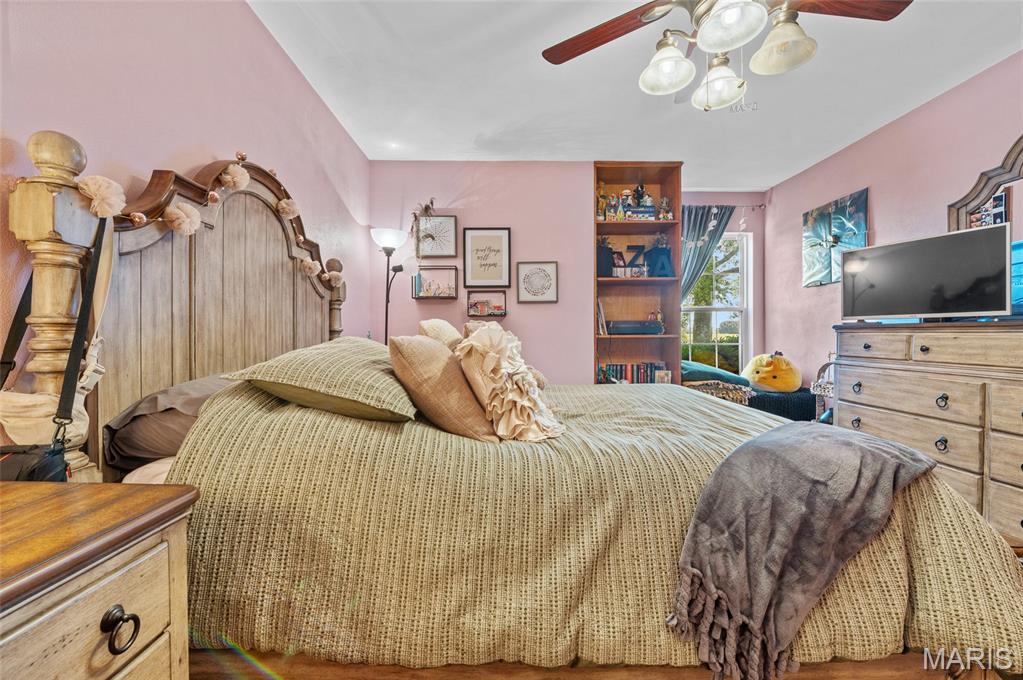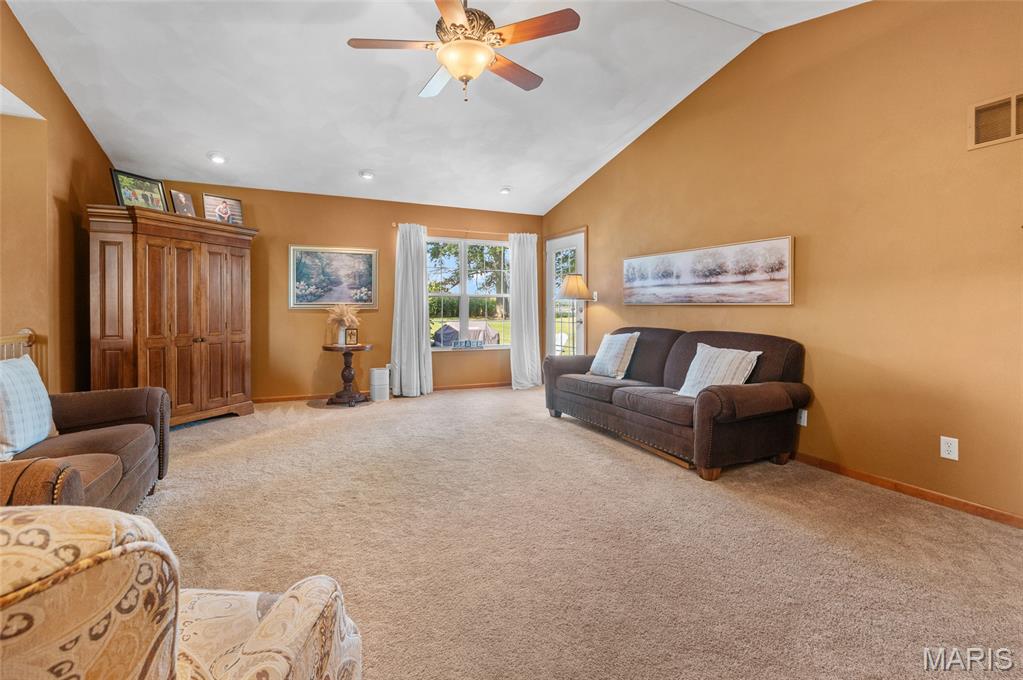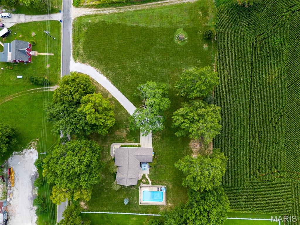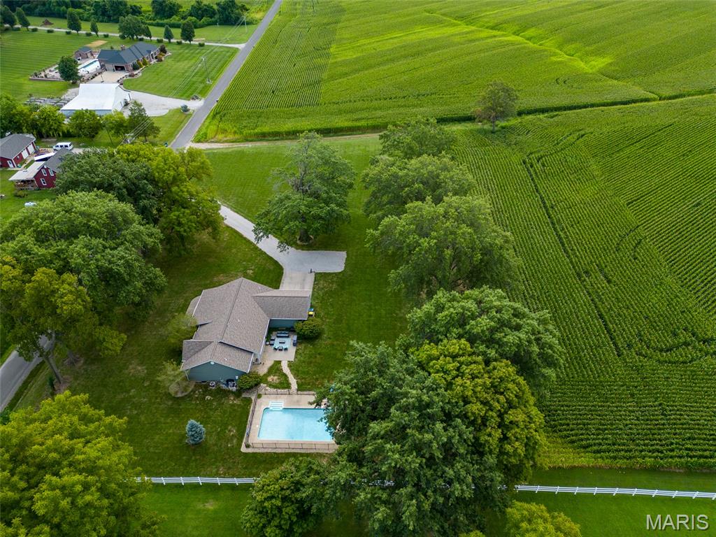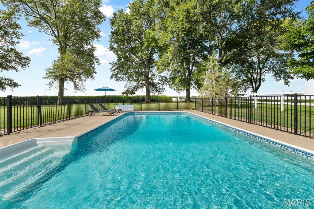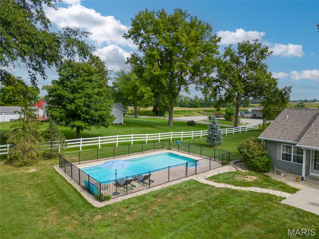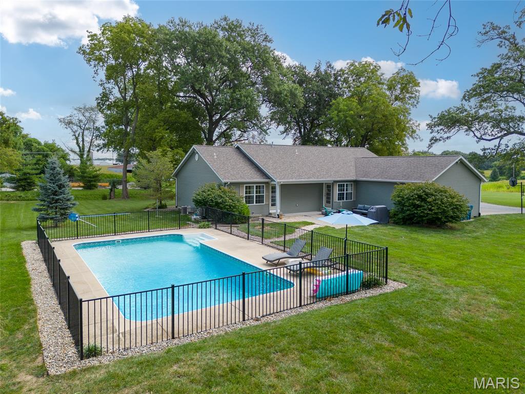 Beautiful home on 2 acres in Triad School district! And... with an in ground salt water pool! This little slice of heaven is located close to town and interstate access but provides a nice private yard for relaxation. This home was built in 2001 and has only has one owner. All rooms are a bit oversized with many custom features. The home hosts 4 bed rooms on the main level. Some bedrooms are oversized with beautiful built ins. The master suite has an ensuite bath, walk in closet and an exterior door to the pool patio. The large kitchen offers ample cabinets, breakfast bar, and eat in area. This area is open to the family room. The in ground pool is salt water, 20x40 and depth is from 3 feet to 6 feet. New filter system in 2024 and pump in 2025. New roof was put on the home Aug/ Sept of 2025. 2 car garage. Plenty of room to add a detached building on the property and no HOA. The lower level is unfinished with 9 ft ceilings and plumbed for a bathroom in the future.