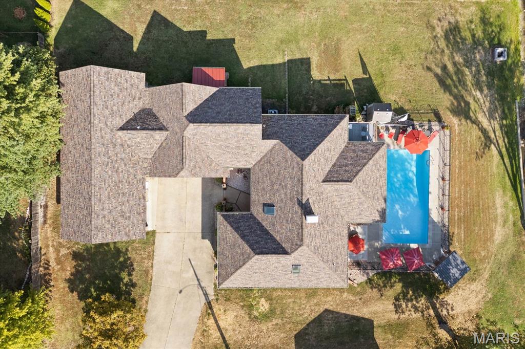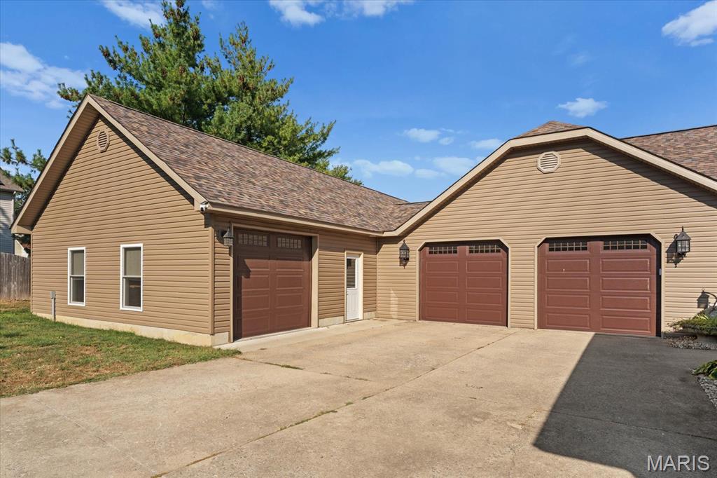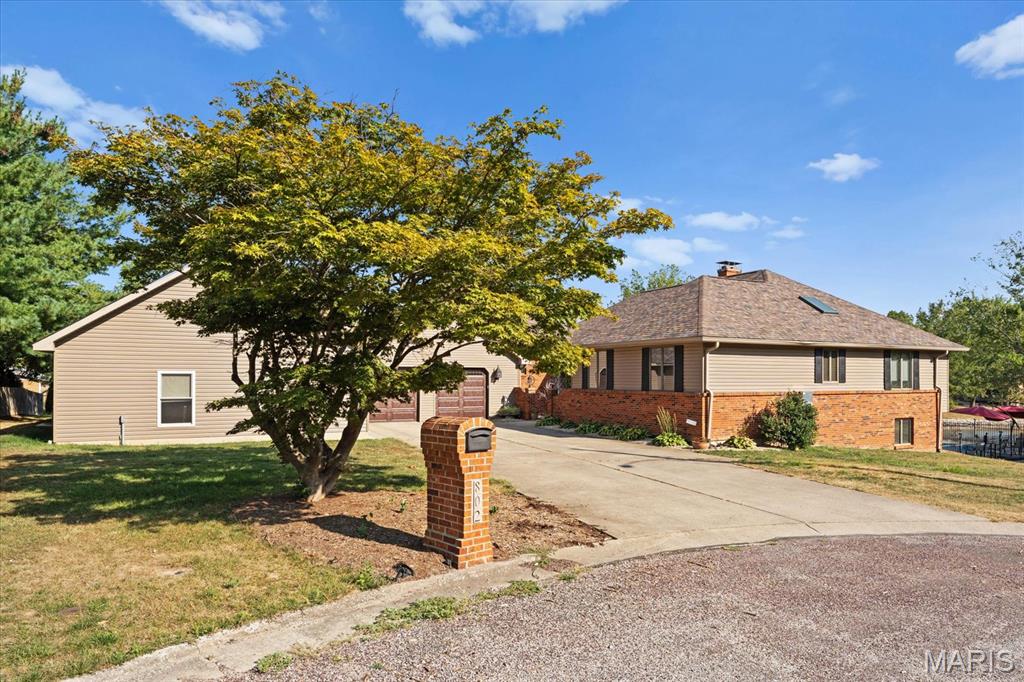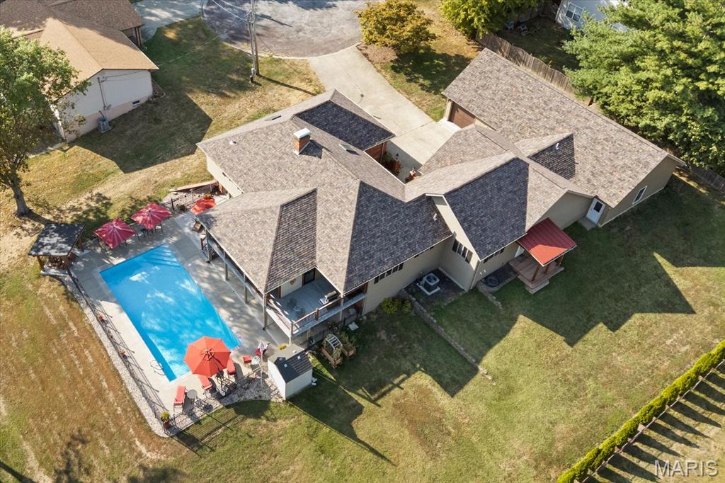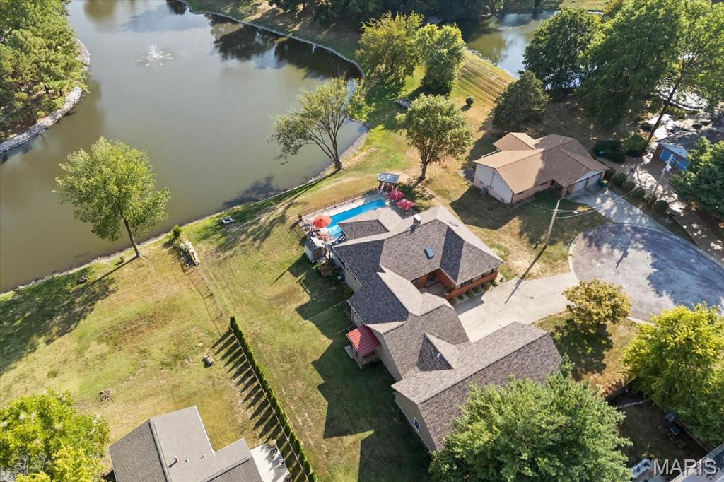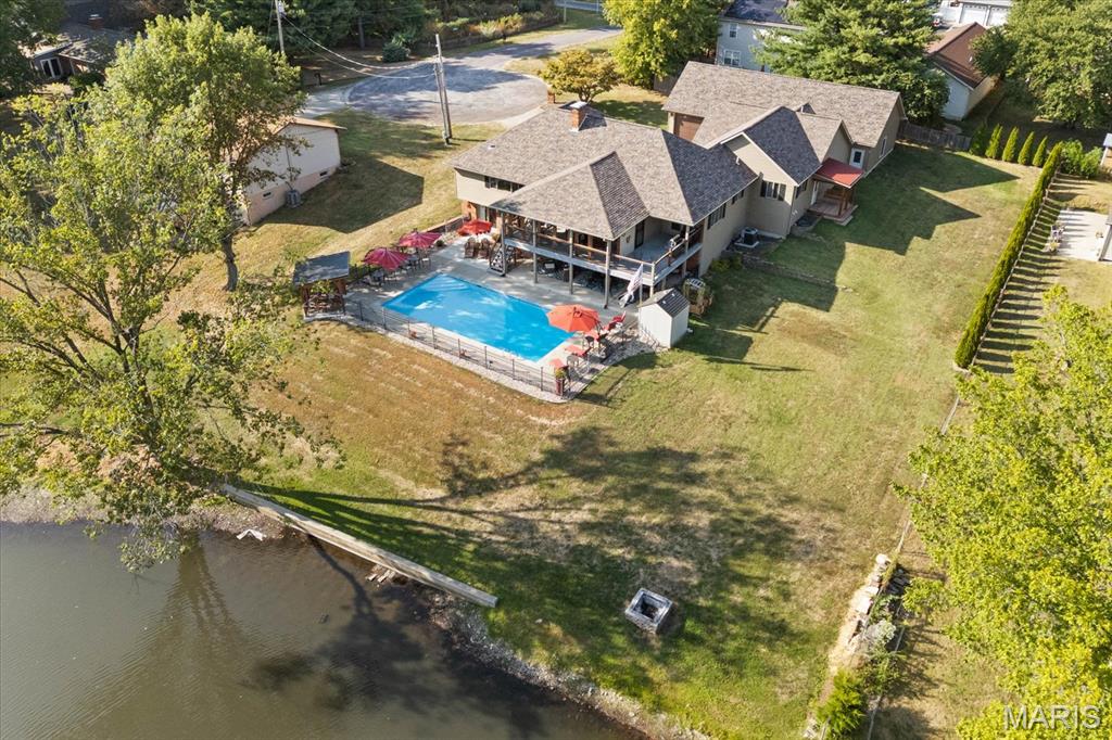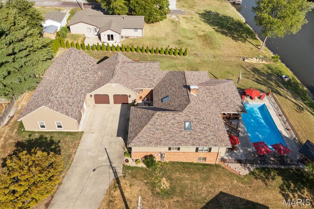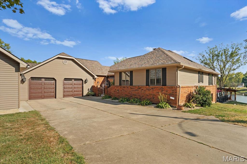 Escape to your lakeside retreat with this unique multi-level split ranch, exuding a vacation-like vibe from the moment you arrive. The home features a recently updated kitchen with modern appliances, walk-in pantry, laundry room, half bath, and breakfast room leading to the covered deck. The main living area features the living room with fireplace, and dining room currently used as an office. On the other end you have three bedrooms, including a master suite with a double vanity, soaker tub, and walk-in closet. With 5 bathrooms, a convenient laundry room, and an oversized two-car garage, this home effortlessly blends style and functionality. Added in 2024, a 1,500 sq. ft. air-conditioned workshop with its own bathroom extends off the garage, ideal for hobbies or business. The walk-out basement includes a wet bar, office, and three-quarter bath. Outside, the pool deck overlooks the serene lake, creating an inviting space for relaxation and entertaining. The pool has new pipes concrete and pump/filter system. With a newer roof and thoughtful updates throughout, this property combines comfort, charm, and lifestyle. - Ask for list of upgrades & improvements