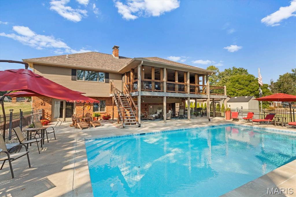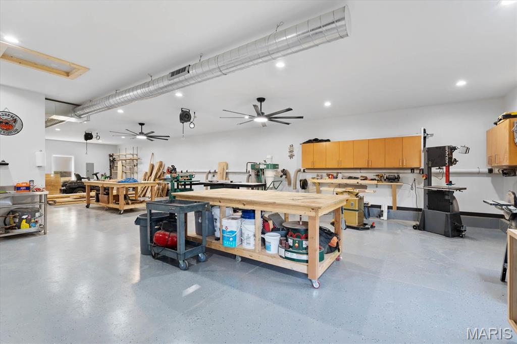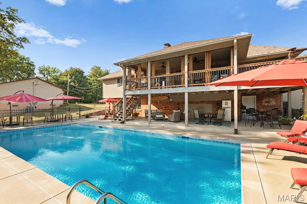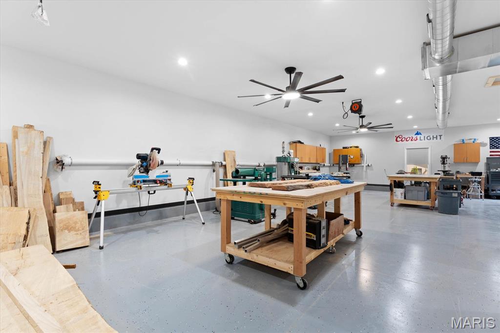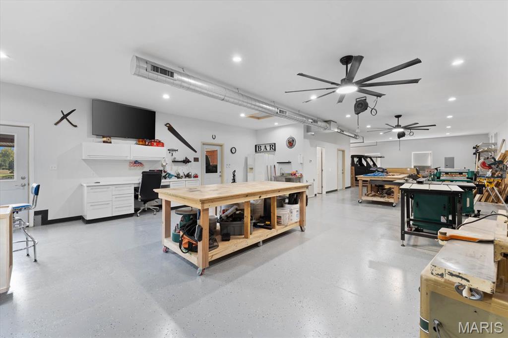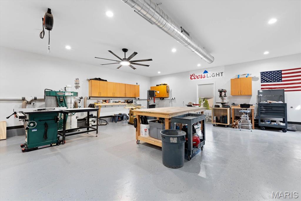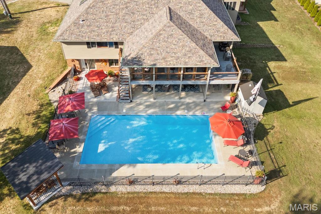 Escape to your lakeside retreat with this unique multi-level split ranch, exuding a vacation-like vibe from the moment you arrive. The home features a recently updated kitchen with modern appliances, walk-in pantry, laundry room, half bath, and breakfast room leading to the covered deck. The main living area features the living room with fireplace, and dining room currently used as an office. On the other end you have three bedrooms, including a master suite with a double vanity, soaker tub, and walk-in closet. With 5 bathrooms, a convenient laundry room, and an oversized two-car garage, this home effortlessly blends style and functionality. Added in 2024, a 1,500 sq. ft. air-conditioned workshop with its own bathroom extends off the garage, ideal for hobbies or business. The walk-out basement includes a wet bar, office, and three-quarter bath. Outside, the pool deck overlooks the serene lake, creating an inviting space for relaxation and entertaining. The pool has new pipes concrete and pump/filter system. With a newer roof and thoughtful updates throughout, this property combines comfort, charm, and lifestyle. - Ask for list of upgrades & improvements