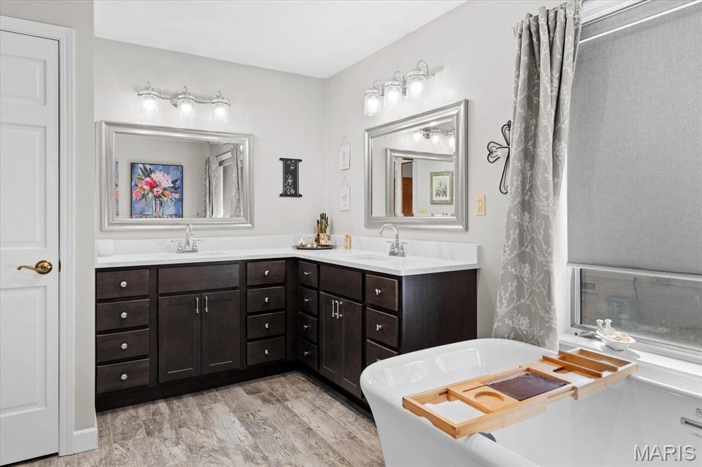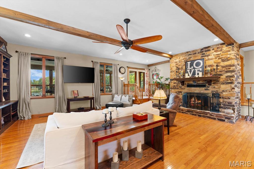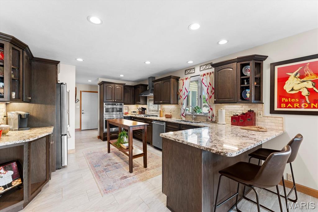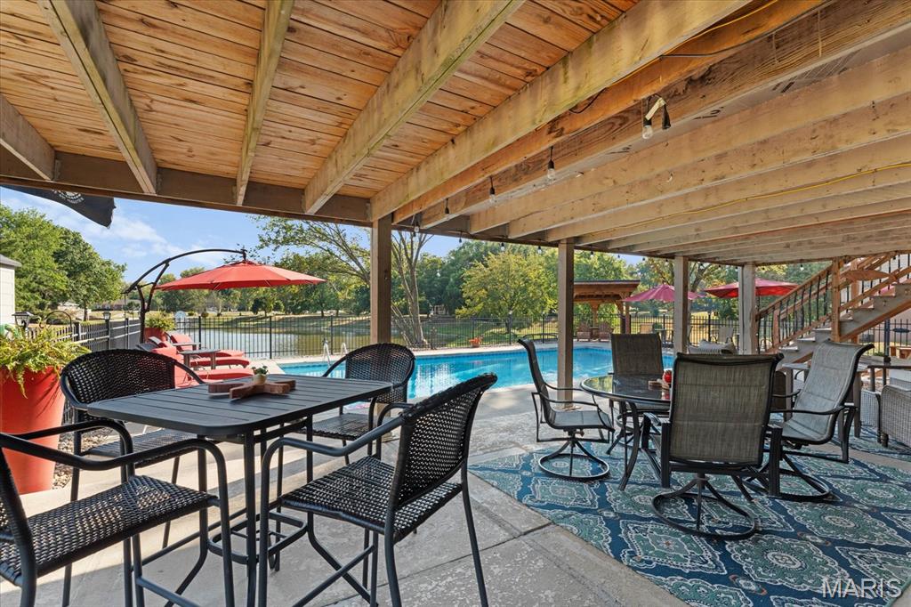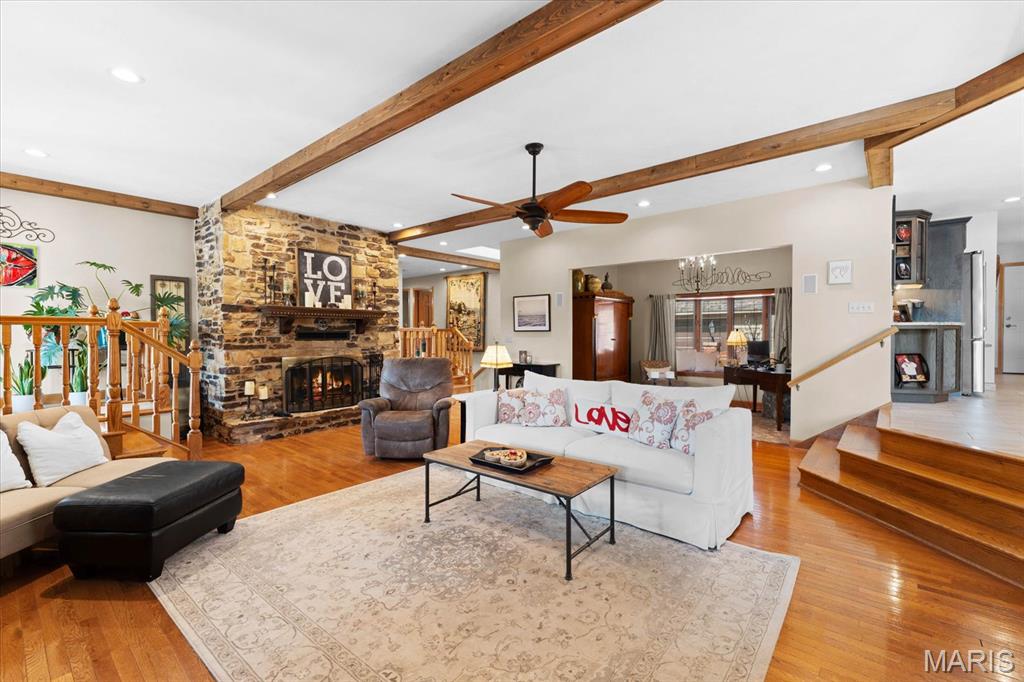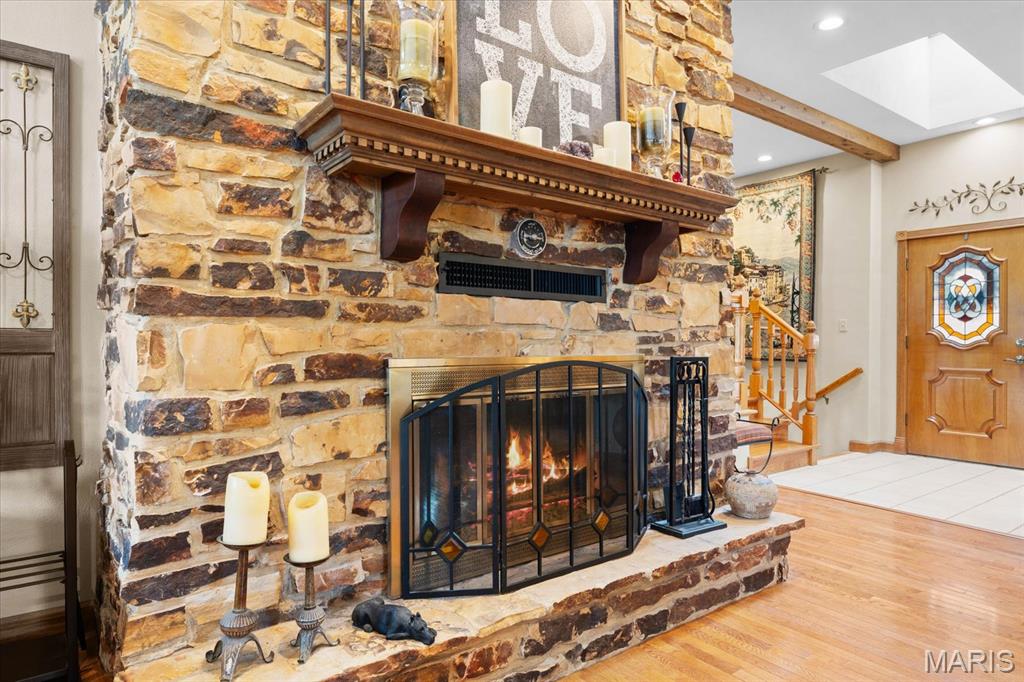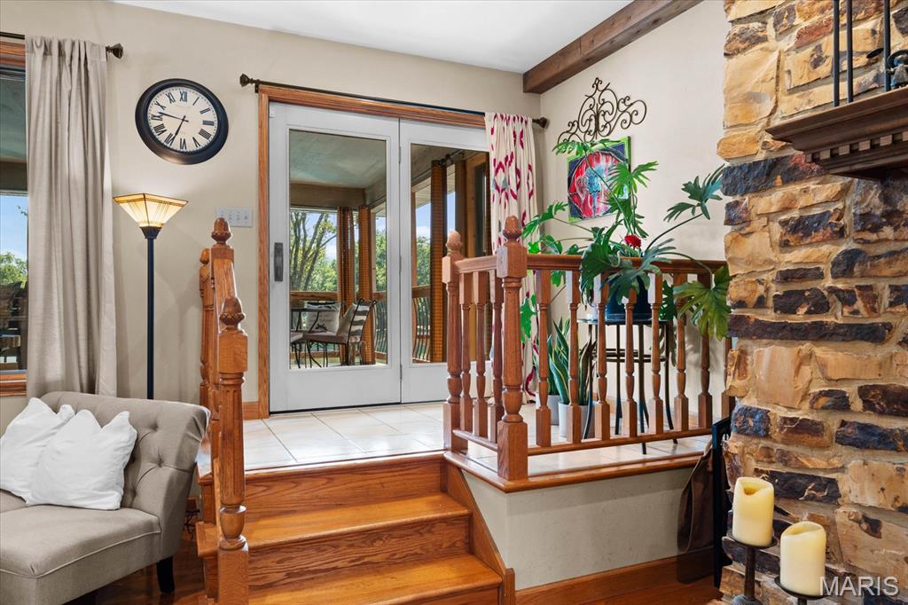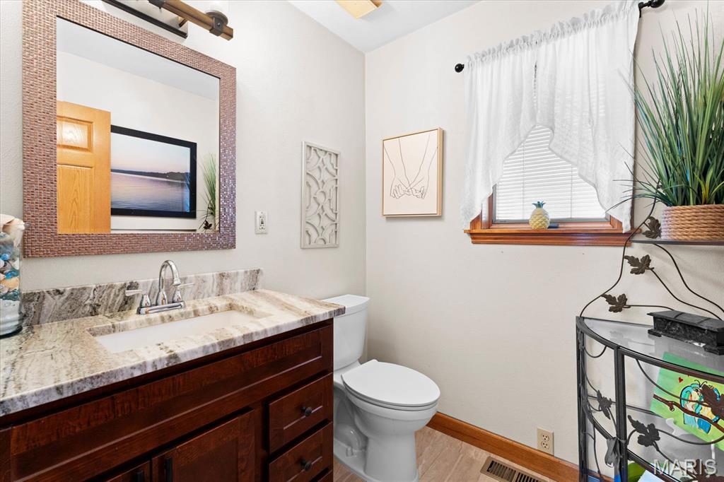 Escape to your lakeside retreat with this unique multi-level split ranch, exuding a vacation-like vibe from the moment you arrive. The home features a recently updated kitchen with modern appliances, walk-in pantry, laundry room, half bath, and breakfast room leading to the covered deck. The main living area features the living room with fireplace, and dining room currently used as an office. On the other end you have three bedrooms, including a master suite with a double vanity, soaker tub, and walk-in closet. With 5 bathrooms, a convenient laundry room, and an oversized two-car garage, this home effortlessly blends style and functionality. Added in 2024, a 1,500 sq. ft. air-conditioned workshop with its own bathroom extends off the garage, ideal for hobbies or business. The walk-out basement includes a wet bar, office, and three-quarter bath. Outside, the pool deck overlooks the serene lake, creating an inviting space for relaxation and entertaining. The pool has new pipes concrete and pump/filter system. With a newer roof and thoughtful updates throughout, this property combines comfort, charm, and lifestyle. - Ask for list of upgrades & improvements