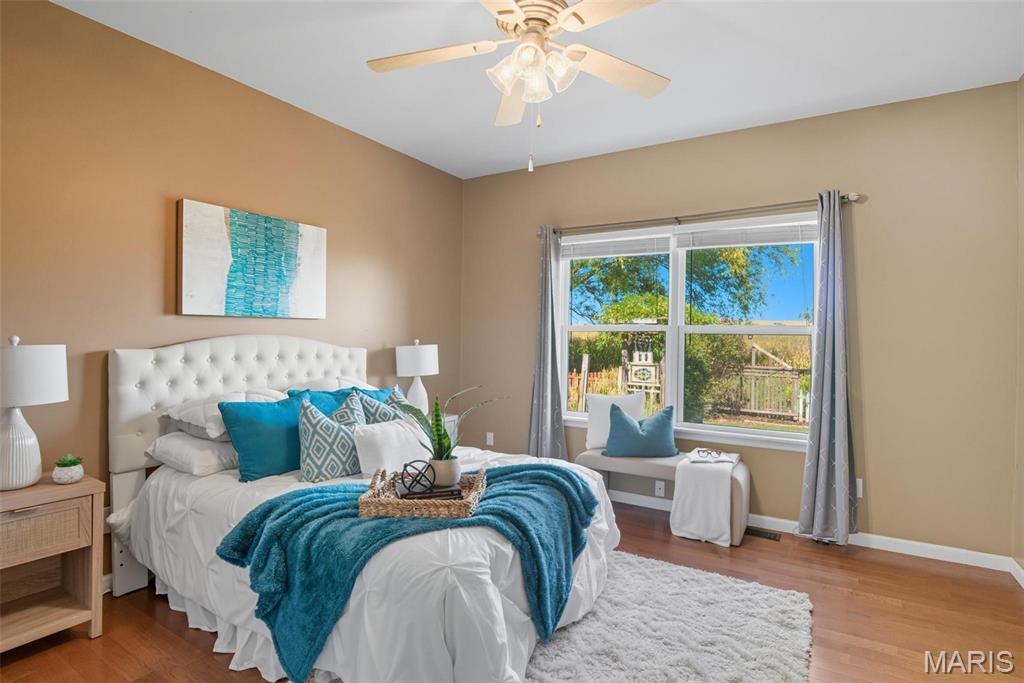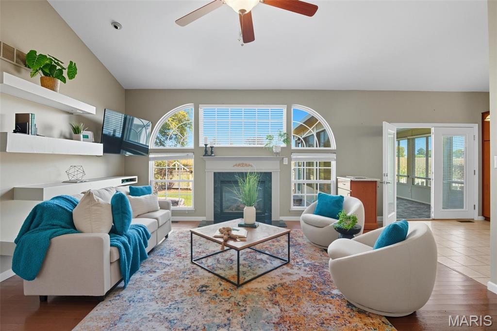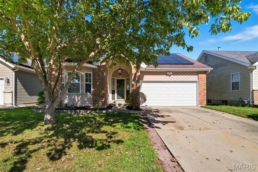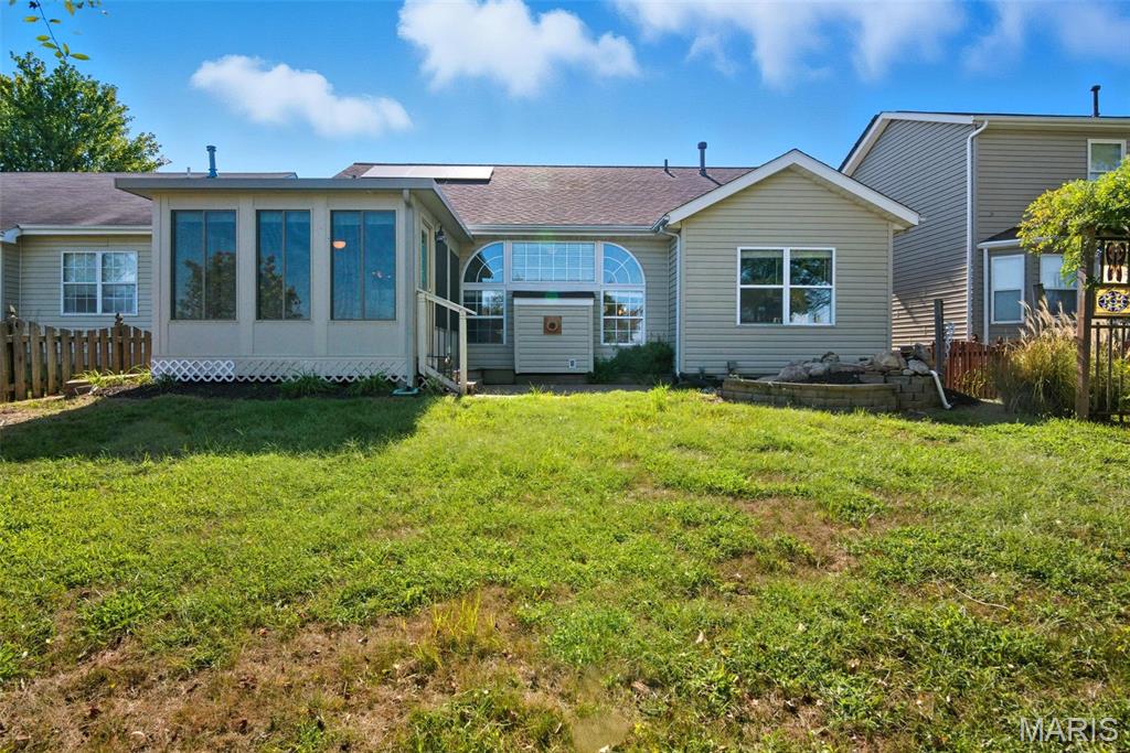 Showings start Fri 10/10/25. Move-in ready and adorable both inside and out, this custom built, 3-bedroom, 2-bath home features beautiful wood floors, new paint & new carpeting, a finished basement and a pretty, landscaped, private backyard, The builder added larger windows flanking a beautiful fireplace for lots of natural light, custom shelving, granite countertops, a larger kitchen with soft-close cabinets, a custom built 14x12 Sunroom with it's own AC and a larger primary bedroom, bath and walk in closet--so many extras loaded into this charming home. Two more bedrooms on the main floor, plus brand new carpet in the extra large finished lower level, gives you even more options for expanding and adding future guest or rec space. The washer/dryer and refrigerator will stay in the laundry area, along with the workshop/shelving. This home has solar panels that are completely paid off so you can enjoy more "friendly" utility bills no matter what the temperature. Passed Occupancy. Close to SAFB, Mascoutah schools, Eckert's Orchard, area grocery stores, shopping, restaurants, major highways AND you have a neighborhood pool and walking paths. So much to love in this home and a quieter area, but still "connected" to everything you need. The best of both worlds and move-in ready. Check it out!