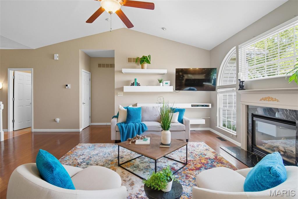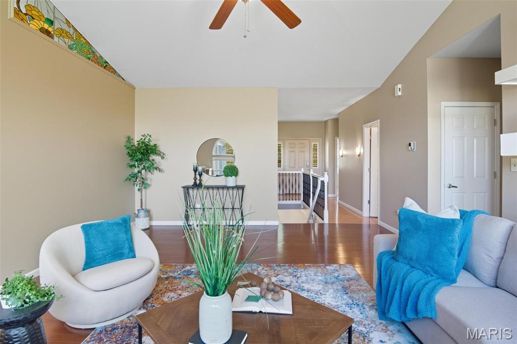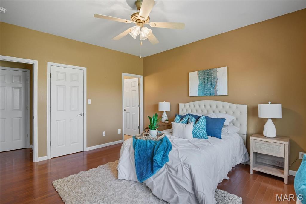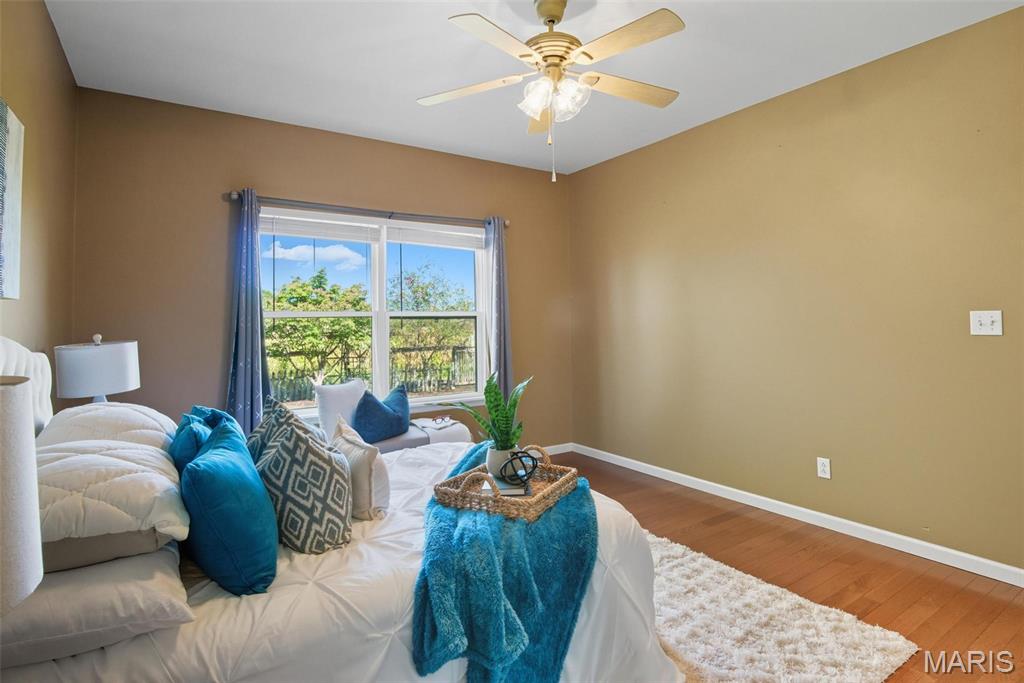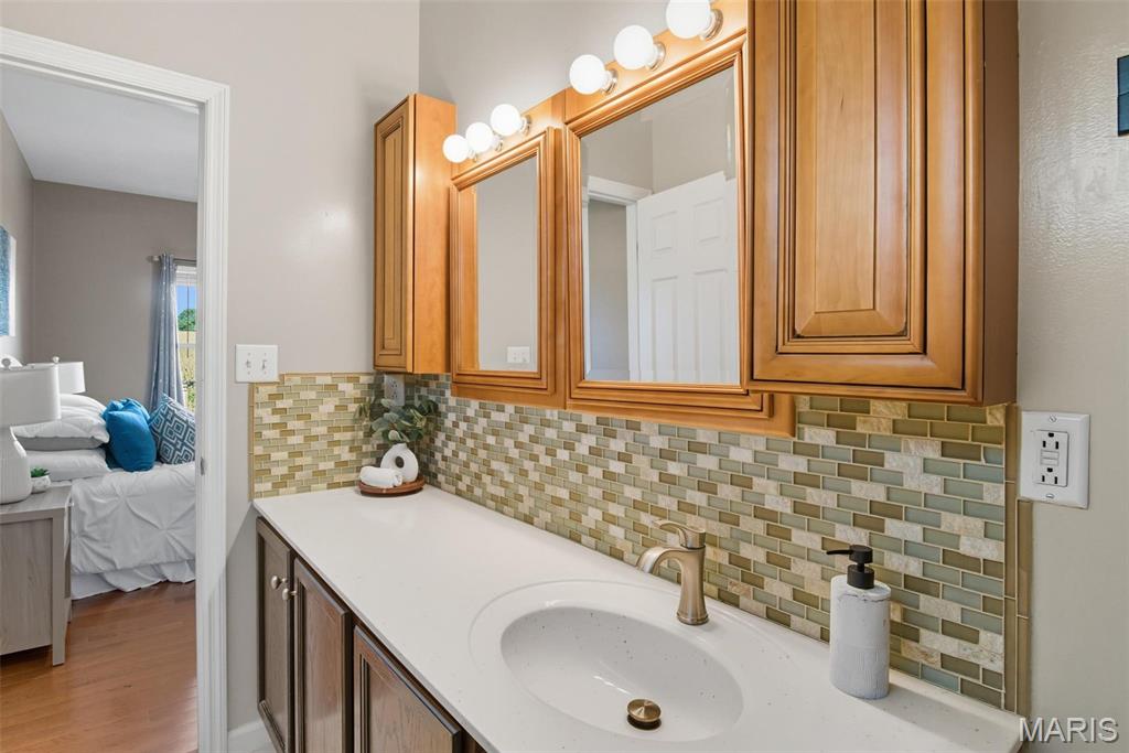 Showings start Fri 10/10/25. Move-in ready and adorable both inside and out, this custom built, 3-bedroom, 2-bath home features beautiful wood floors, new paint & new carpeting, a finished basement and a pretty, landscaped, private backyard, The builder added larger windows flanking a beautiful fireplace for lots of natural light, custom shelving, granite countertops, a larger kitchen with soft-close cabinets, a custom built 14x12 Sunroom with it's own AC and a larger primary bedroom, bath and walk in closet--so many extras loaded into this charming home. Two more bedrooms on the main floor, plus brand new carpet in the extra large finished lower level, gives you even more options for expanding and adding future guest or rec space. The washer/dryer and refrigerator will stay in the laundry area, along with the workshop/shelving. This home has solar panels that are completely paid off so you can enjoy more "friendly" utility bills no matter what the temperature. Passed Occupancy. Close to SAFB, Mascoutah schools, Eckert's Orchard, area grocery stores, shopping, restaurants, major highways AND you have a neighborhood pool and walking paths. So much to love in this home and a quieter area, but still "connected" to everything you need. The best of both worlds and move-in ready. Check it out!